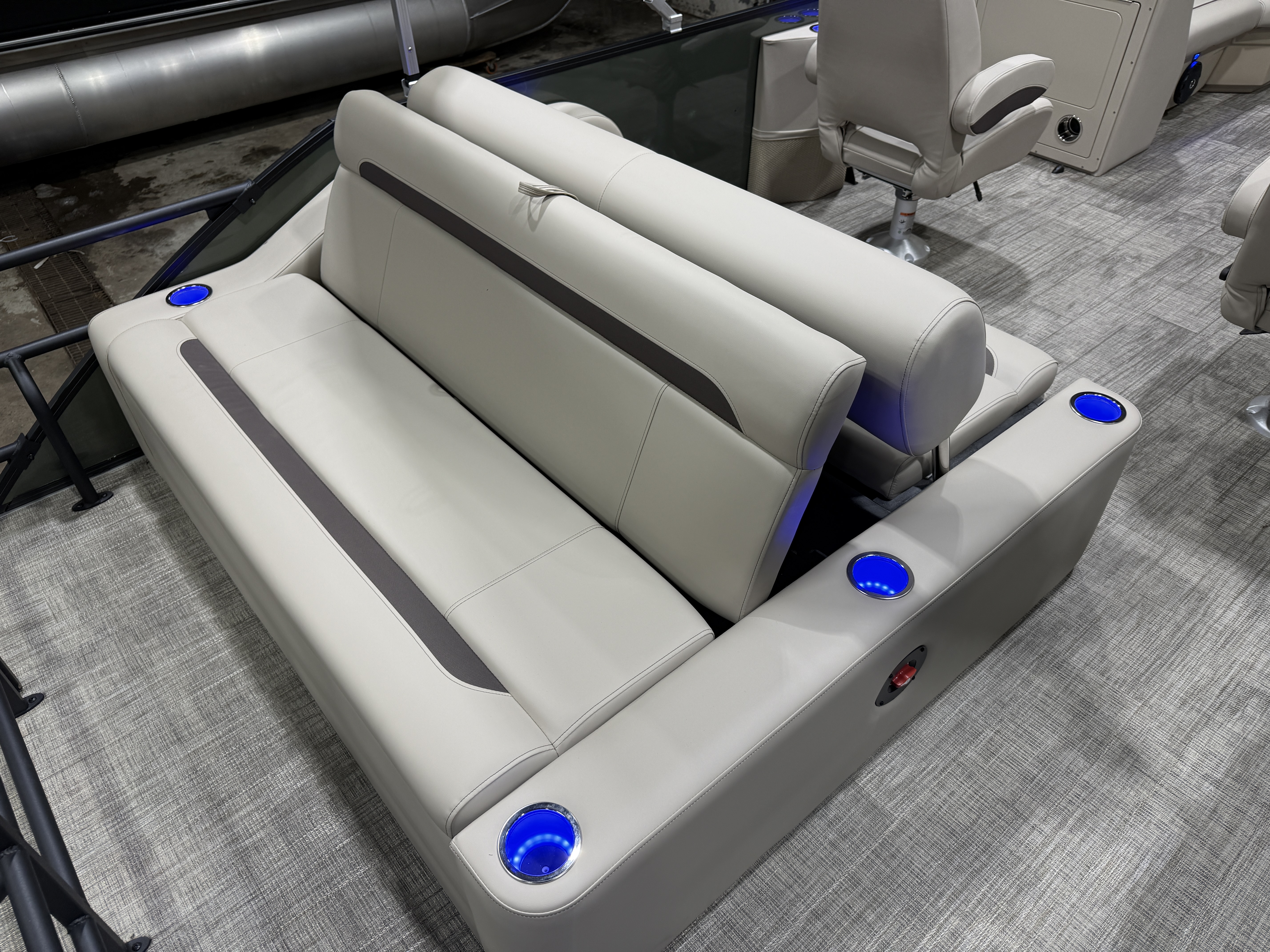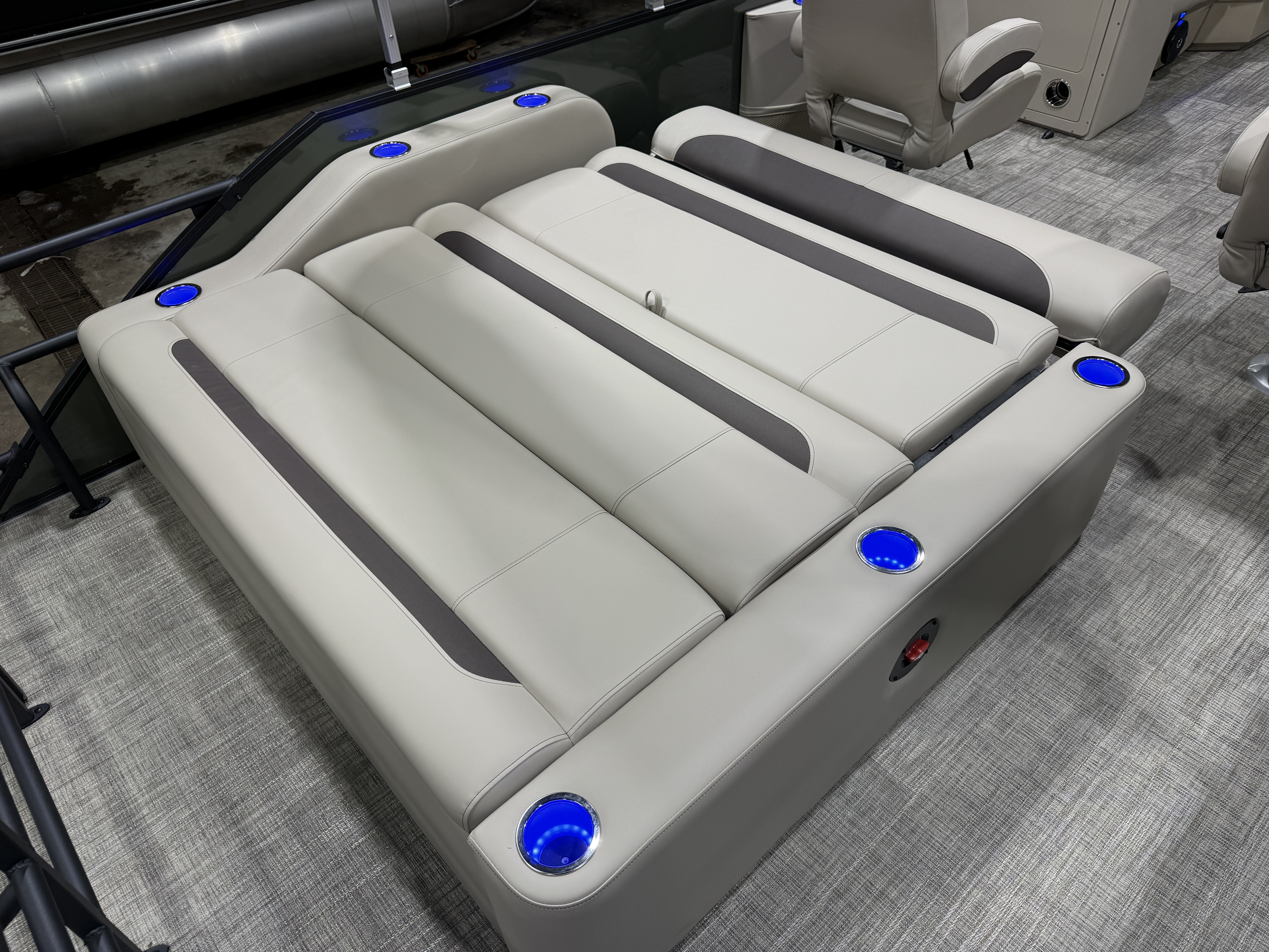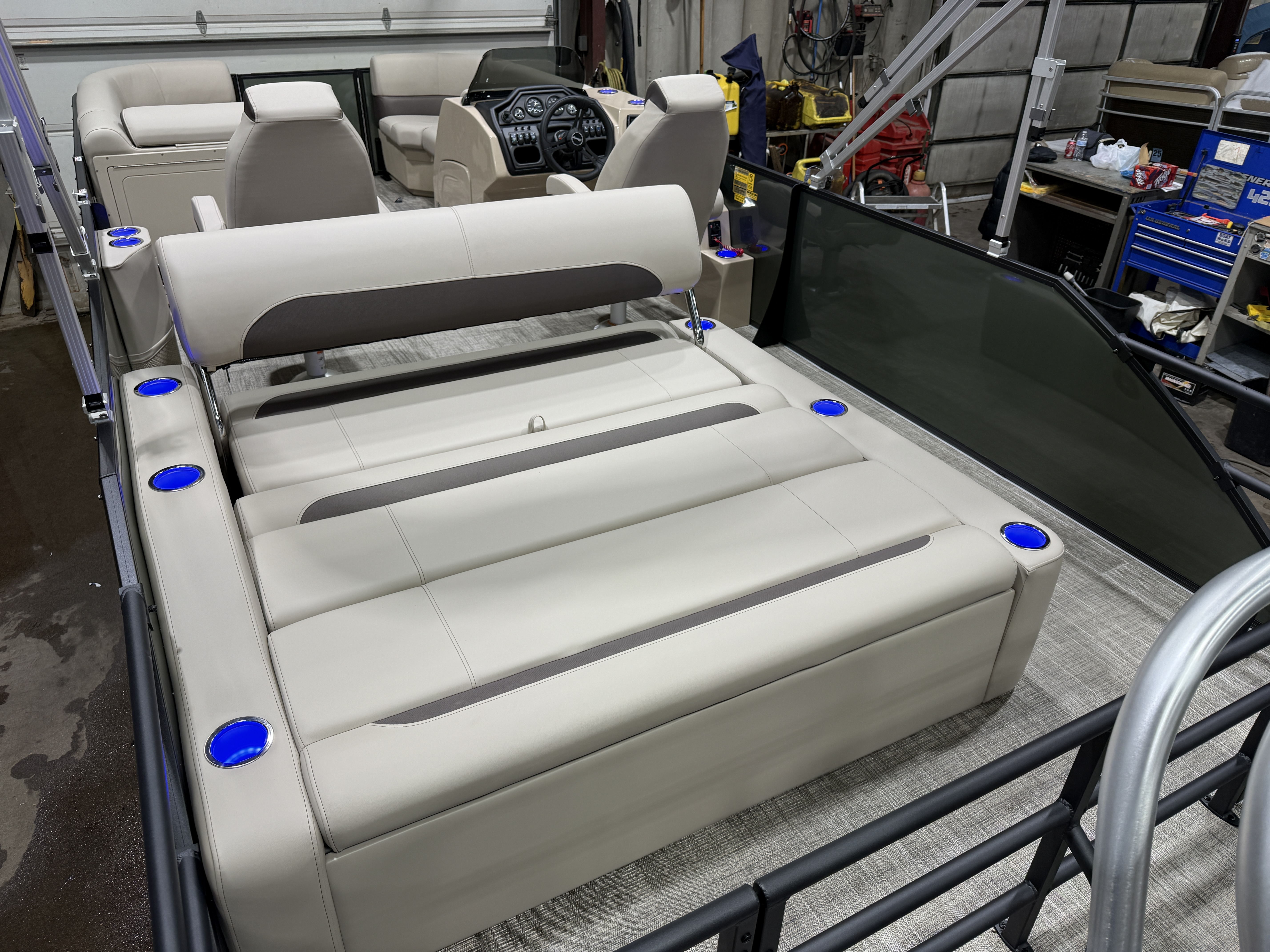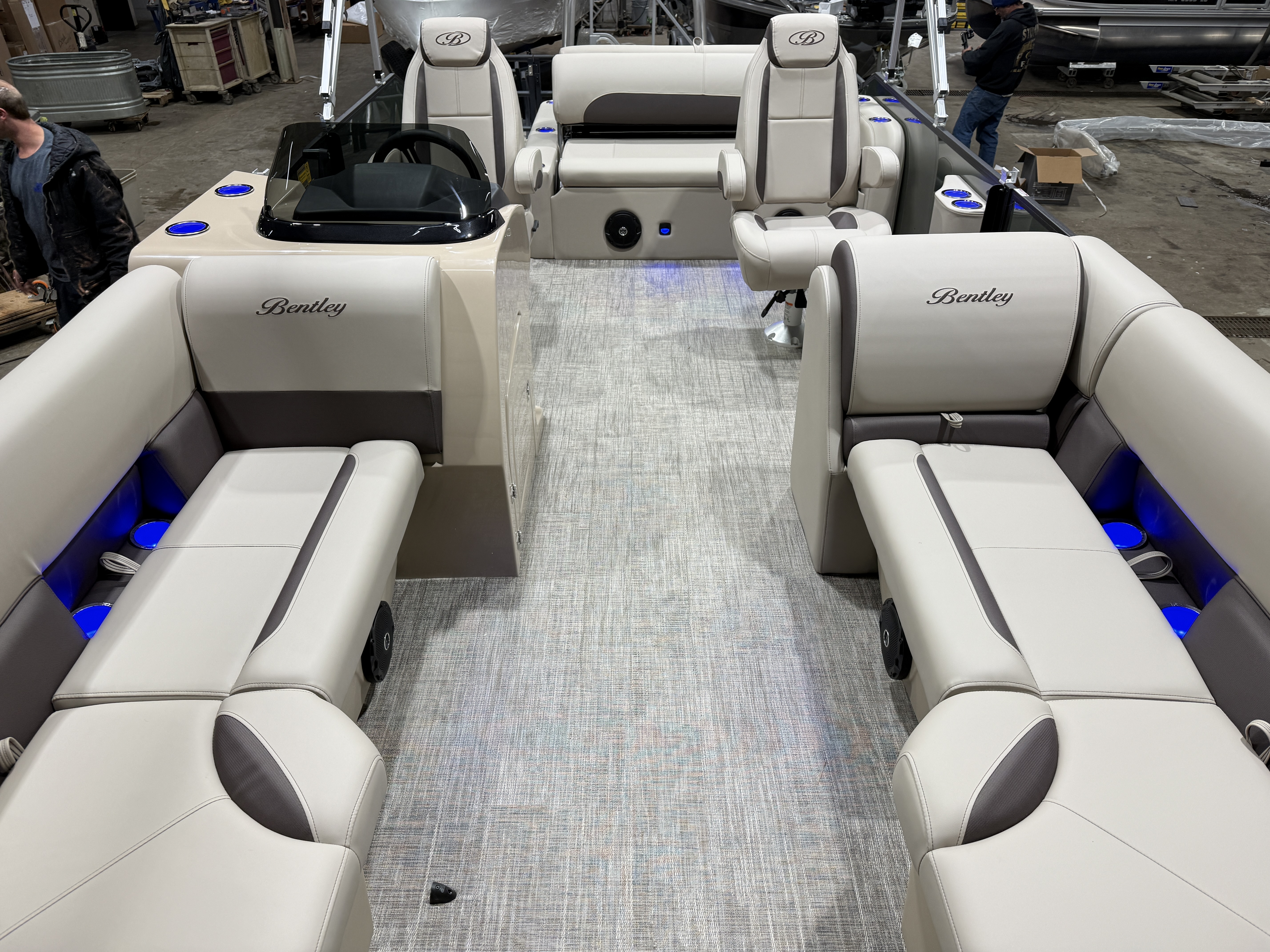 2026 Bentley Legacy 220 Swingback Pontoon & Honda 4-Stroke EFI. This 22' Cruise Has Front Chaise Lounge Seating With Storage, Two High-Back Reclining Captain's, Rear Swingback Rear Lounge (Multiple Positions) With Storage, Rear Safety Fencing, Interior Blue LED Package (Lighted Cup Holders & Courtesy Lights), Powder Coated Rails, Lakeport Plank Vinyl Flooring, Livewell, Stainless Steel Flip Up Cleats, Humminbird Helix GPS & Depth Finder, Ski Tow Bar, Bluetooth Radio w/4 Speakers, Table, Built-In Table On Portside, Fiberglass Helm w/Storage, Playpen Cover, Windshield, Tilt Steering, Rear Ladder, Battery On/Off Switch, Gauge Package w/Hour Meter, 25" Tubes, LED NAV Lights, LED Docking Lights, Built-In Trash Can, Built-In Cooler, New Battery, Bimini Top Built-In 32 Gallon Gas Tank, Huge Front And Rear Deck. Rated For 15 People & Up To 150HP.