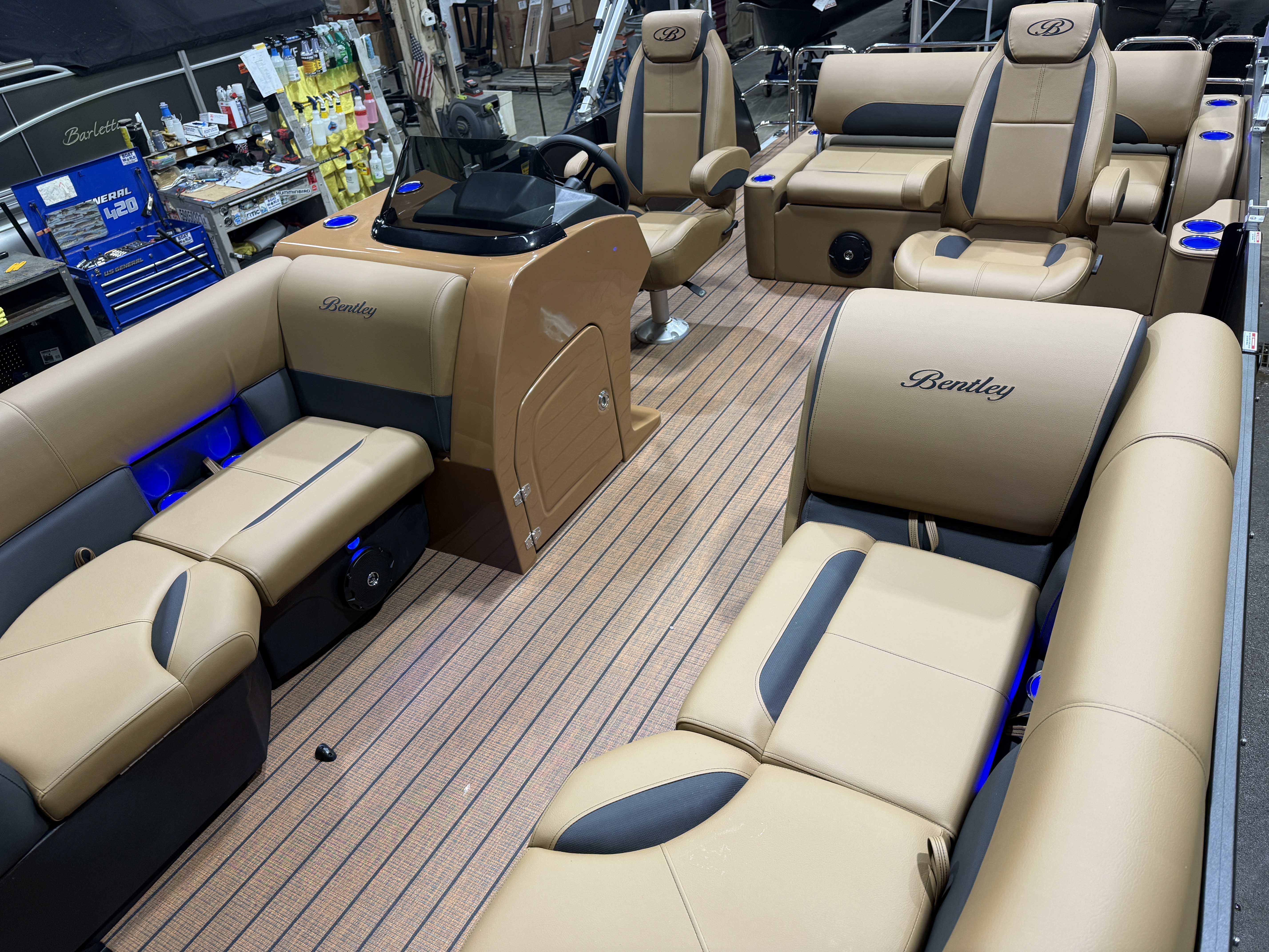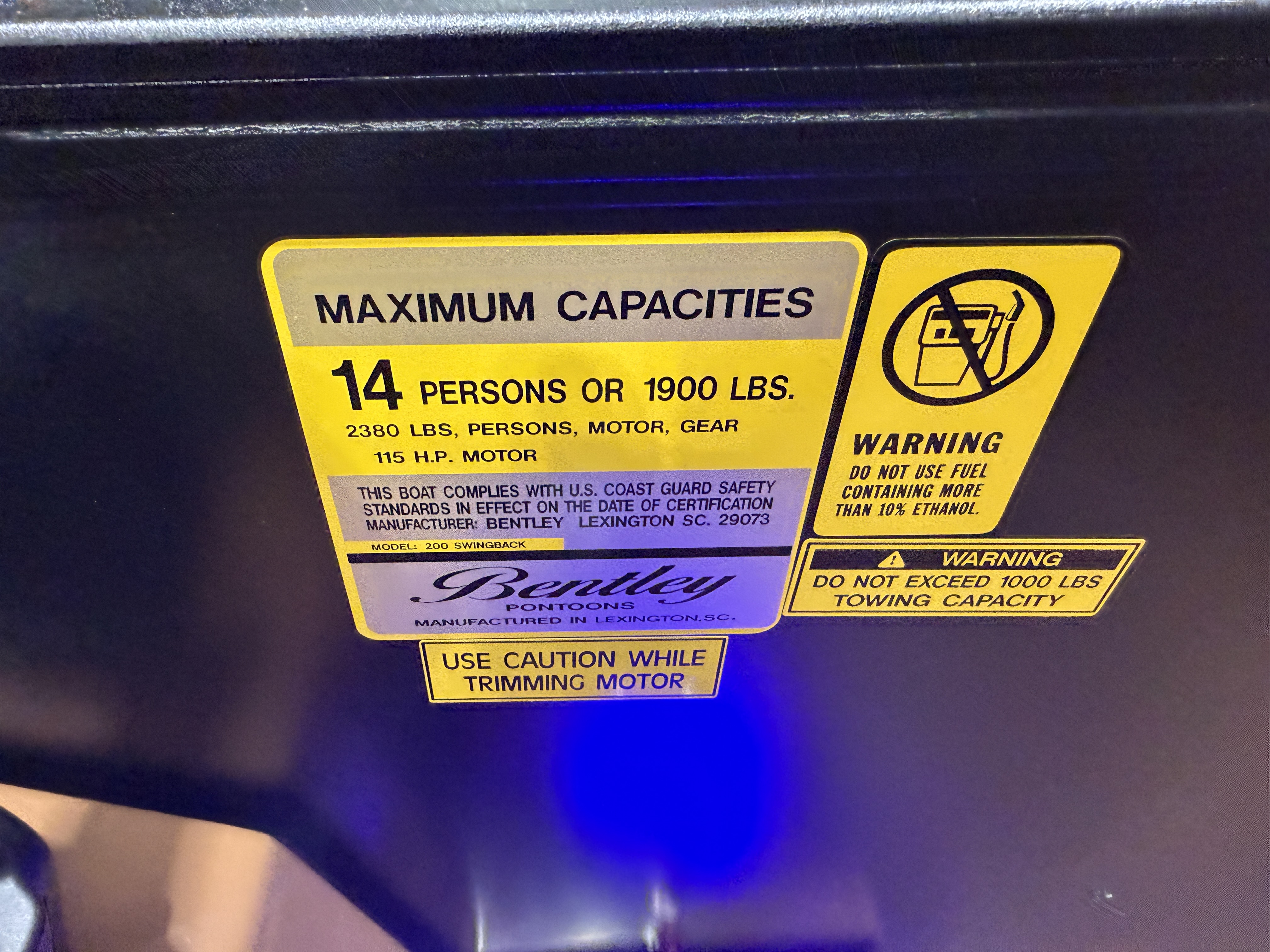 2026 Bentley Legacy 200 Swingback Pontoon & Honda 4-Stroke EFI. This 20' Swingback Cruise Has Front Chaise Lounge Seating With Storage, Two High-Back Reclining Captain's, Rear Swingback Rear Lounge (Multiple Positions) With Storage, Rear Safety Fencing, Interior Blue LED Package (Lighted Cup Holders & Courtesy Lights), Powder Coated Rails, Walnut Teak Vinyl Flooring, Stainless Steel Flip Up Cleats, Humminbird Helix GPS & Depth Finder, Ski Tow Bar, Bluetooth Radio w/4 Speakers, Table, Built-In Table On Portside, Fiberglass Helm w/Storage, Playpen Cover, Tilt Steering, Rear Ladder, Battery On/Off Switch, Gauge Package w/Hour Meter, 25" Tubes, LED NAV Lights, LED Docking Lights, New Battery, Bimini Top, Built-In 32 Gallon Gas Tank, Front And Rear Deck. Rated For 14 People.