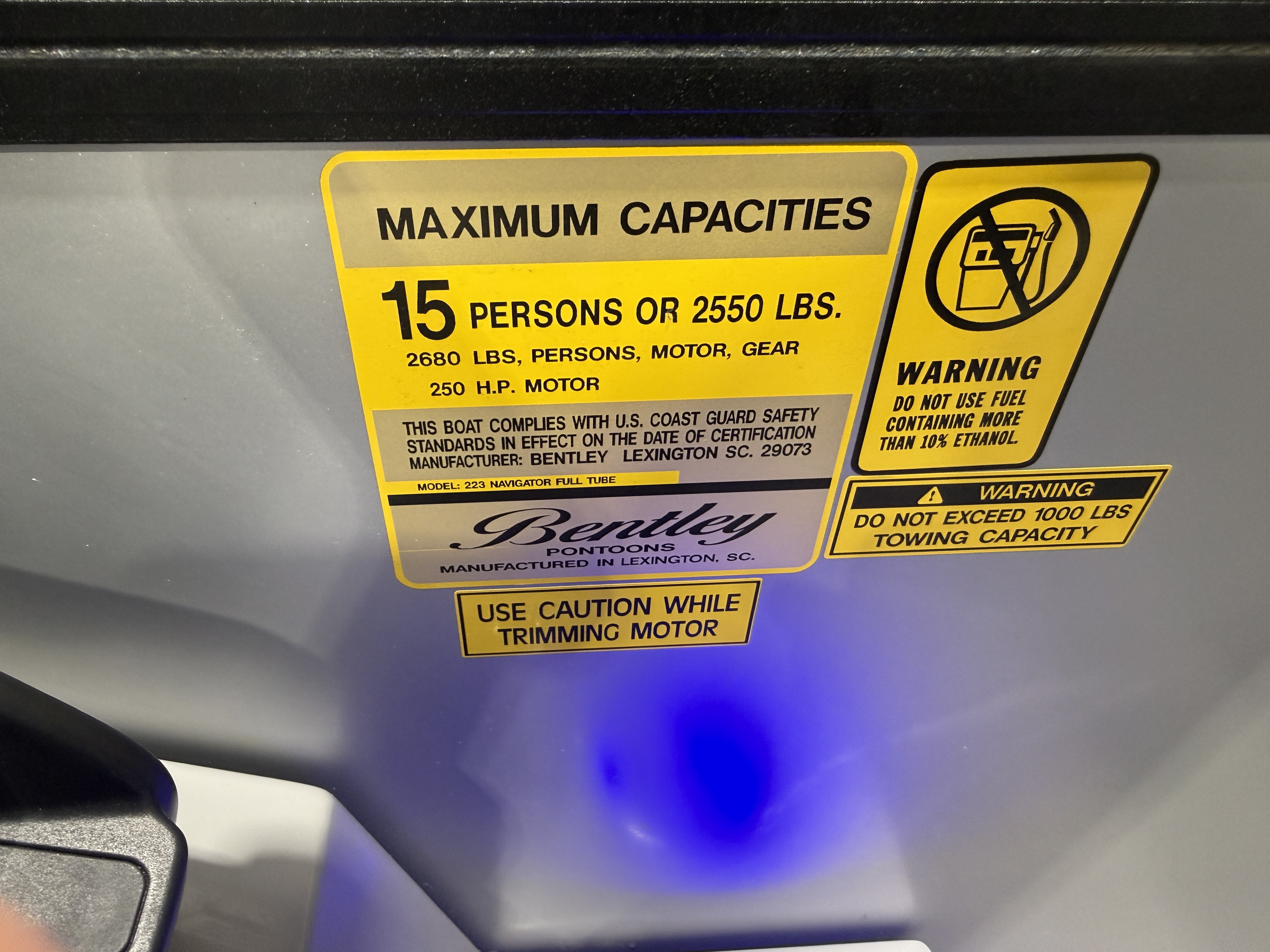 2026 Bentley Legacy 223 Navigator DL Quad Lounge Tritoon & Honda 250HP 4-Stroke EFI