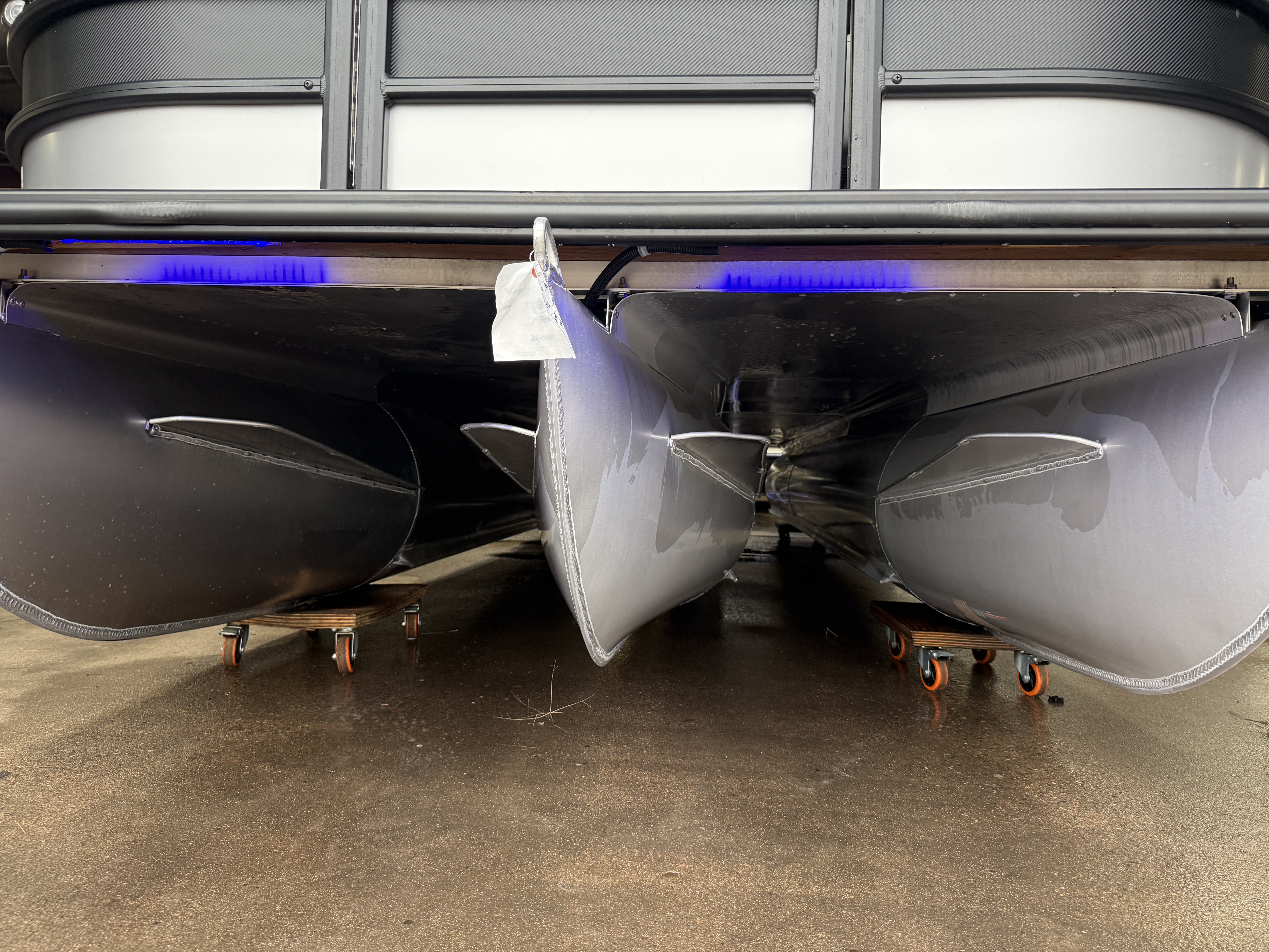 4-Stroke EFI. This 22' Matte Silver/Matte Black Walls Tri-Toon Has Starboard