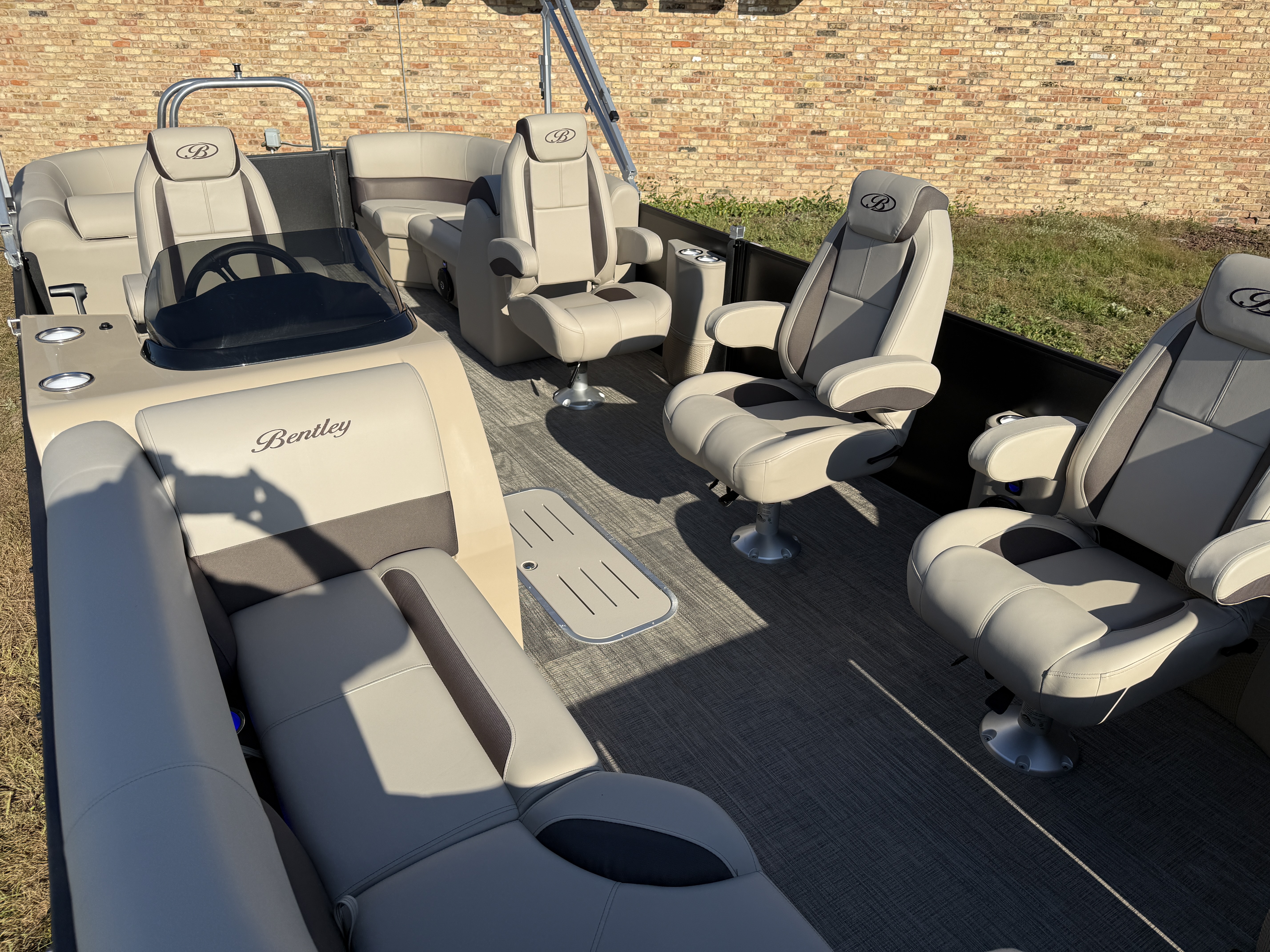 2026 Bentley Legacy 223 Navigator DL Quad Lounge Tritoon Pontoon & Honda 4-Stroke EFI. This 22' Tri-Toon Has Starboard Front Chaise Lounge Seating With Storage, Portside Side By Side High Back Relining Seats w/Cup Holders, Rear Chaise Lounge Seating W/Storage, Side By Side High-Back Reclining Captain's Seats, Interior Blue LED Package (Lighted Cup Holders & Courtesy Lights), Powder Coated Rails, Stainless Steel Flip Up Cleats, Humminbird Helix 5 GPS & Depth Finder, Ski Tow Bar, Bluetooth Radio w/4 Speakers, Table, Fiberglass Helm w/Storage, Lakeport Plank Vinyl Flooring, Playpen Cover, Livewell, Hydro Tilt Steering, Lifting Strakes, Underneath Sheeting, Rear Ladder, Ski Locker In Center Tube, Windshield, Built-In Garbage Can, Gauge Package w/ Hour Meter, 25" Tubes, LED NAV Lights, LED Docking Lights, New Battery, Bimini Top, Built-In 32 Gallon Gas Tank. Rated For 15 People!