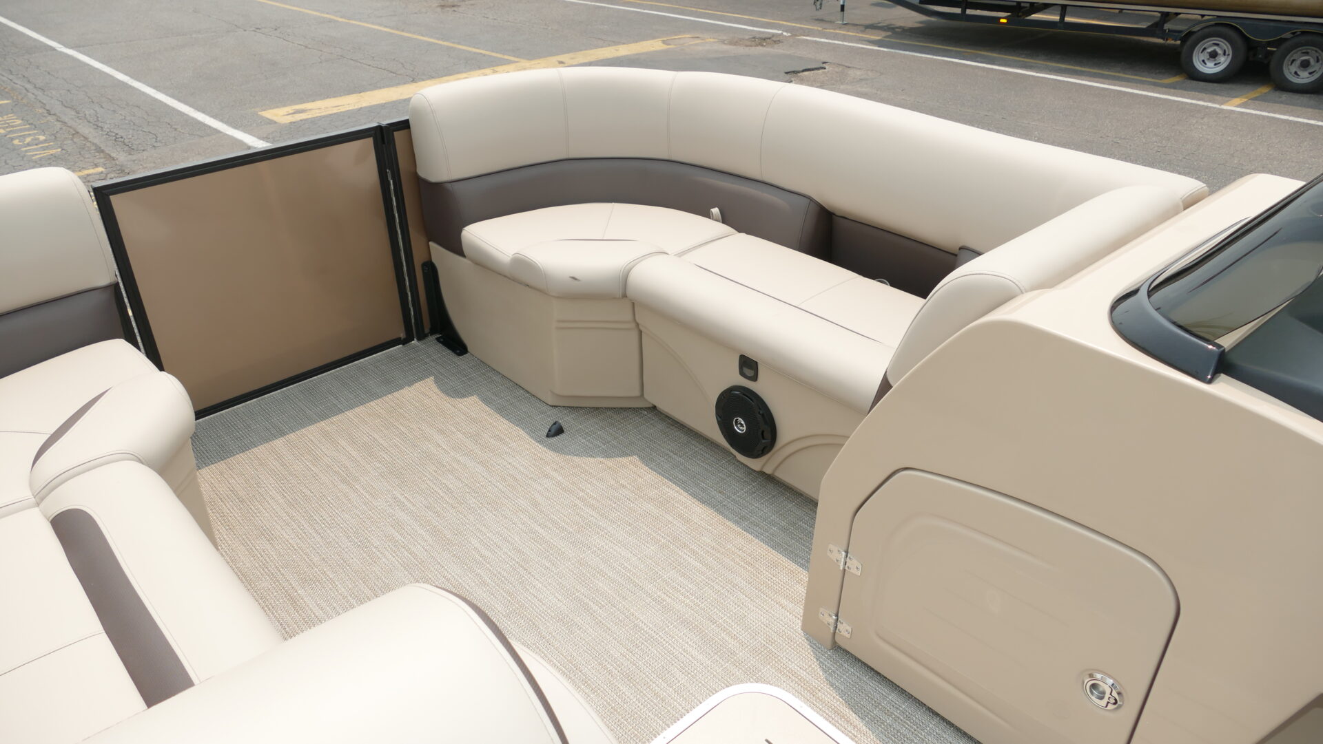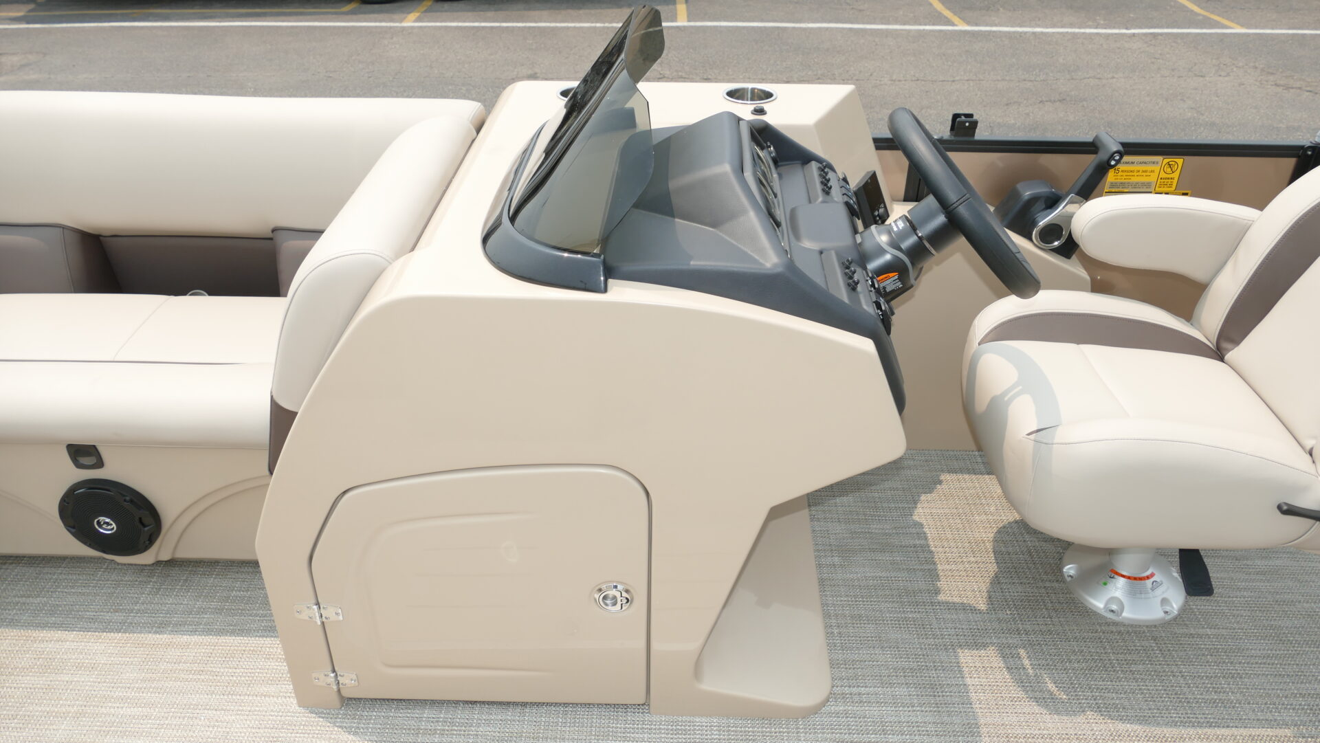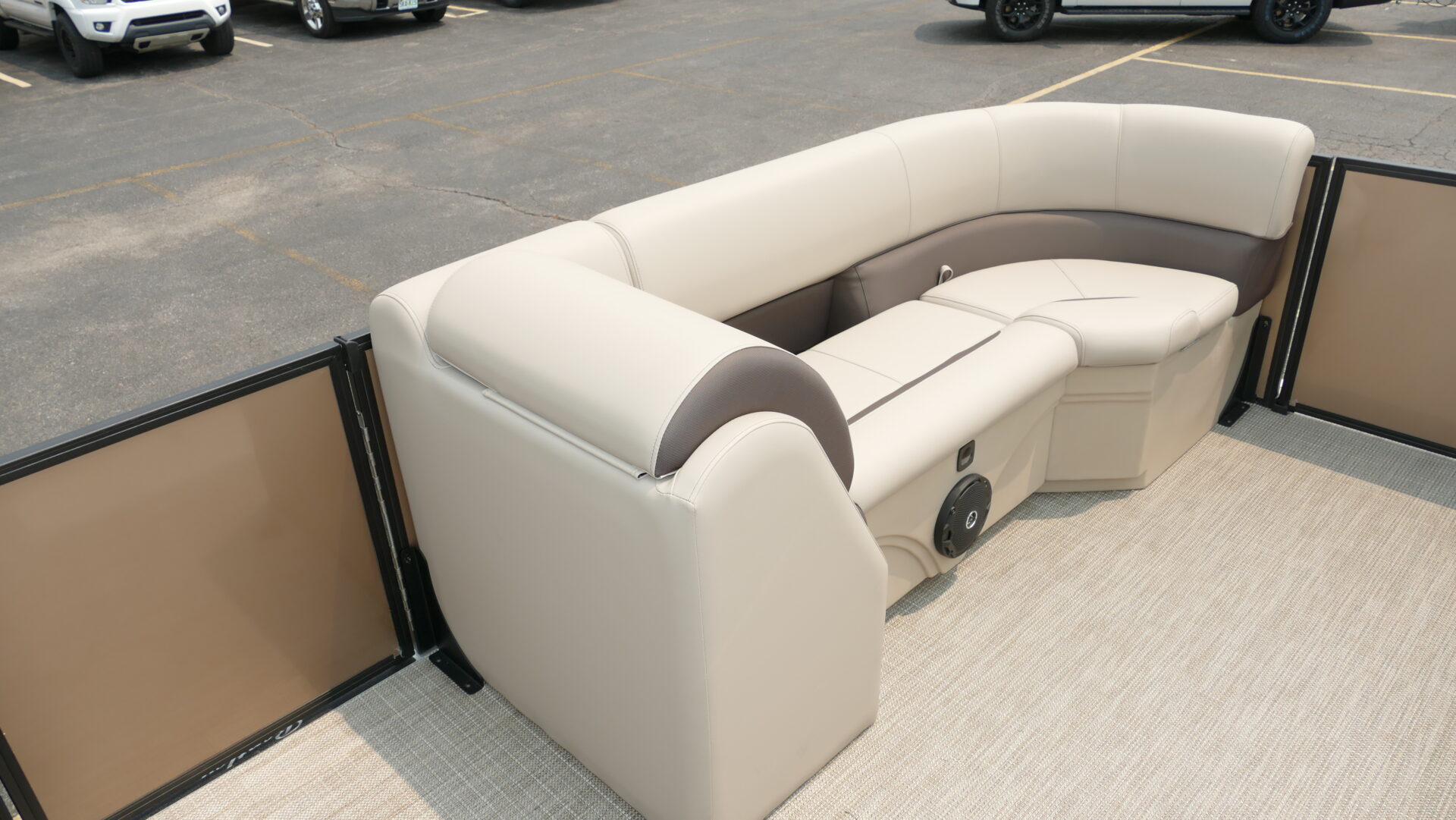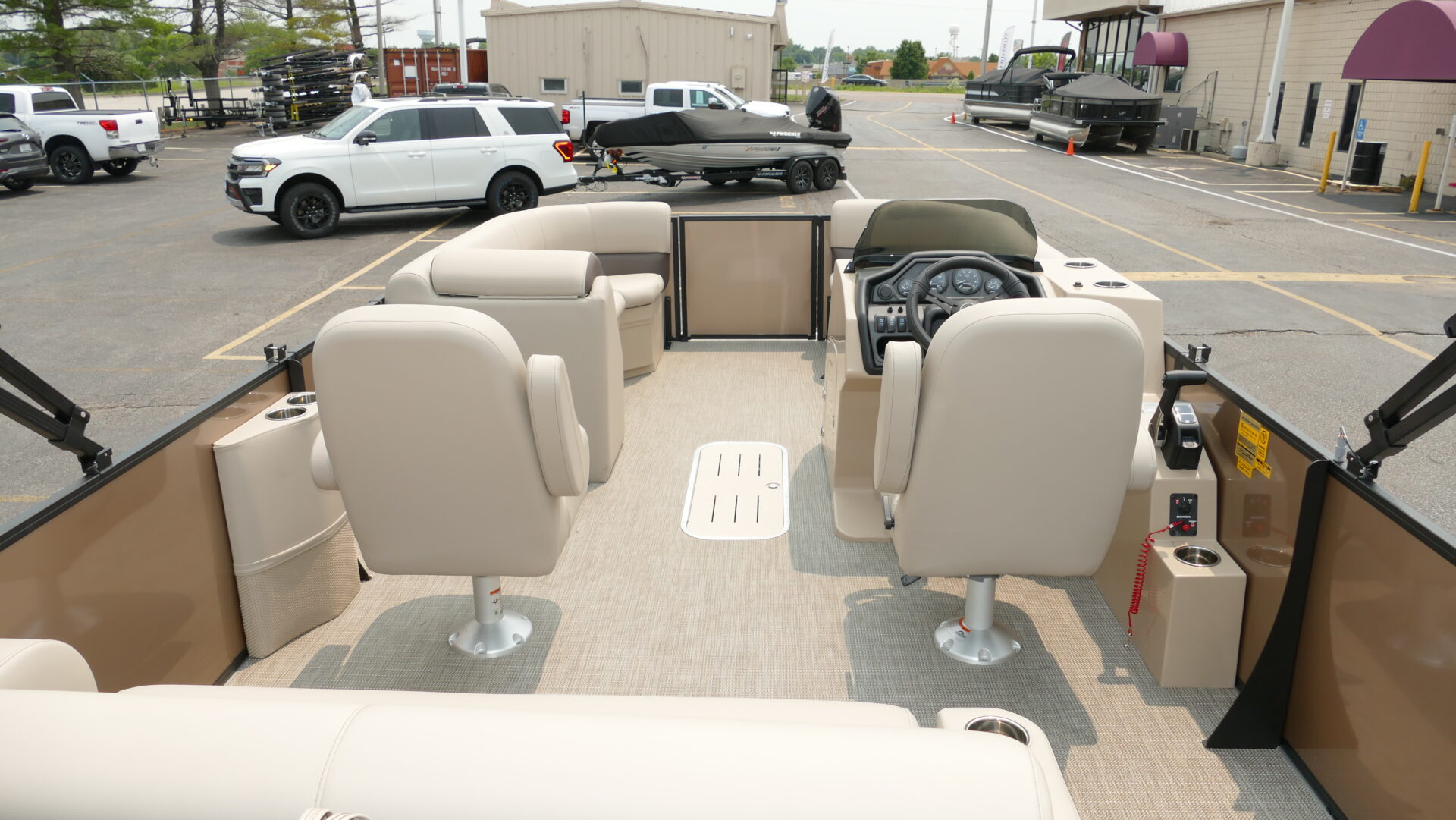 Exterior Colors : Champagne, Exterior Accent Color: Matte Black, Rail Color : Textured Black, Interior Colors : Tan, Flooring : Tan Seagrass Full Length Flooring. Honda BF150DLRA 4 Stroke, Sport Tri Toon Package: Lifting Strakes, Underskin, And Seastar Hydraulic Tilt Steering, SE Package Includes: Soft Touch Upholstery, Stainless Steel Cup Holders, Integrated Cupholders, In Floor Ski Locker, Ski Tow Bar, Windshield, 10′ Black Bimini Top Frame, Black Graphics Package, Playpen Cover, Aluminum Propeller, Installed Battery Cables With Cutoff, Honda Gauges, 1-24 Series Battery, Fire Extinguisher, Lifetime Plus 5 Year Warranty. Trailer Available For An Additional Cost.