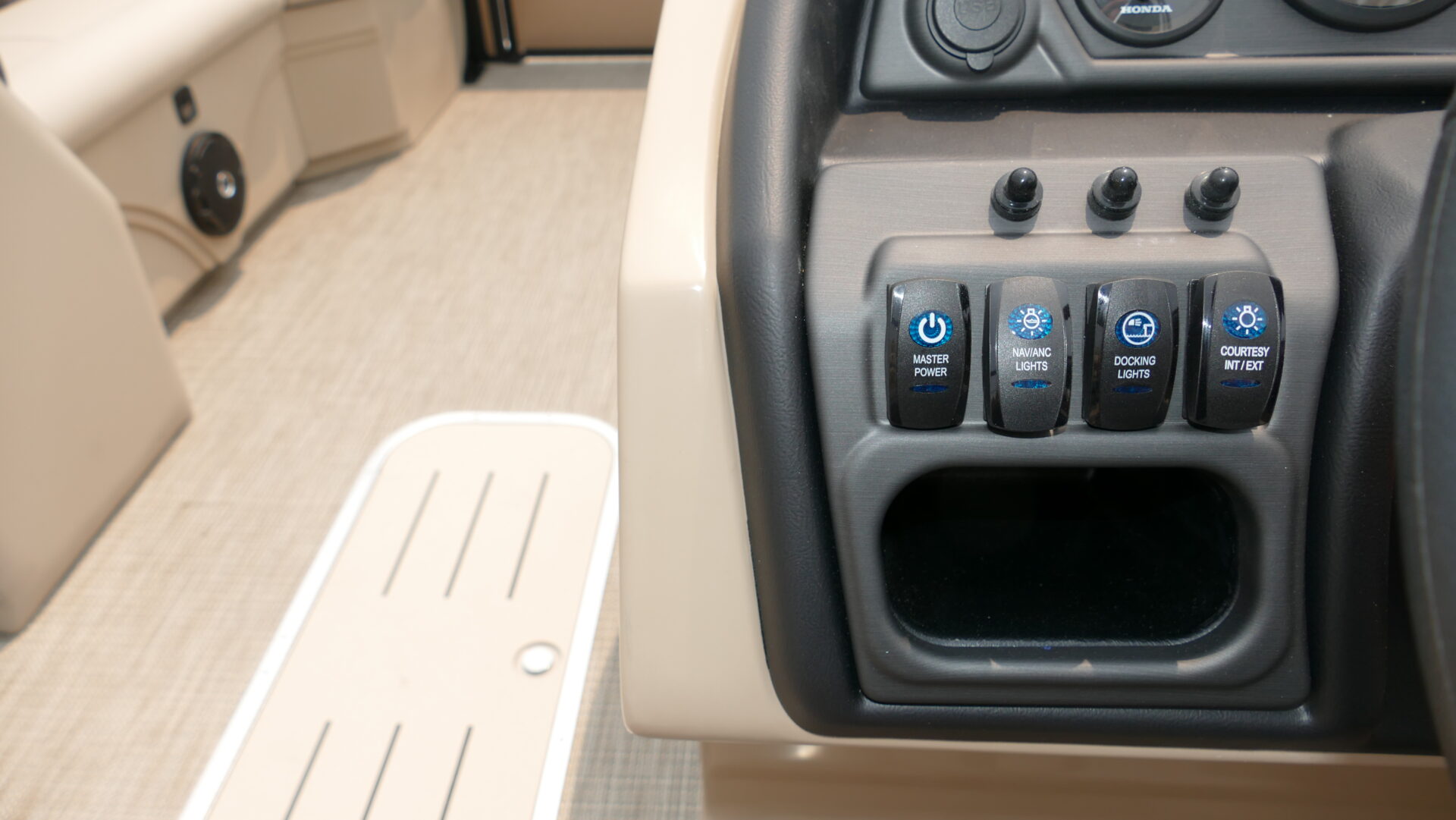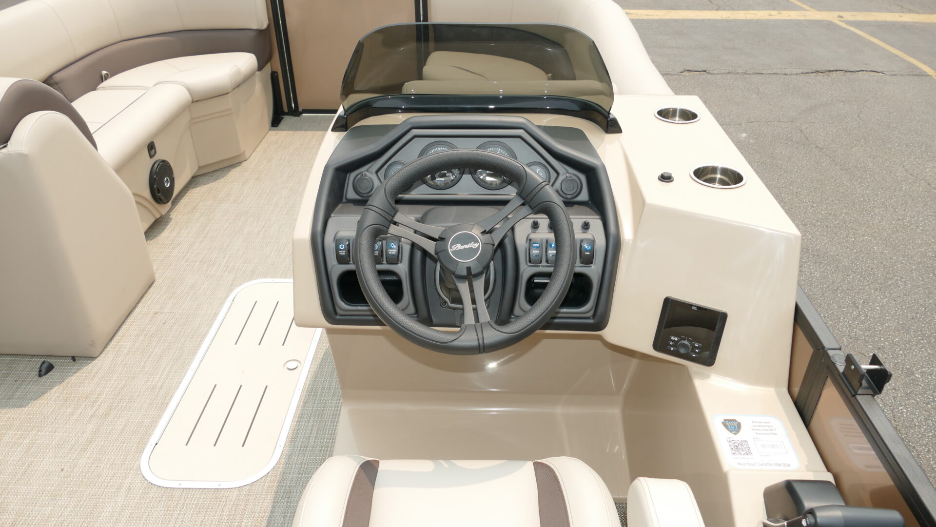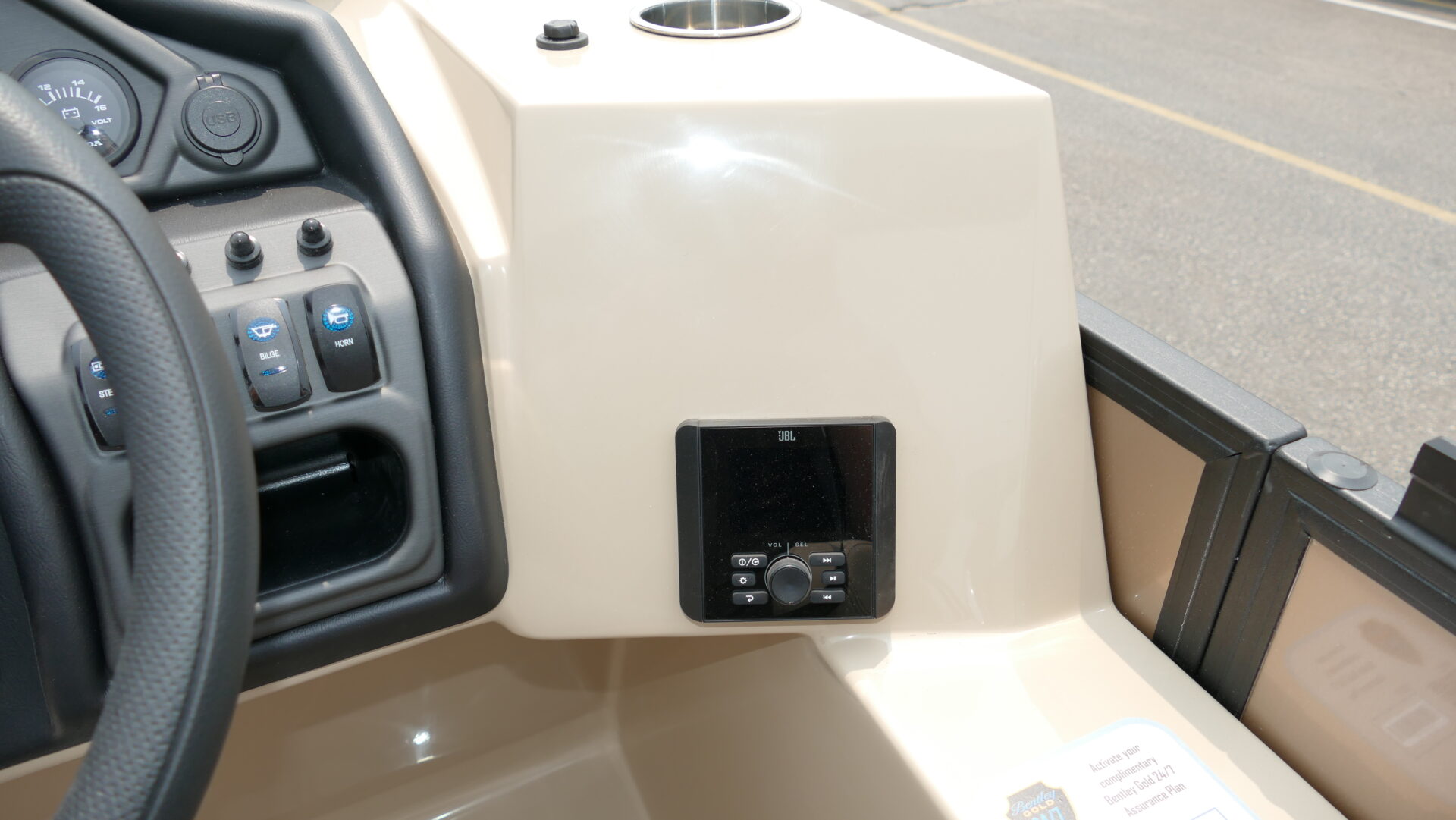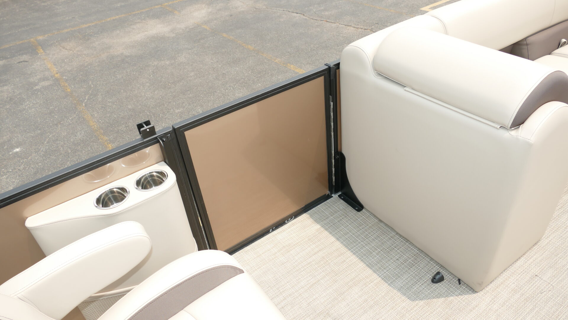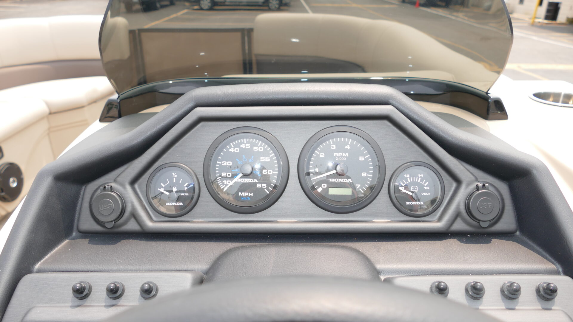 Exterior Colors : Champagne, Exterior Accent Color: Matte Black, Rail Color : Textured Black, Interior Colors : Tan, Flooring : Tan Seagrass Full Length Flooring. Honda BF150DLRA 4 Stroke, Sport Tri Toon Package: Lifting Strakes, Underskin, And Seastar Hydraulic Tilt Steering, SE Package Includes: Soft Touch Upholstery, Stainless Steel Cup Holders, Integrated Cupholders, In Floor Ski Locker, Ski Tow Bar, Windshield, 10′ Black Bimini Top Frame, Black Graphics Package, Playpen Cover, Aluminum Propeller, Installed Battery Cables With Cutoff, Honda Gauges, 1-24 Series Battery, Fire Extinguisher, Lifetime Plus 5 Year Warranty. Trailer Available For An Additional Cost.