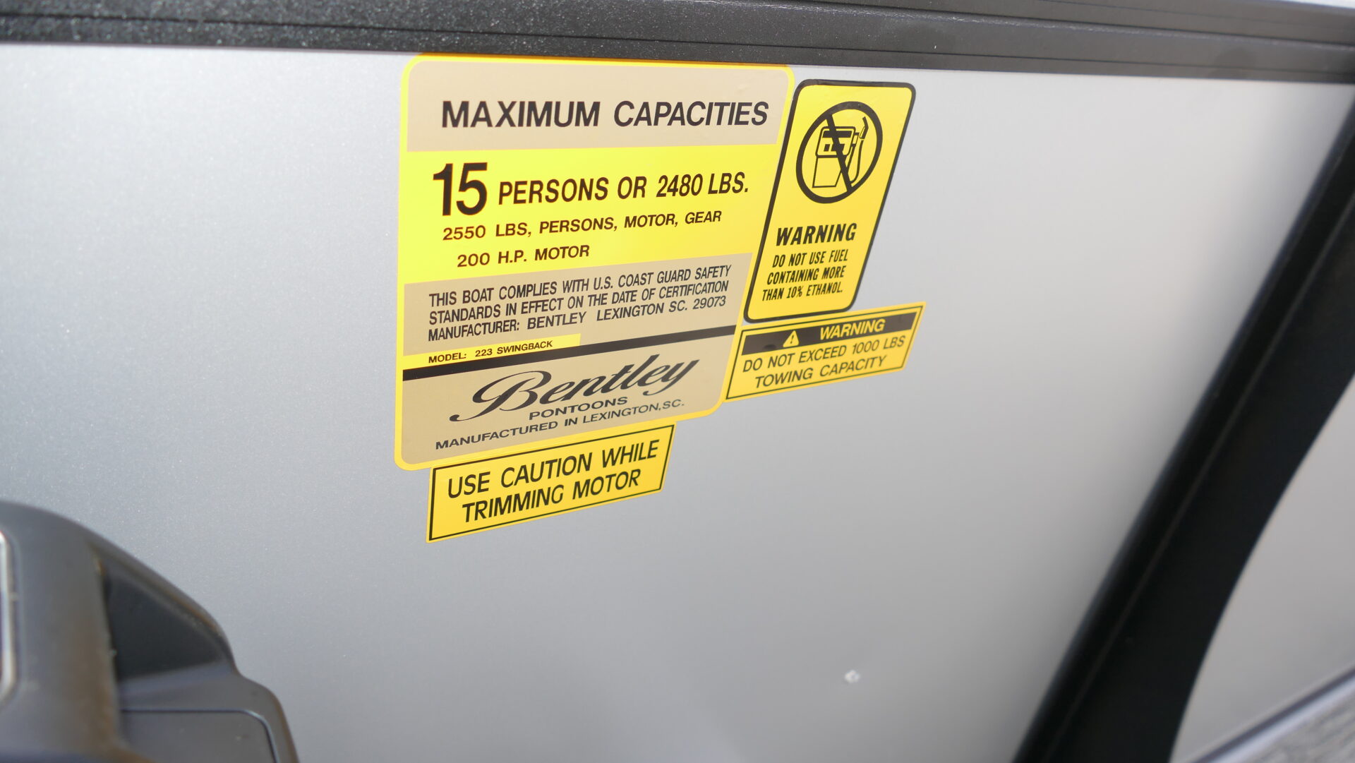 2026 Bentley Legacy 223 Swingback. Sport Tri Toon Package. Honda BF200 4 Stroke.