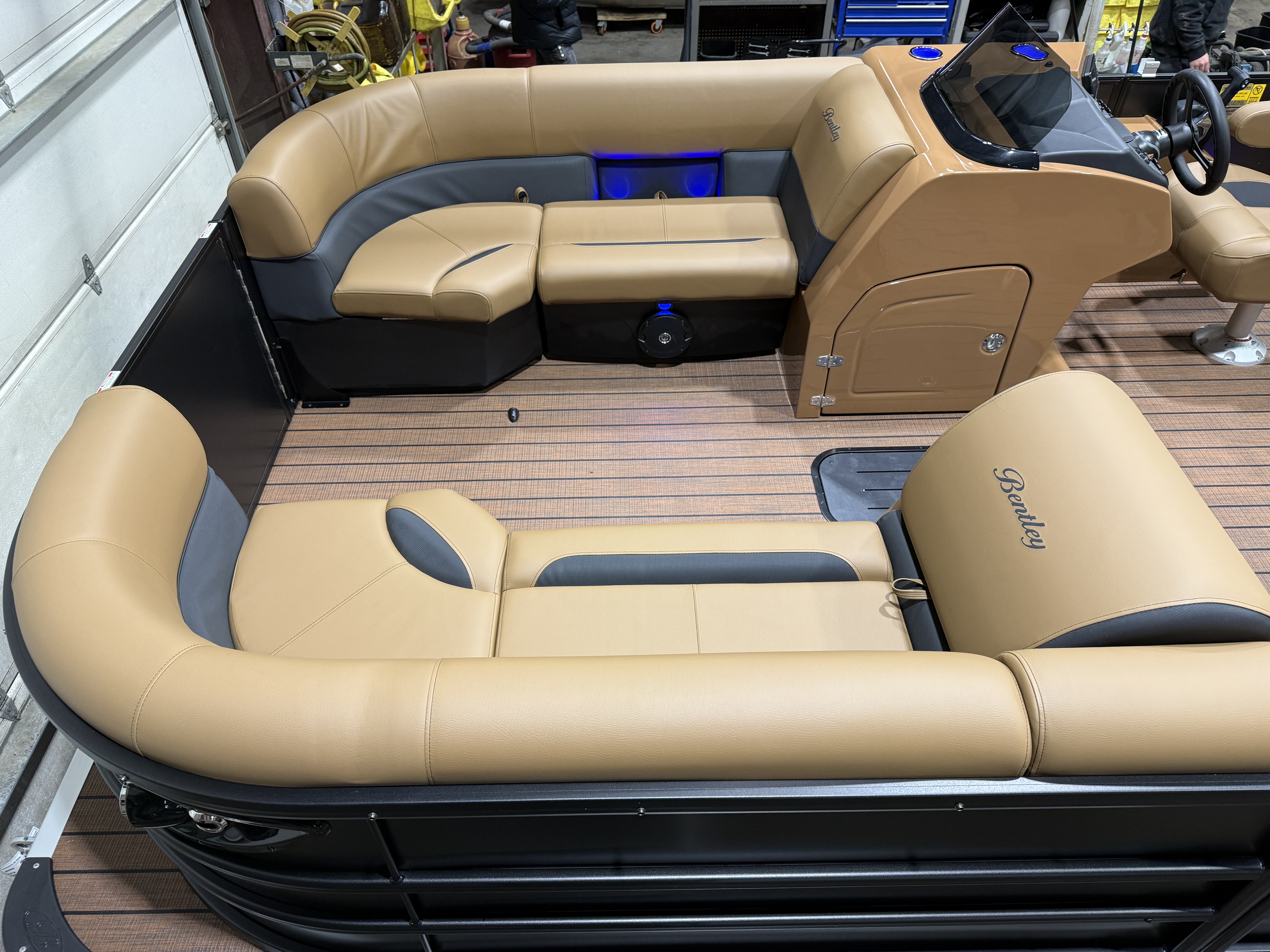 2026 Bentley Legacy 223 Swingback Tritoon Pontoon & Honda 4-Stroke EFI. This 22' Cruise Swingback Has Front Chaise Lounge Seating With Storage, Two High-Back Reclining Captain's Seat With Seat Slider, Rear Swingback Rear Lounge Seating With Multiple Positions & Storage, Rear Safety Fencing, Interior Blue LED Package (Lighted Cup Holders & Courtesy Lights), Powder Coated Rails, Walnut Teak Vinyl Flooring, Livewell, Built-In Cooler, Built-In Garbage Can, Stainless Steel Flip Up Cleats, Humminbird Helix 5 GPS & Depth Finder, Ski Tow Bar, Bluetooth Radio w/4 Speakers, Table, Pop-Up Table In Front Of Co-Captain, Fiberglass Helm w/Storage, Playpen Cover, Hydro Tilt Steering, Lifting Strakes, LED NAV Lights, LED Docking Lights, Ski Locker In 3rd Tube, Rear Ladder, Gauge Package w/ Hour Meter, 25" Tubes, New Battery, Bimini Top Built-In 32 Gallon Gas Tank, Front And Rear Deck. Rated For 15 People.