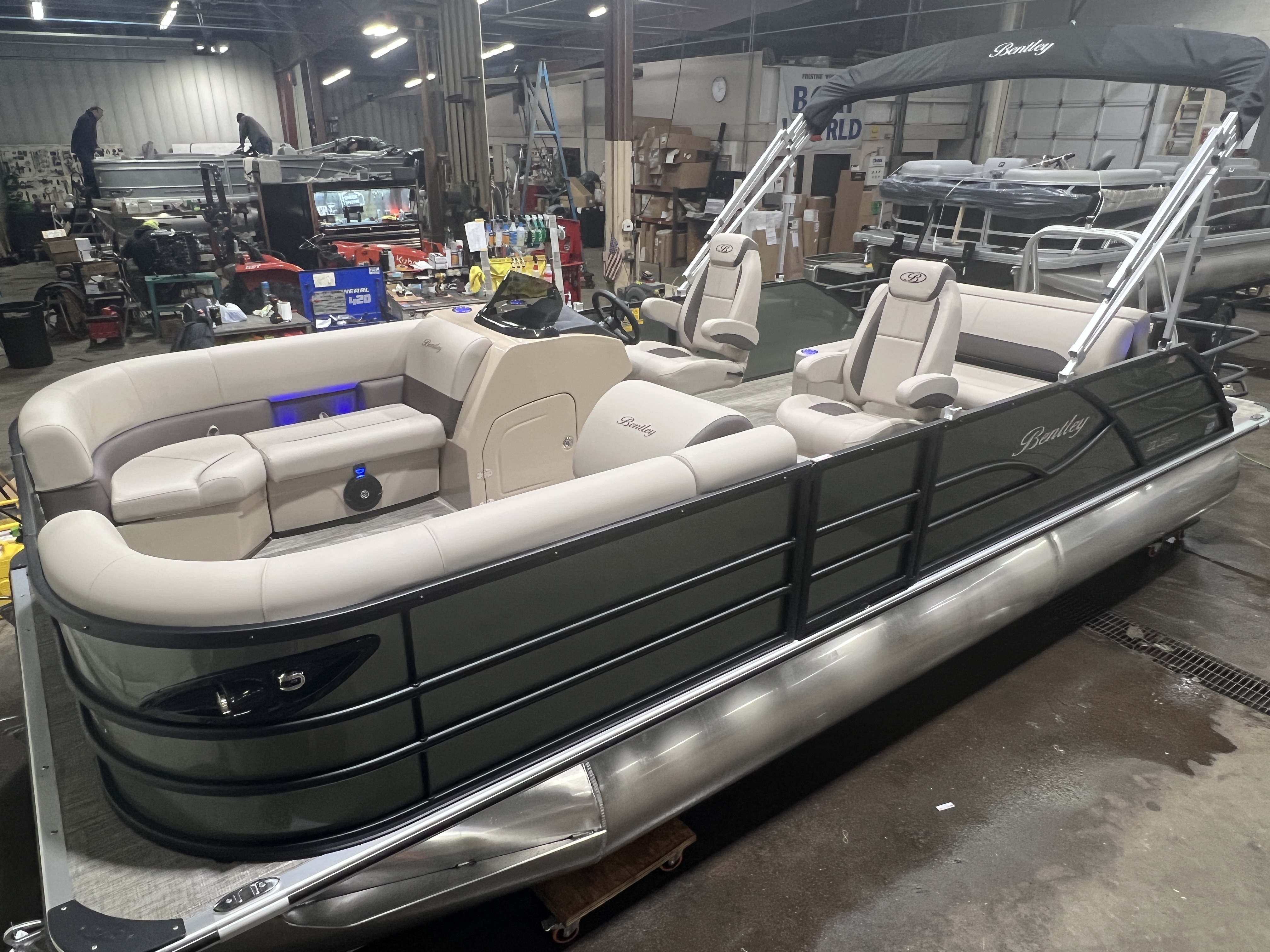2026 Bentley Legacy 223 Swingback Tritoon Pontoon & Honda 4-Stroke EFI. This 22' Cruise Swingback Has Front Chaise Lounge Seating With Storage, Two High-Back Reclining Captain's Seat With Seat Slider, Rear Swingback Rear Lounge Seating With Multiple Positions & Storage, Rear Safety Fencing, Interior Blue LED Package (Lighted Cup Holders & Courtesy Lights), Powder Coated Rails, Plank Vinyl Flooring, Livewell, Built-In Cooler, Built-In Garbage Can, Stainless Steel Flip Up Cleats, Humminbird Helix 5 GPS & Depth Finder, Ski Tow Bar, Bluetooth Radio w/4 Speakers, Table, Ski Locker In 3rd Tube, Pop-Up Table In Front Of Co-Captain, Fiberglass Helm w/Storage, Playpen Cover, Hydro Tilt Steering, Lifting Strakes, LED NAV Lights, LED Docking Lights, Rear Ladder, Gauge Package w/ Hour Meter, 25" Tubes, New Battery, Bimini Top Built-In 32 Gallon Gas Tank, Front And Rear Deck. Rated For 15 People.