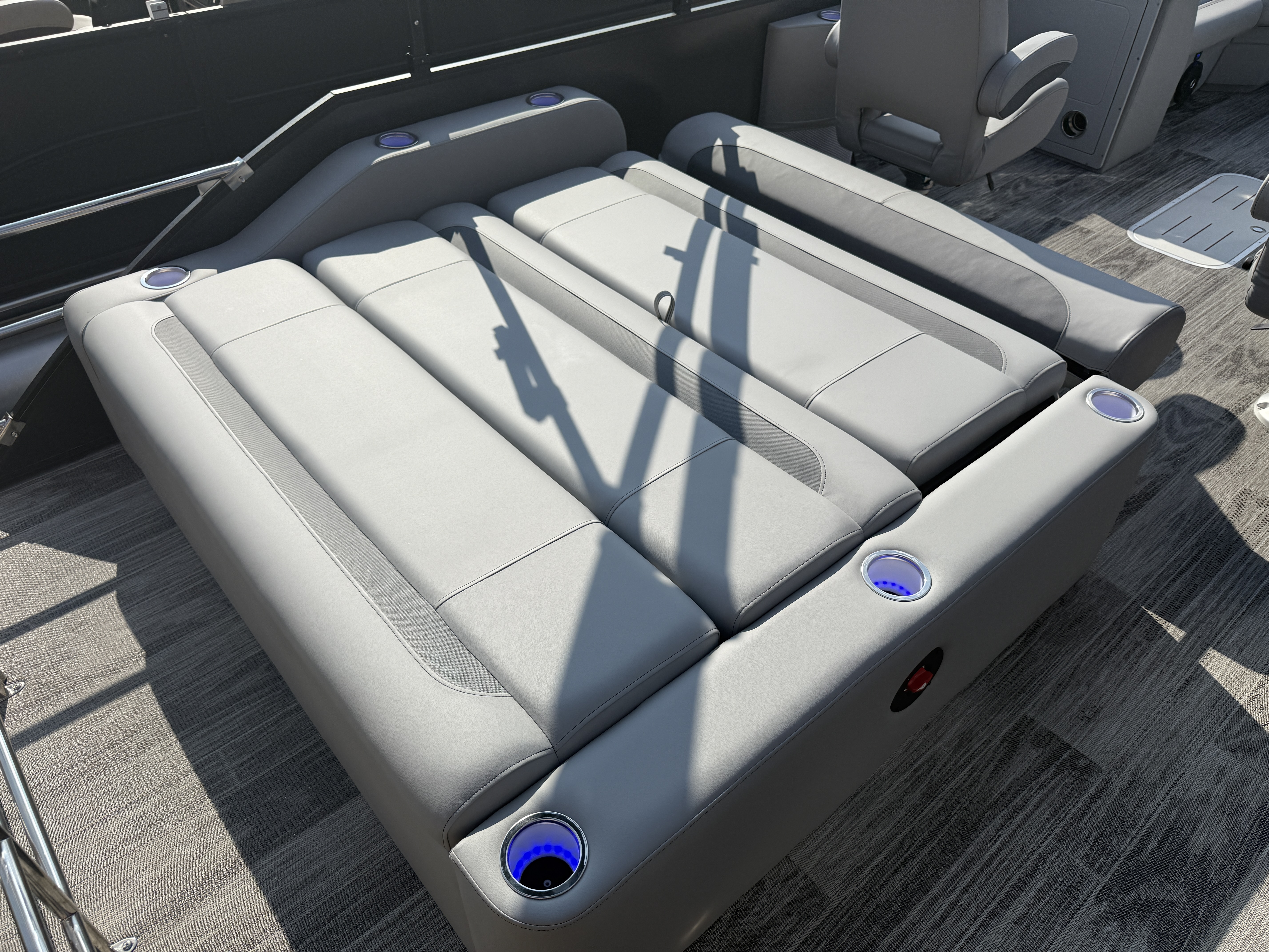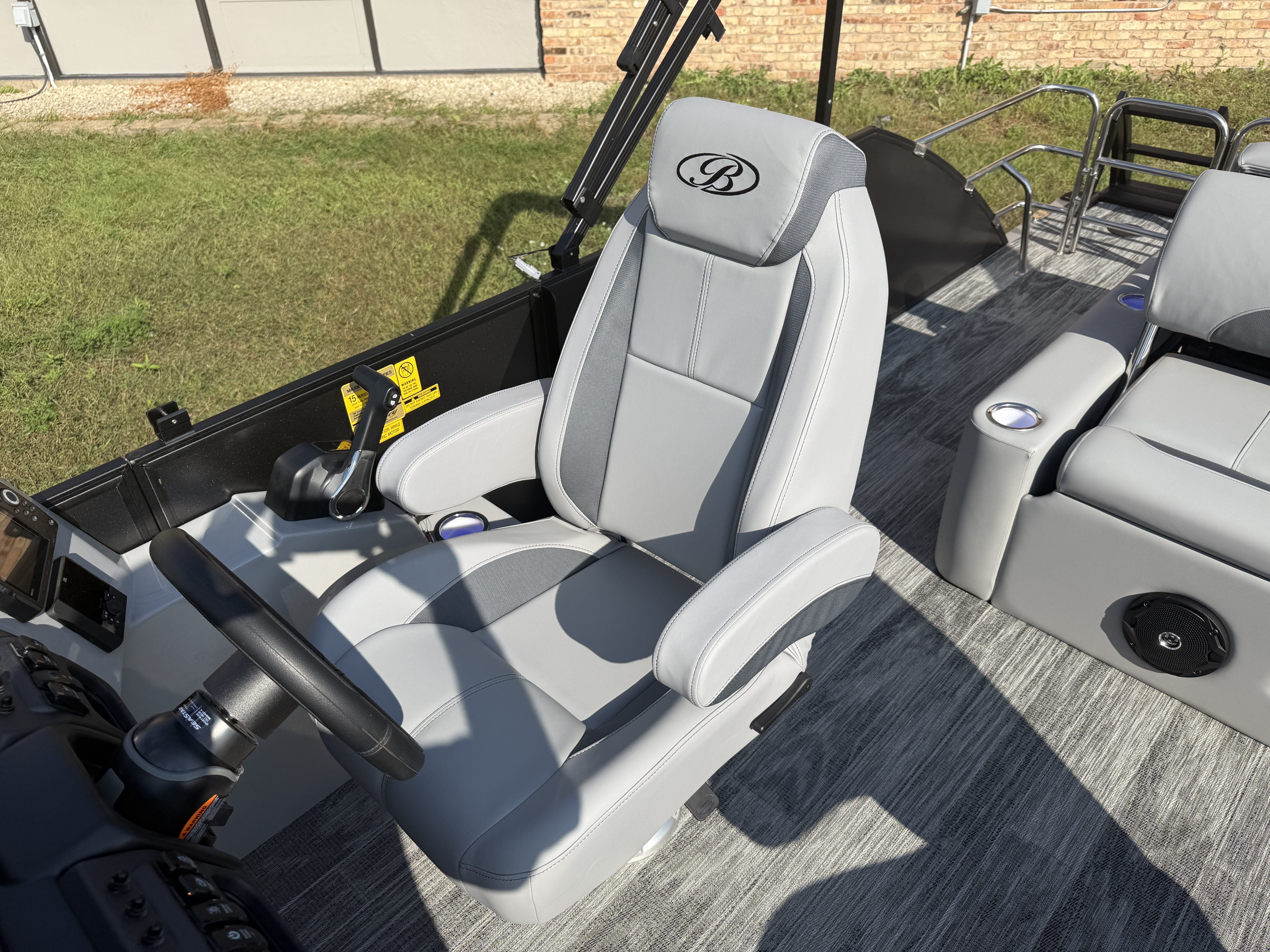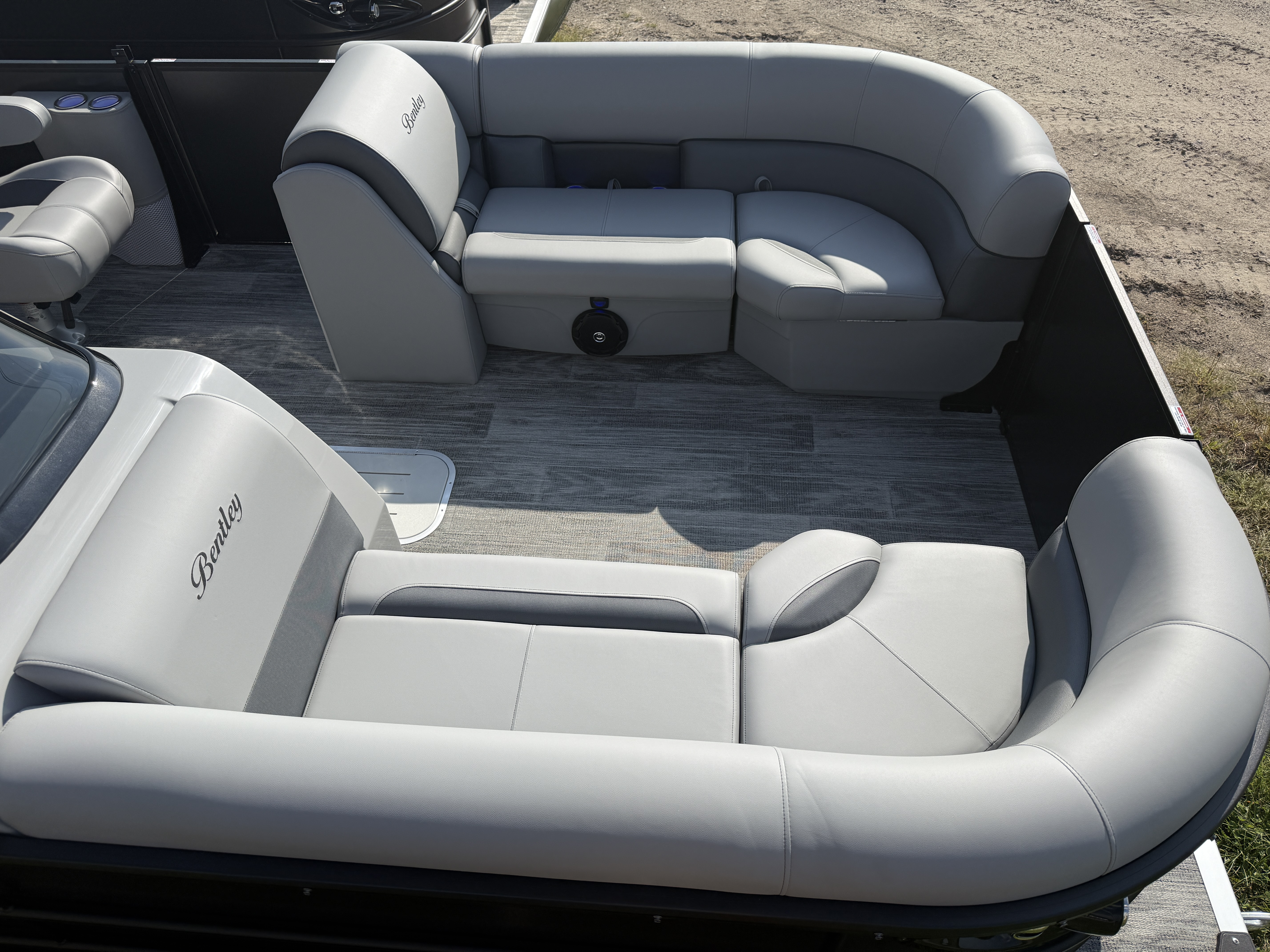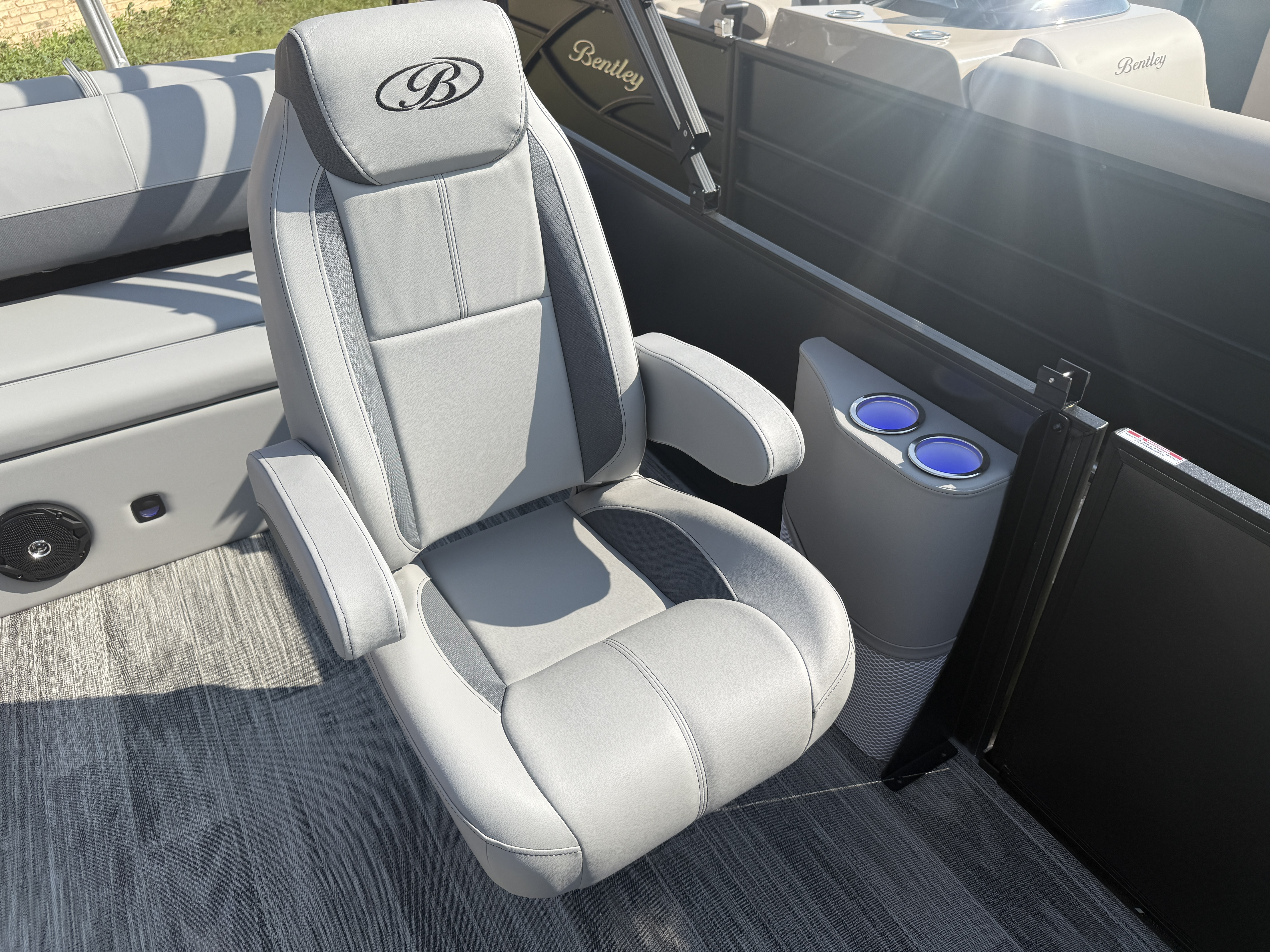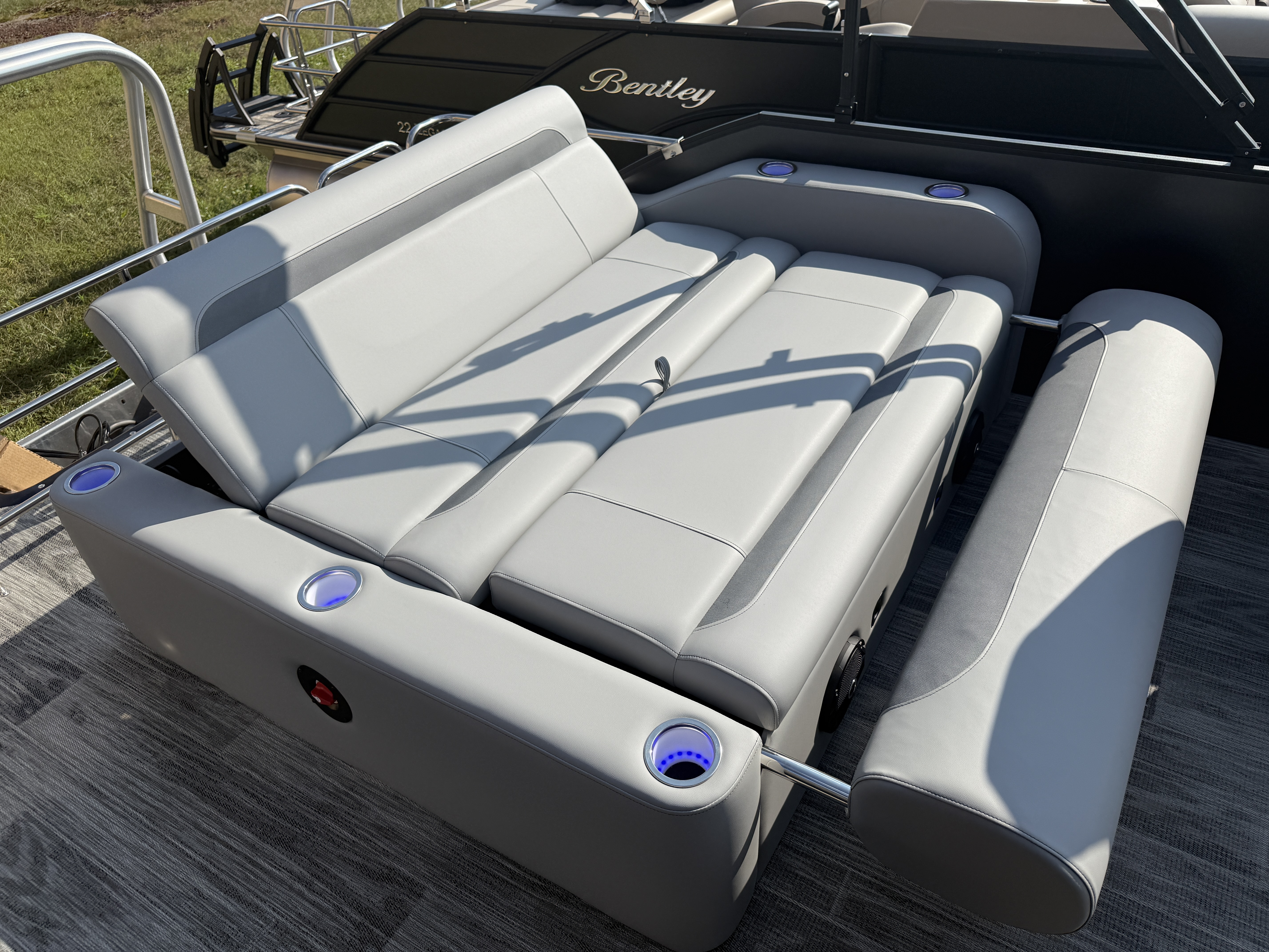 2026 Bentley Legacy 223 Swingback Tritoon Pontoon & Honda 4-Stroke EFI. This 22' Cruise Swingback Has Front Chaise Lounge Seating With Storage, Two High-Back Reclining Captain's Seat With Seat Slider, Rear Swingback Rear Lounge Seating With Multiple Positions & Storage, Rear Safety Fencing, Interior Blue LED Package (Lighted Cup Holders & Courtesy Lights), Powder Coated Rails, Plank Vinyl Flooring, Livewell, Built-In Cooler, Built-In Garbage Can, Stainless Steel Flip Up Cleats, Humminbird Helix 5 GPS & Depth Finder, Ski Tow Bar, Bluetooth Radio w/4 Speakers, Table, Pop-Up Table In Front Of Co-Captain, Fiberglass Helm w/Storage, Playpen Cover, Hydro Tilt Steering, Lifting Strakes, LED NAV Lights, LED Docking Lights, Ski Locker In 3rd Tube, Rear Ladder, Gauge Package w/ Hour Meter, 25" Tubes, New Battery, Bimini Top Built-In 32 Gallon Gas Tank, Front And Rear Deck. Rated For 15 People.