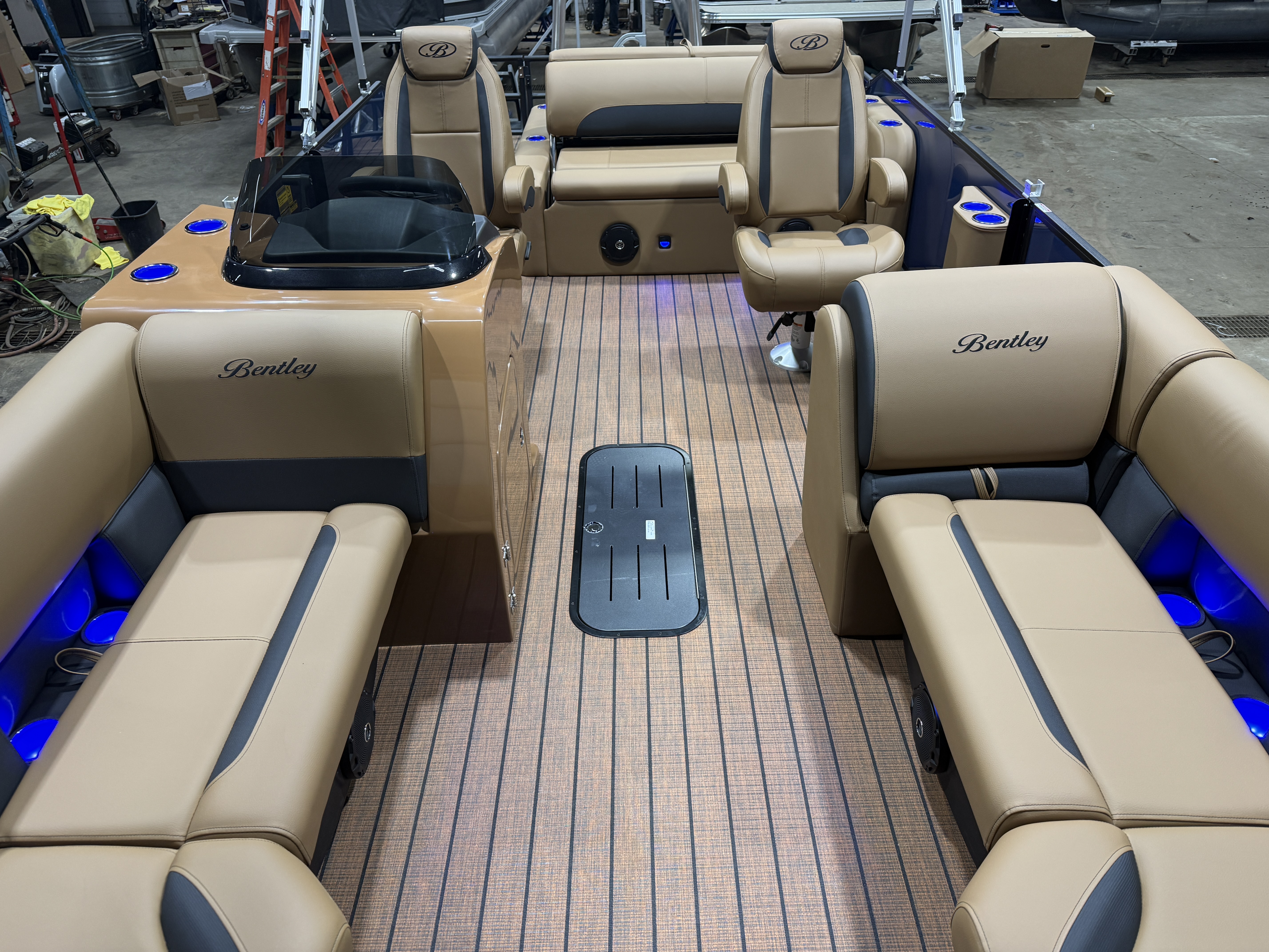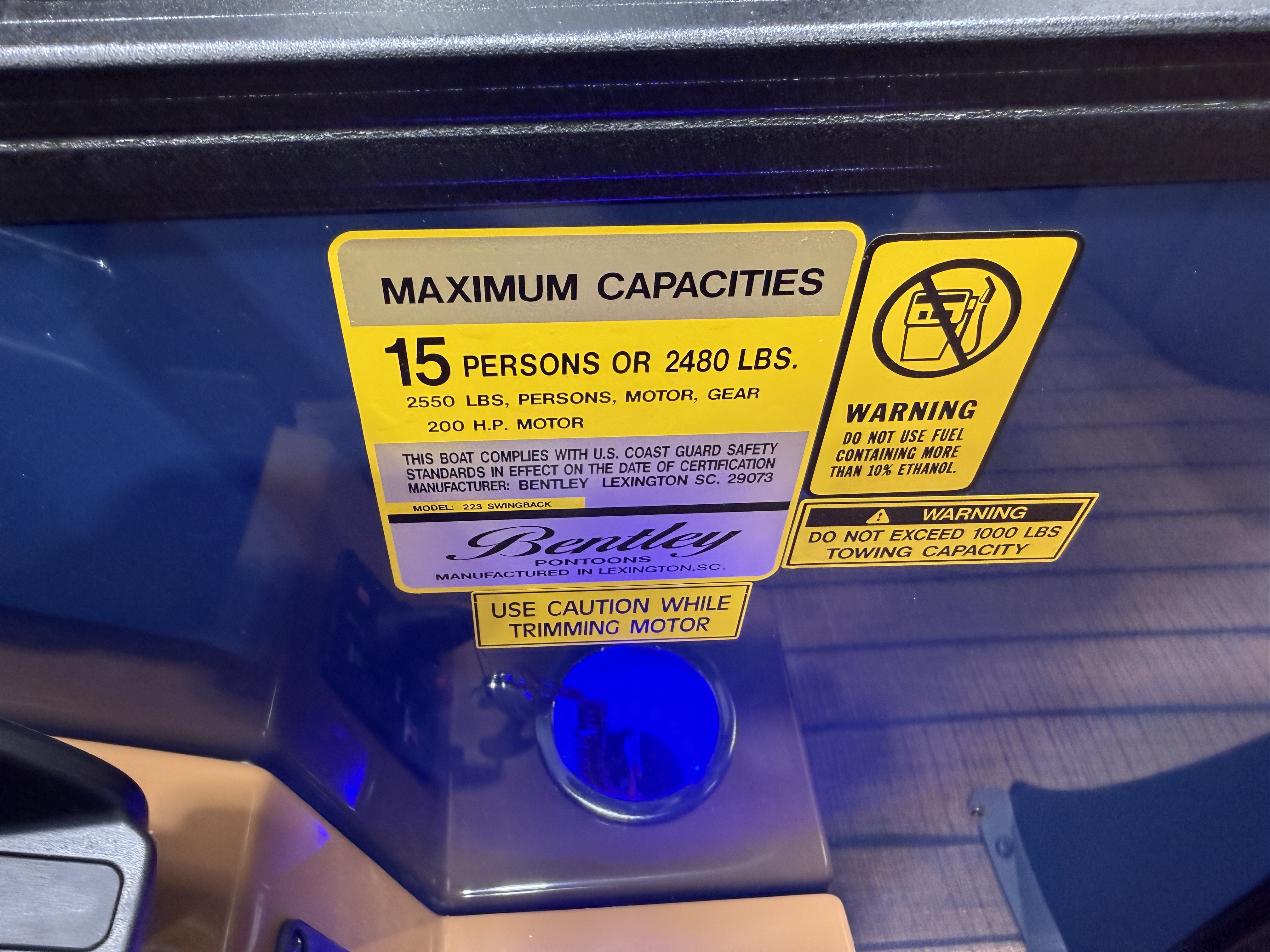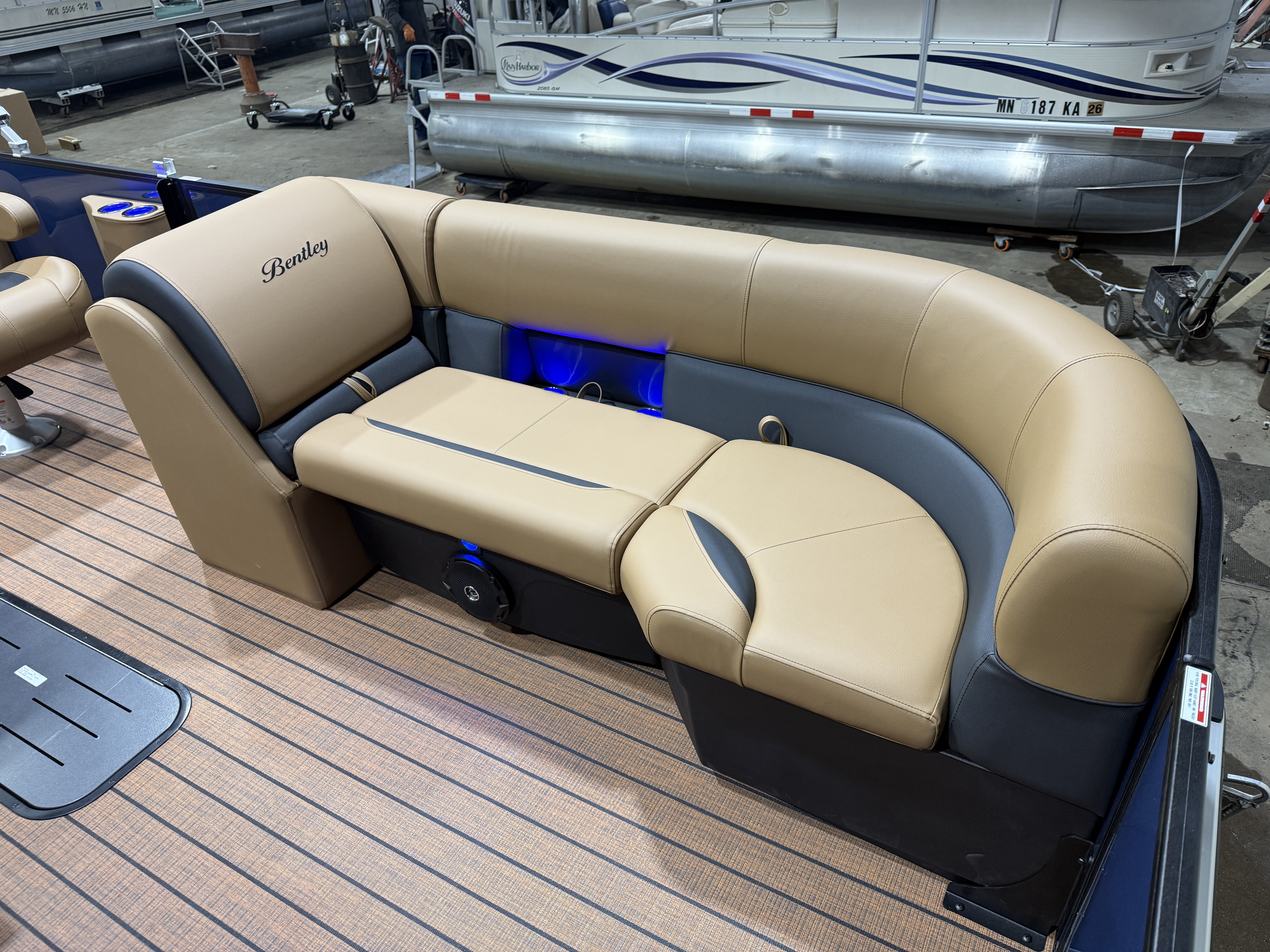 2026 Bentley Legacy 223 Swingback Tritoon Pontoon & Honda 4-Stroke EFI. This 22' Cruise Swingback Has Front Chaise Lounge Seating With Storage, Two High-Back Reclining Captain's Seat With Seat Slider, Rear Swingback Rear Lounge Seating With Multiple Positions & Storage, Rear Safety Fencing, Interior Blue LED Package (Lighted Cup Holders & Courtesy Lights), Powder Coated Rails, Walnut Teak Vinyl Flooring, Livewell, Built-In Cooler, Built-In Garbage Can, Stainless Steel Flip Up Cleats, Humminbird Helix 5 GPS & Depth Finder, Ski Tow Bar, Bluetooth Radio w/4 Speakers, Table, Pop-Up Table In Front Of Co-Captain, Fiberglass Helm w/Storage, Playpen Cover, Hydro Tilt Steering, Lifting Strakes, LED NAV Lights, LED Docking Lights, Ski Locker In 3rd Tube, Rear Ladder, Gauge Package w/ Hour Meter, 25" Tubes, New Battery, Bimini Top Built-In 32 Gallon Gas Tank, Front And Rear Deck. Rated For 15 People.