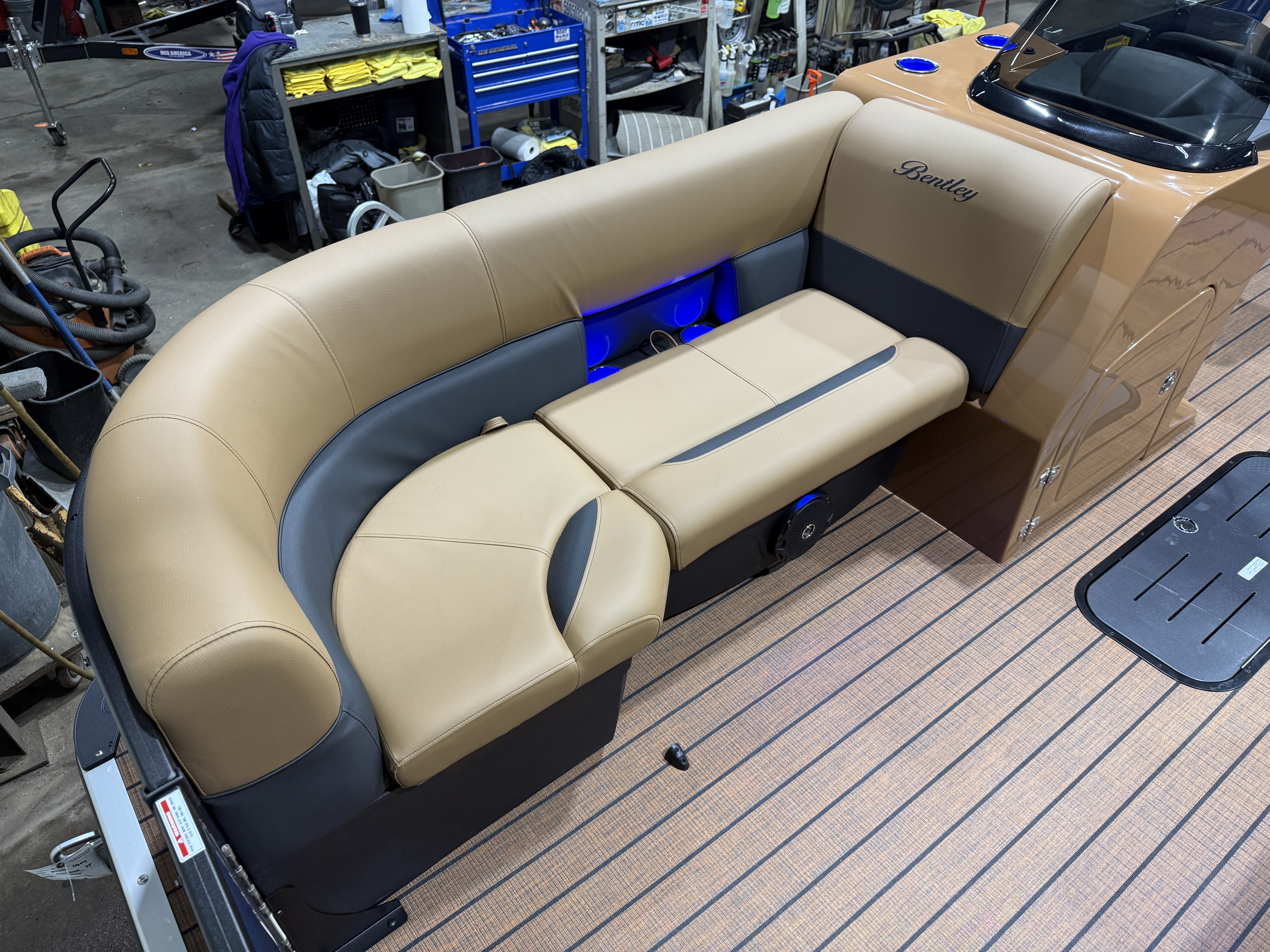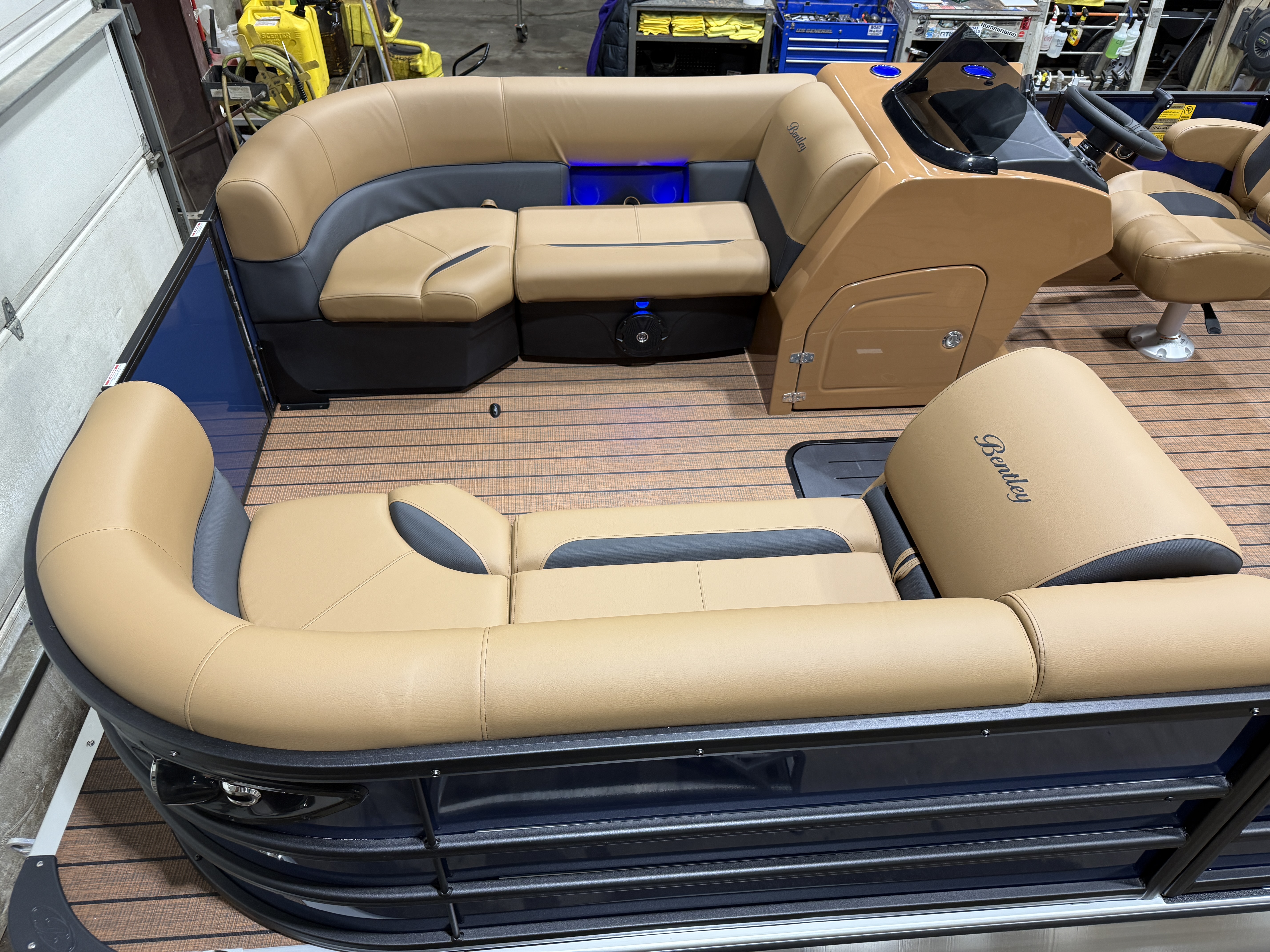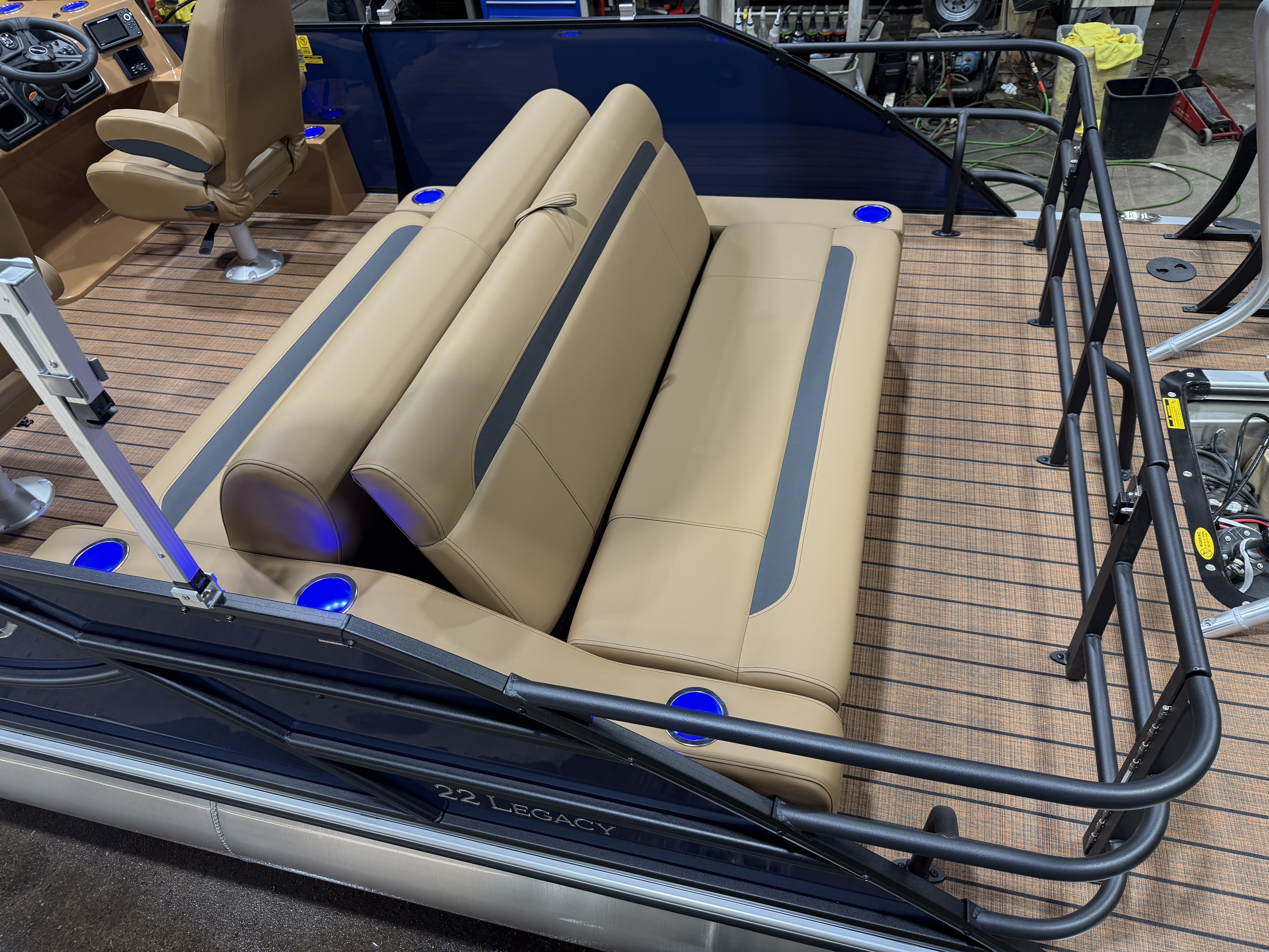 2026 Bentley Legacy 223 Swingback Tritoon Pontoon & Honda 4-Stroke EFI. This 22' Cruise Swingback Has Front Chaise Lounge Seating With Storage, Two High-Back Reclining Captain's Seat With Seat Slider, Rear Swingback Rear Lounge Seating With Multiple Positions & Storage, Rear Safety Fencing, Interior Blue LED Package (Lighted Cup Holders & Courtesy Lights), Powder Coated Rails, Walnut Teak Vinyl Flooring, Livewell, Built-In Cooler, Built-In Garbage Can, Stainless Steel Flip Up Cleats, Humminbird Helix 5 GPS & Depth Finder, Ski Tow Bar, Bluetooth Radio w/4 Speakers, Table, Pop-Up Table In Front Of Co-Captain, Fiberglass Helm w/Storage, Playpen Cover, Hydro Tilt Steering, Lifting Strakes, LED NAV Lights, LED Docking Lights, Ski Locker In 3rd Tube, Rear Ladder, Gauge Package w/ Hour Meter, 25" Tubes, New Battery, Bimini Top Built-In 32 Gallon Gas Tank, Front And Rear Deck. Rated For 15 People.