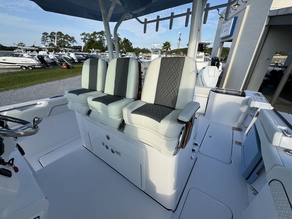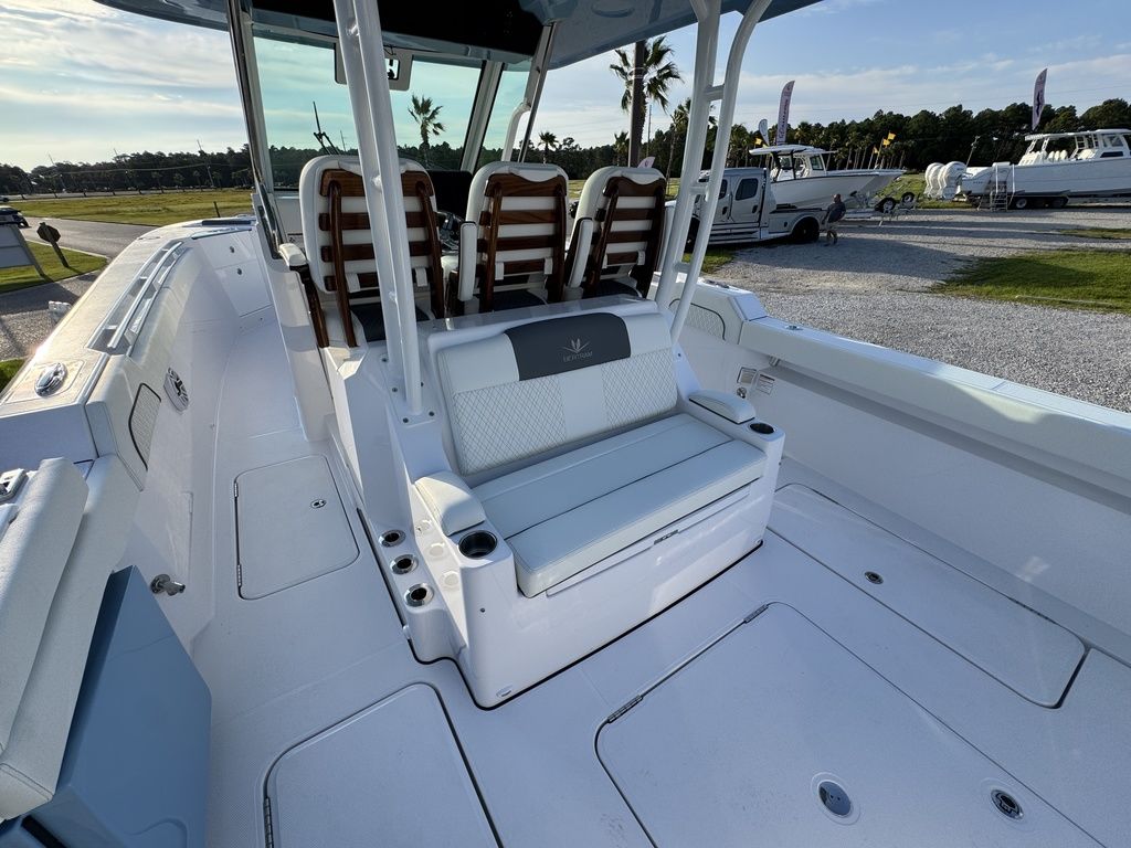 - Aft-facing leaning post seat with insulated storage