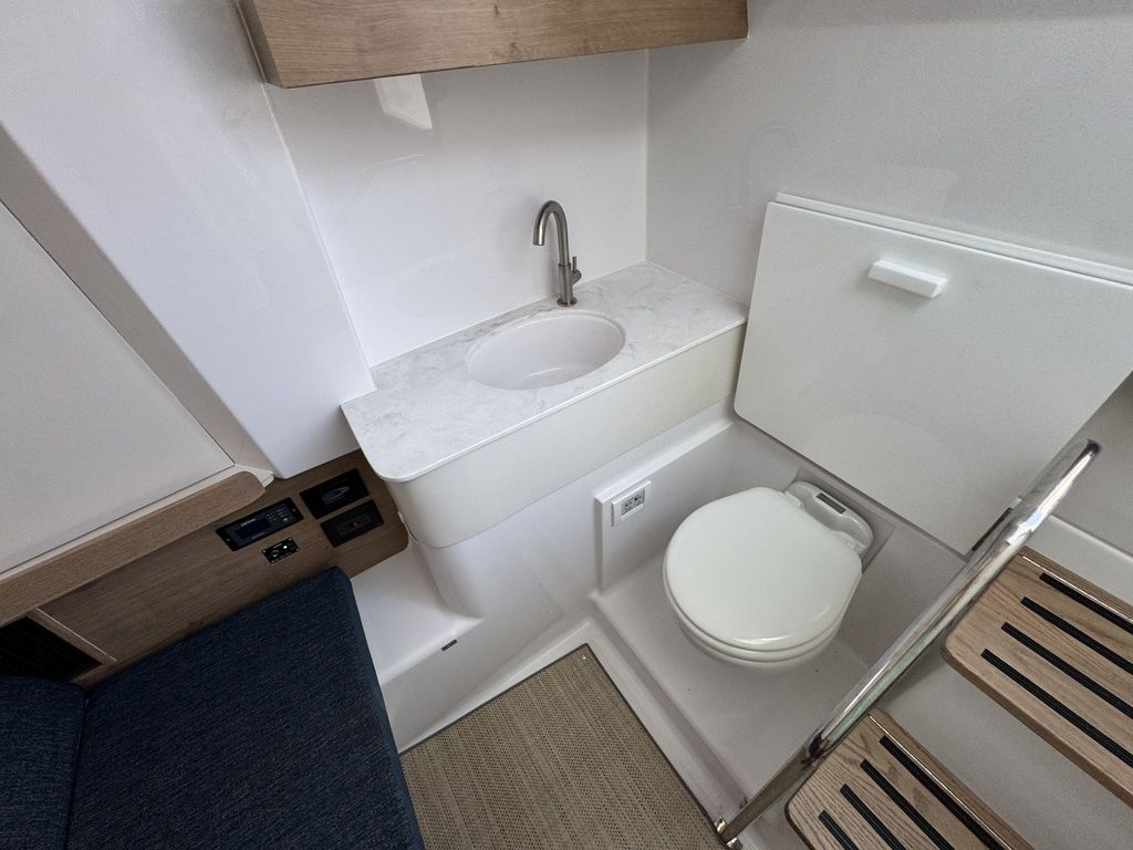 - Hideaway freshwater porcelain macerating toilet with overboard discharge and dockside pump-out