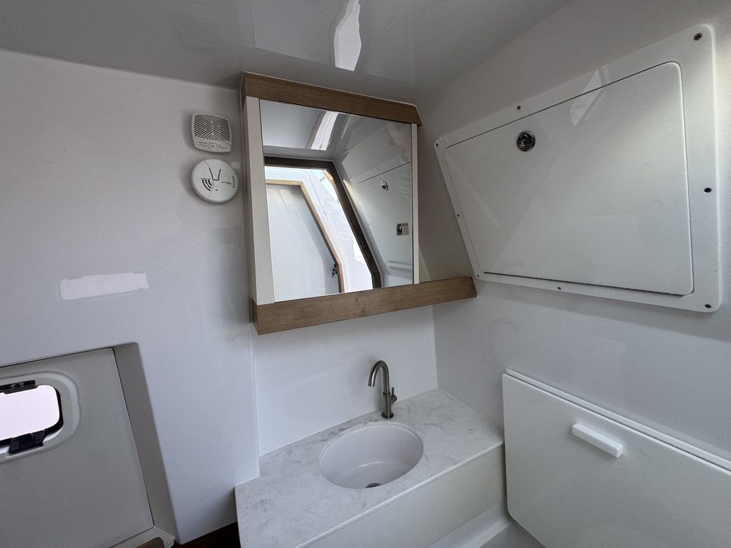 Designed for dedicated fishermen. On deck, you’ll find a spacious cockpit perfect for all your angling needs. This boat comes equipped with insulated fish boxes and additional tubs to keep your catch fresh, plenty of storage for your gear, and three wide helm seats for maximum comfort during your journeys. Plus, easy access to the cabin ensures convenience for everyone on board, making it an ideal choice for your next fishing trip.