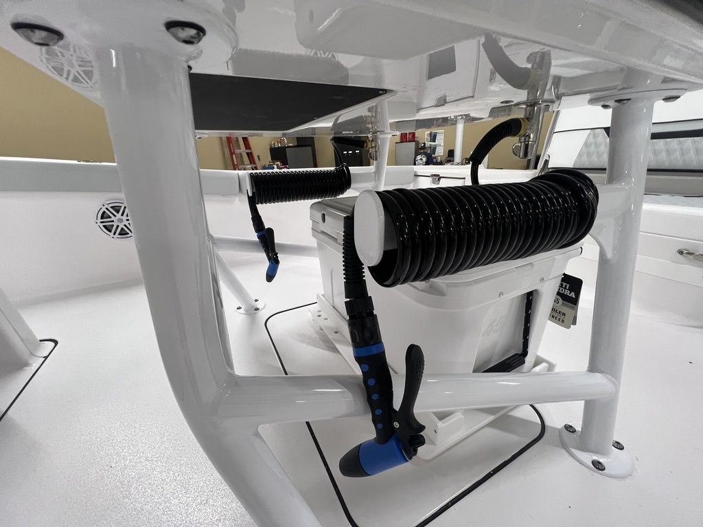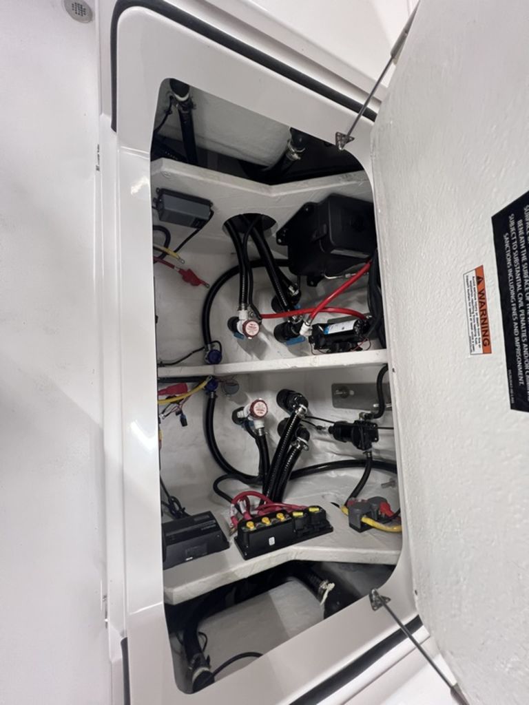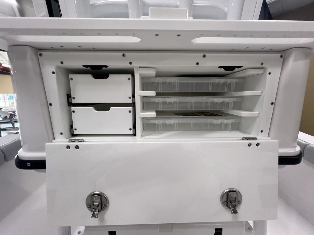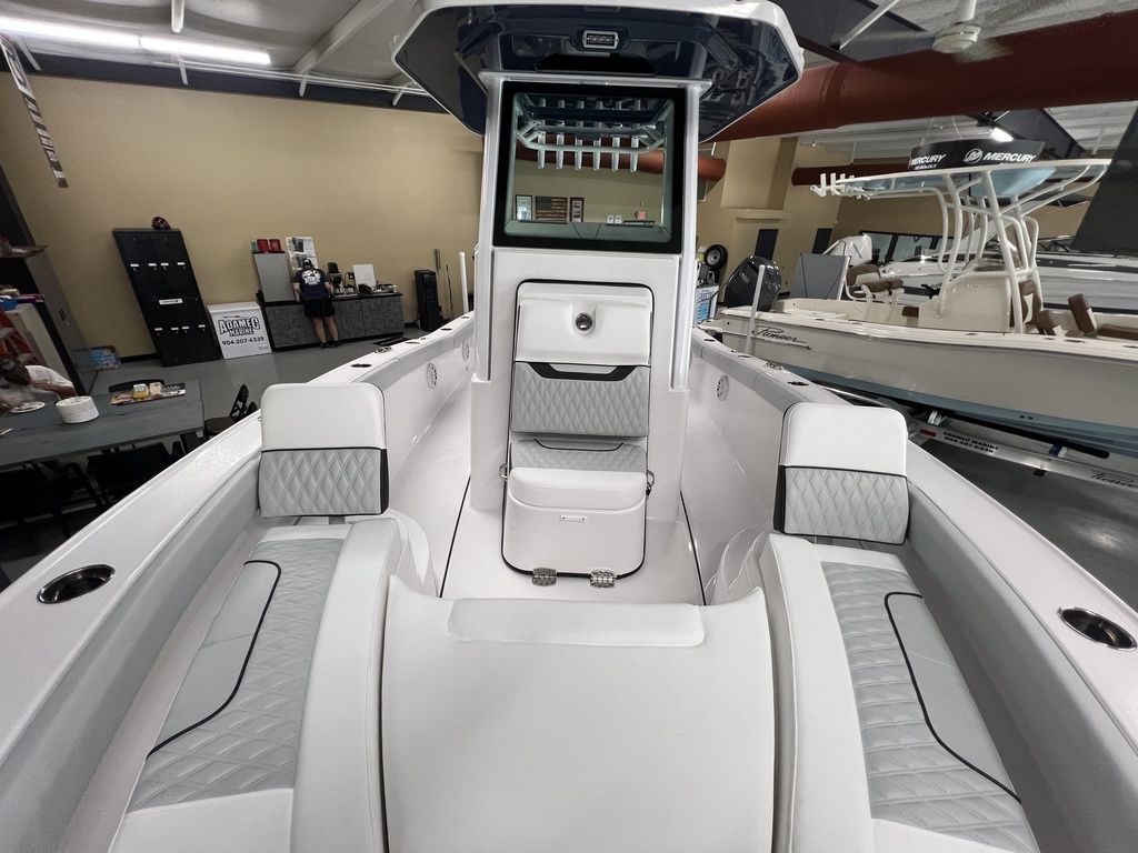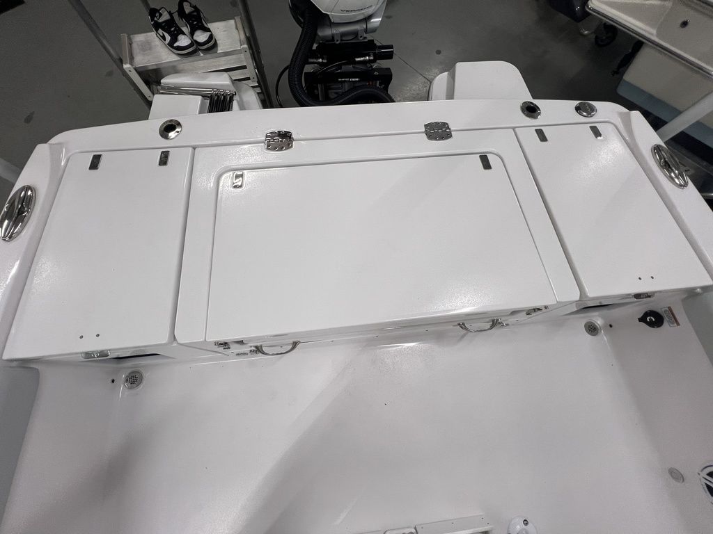 Featuring wide casting decks, ample under-seat storage, insulated fish boxes, and a large recirculating livewell, this boat is ready for serious anglers. The elevated helm station provides excellent visibility, while premium seating and refined finishes ensure all-day comfort for family or guests. Equipped with integrated rod storage, a spacious center console with head compartment, and advanced digital controls, this bay boat brings luxury and fishability together in one sleek package.