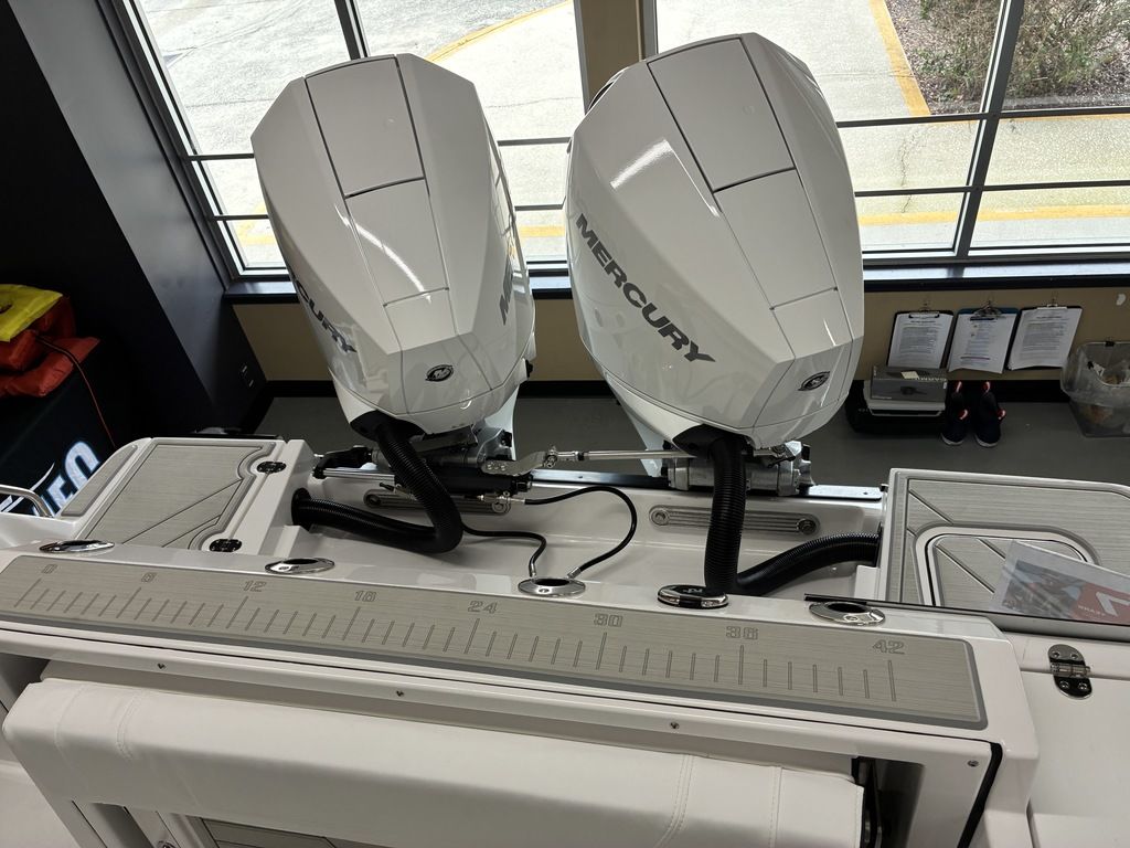 Propelled by twin 200 Mercury outboards—400 horses of refined V8 fury—the 252 CC surges to plane in seconds, delivering effortless top-end speeds and torque-rich low-end pull for trolling marlin or blasting to distant wrecks. Efficiency meets exhilaration: quiet, vibration-free operation with digital precision rigging, ensuring you cover more bluewater with less fuel burn. At the helm, the custom leaning post beckons with a flip-up bolster seat, high windscreen shield, and ergonomic command center, where the massive Garmin 8612 touchscreen reigns supreme. This 12-inch powerhouse integrates sonar, radar, autopilot, and real-time charts into one intuitive interface, arming you with crystal-clear intel to outsmart the bite or navigate fog-shrouded returns.