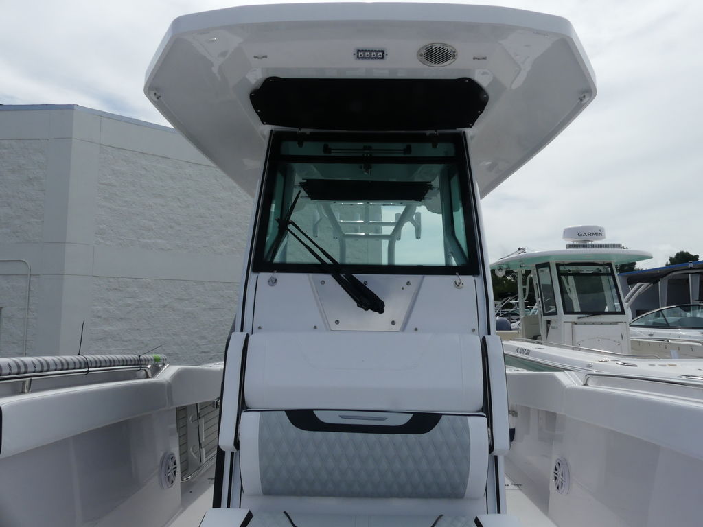 - Fiberglass Hardtop System w/Powder-Coated Aluminum(White) Framework, Tempered Glass Windshield w/Wiper & Washer & Power Actuated Vent, Storage, LED Overhead Lighting (Red/White) (4) & LED Spreader Lights (3)
