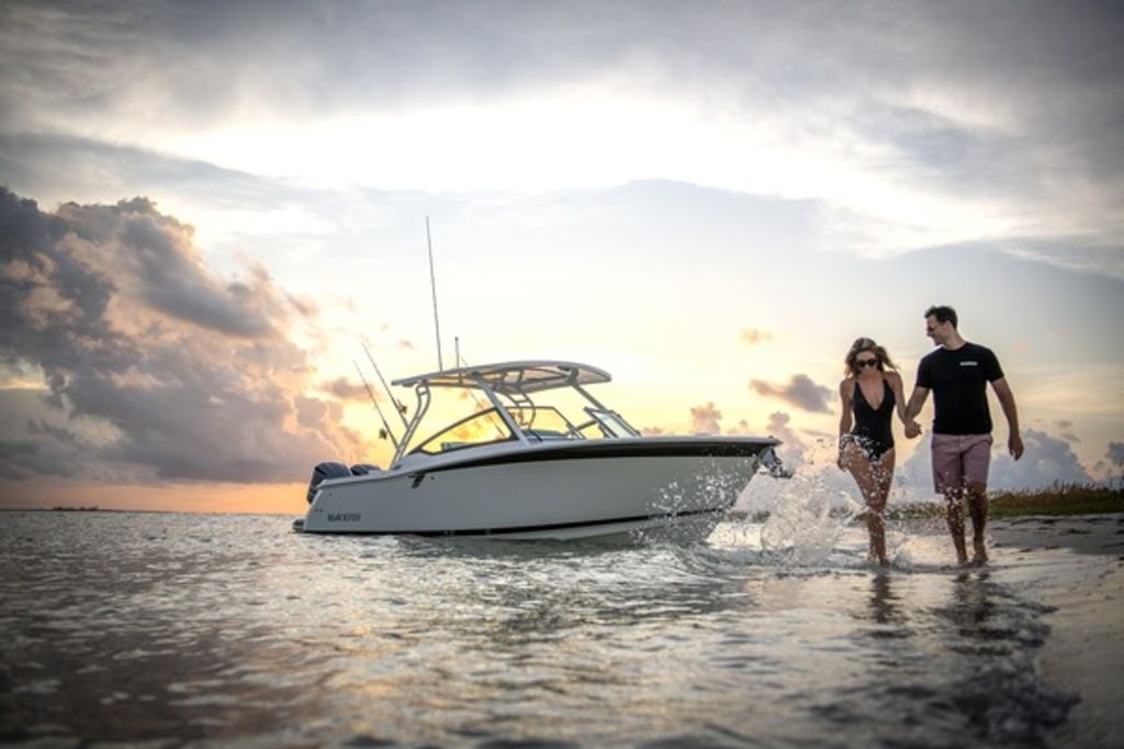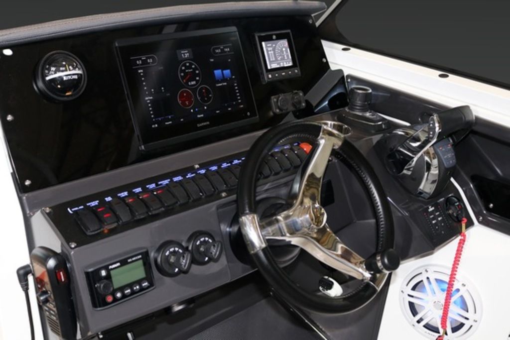 This versatile dual-console boat is the ultimate vessel for reaching your favorite fishing grounds, cruising the open waves or just gathering with friends for a day on the water. It comes loaded with all the necessary features and amenities for the serious fisherman such as a fiberglass hardtop, gunnel, and transom-mounted rod holders, in-floor fish boxes as well as the latest in navigation and fish-finding technology. When the day calls for some recreational boating, hit the water with a Fusion Apollo sound system with JL speakers, convertible port lounge seat with storage, and a wet bar with sink and Yeti Tundra cooler.
