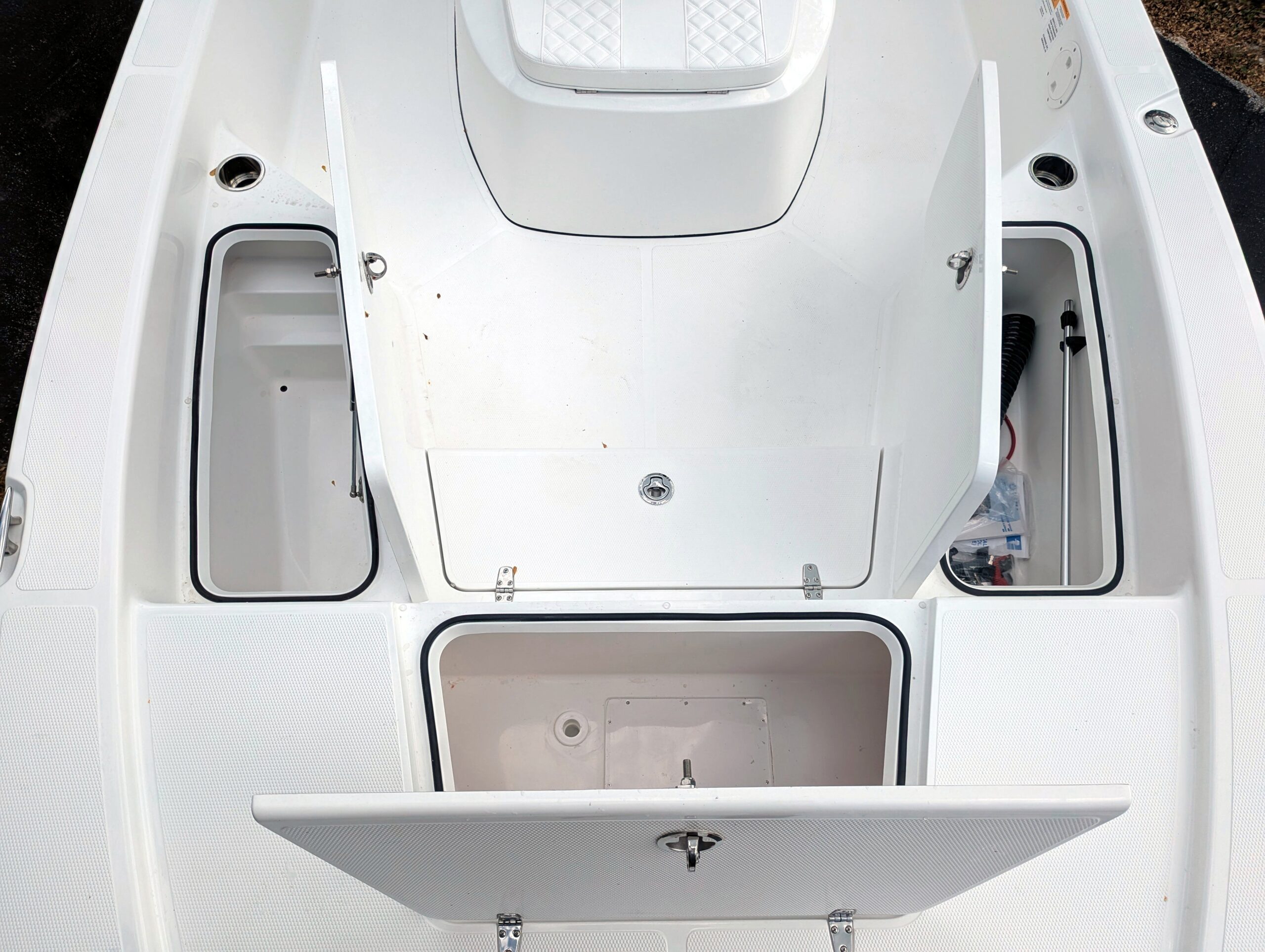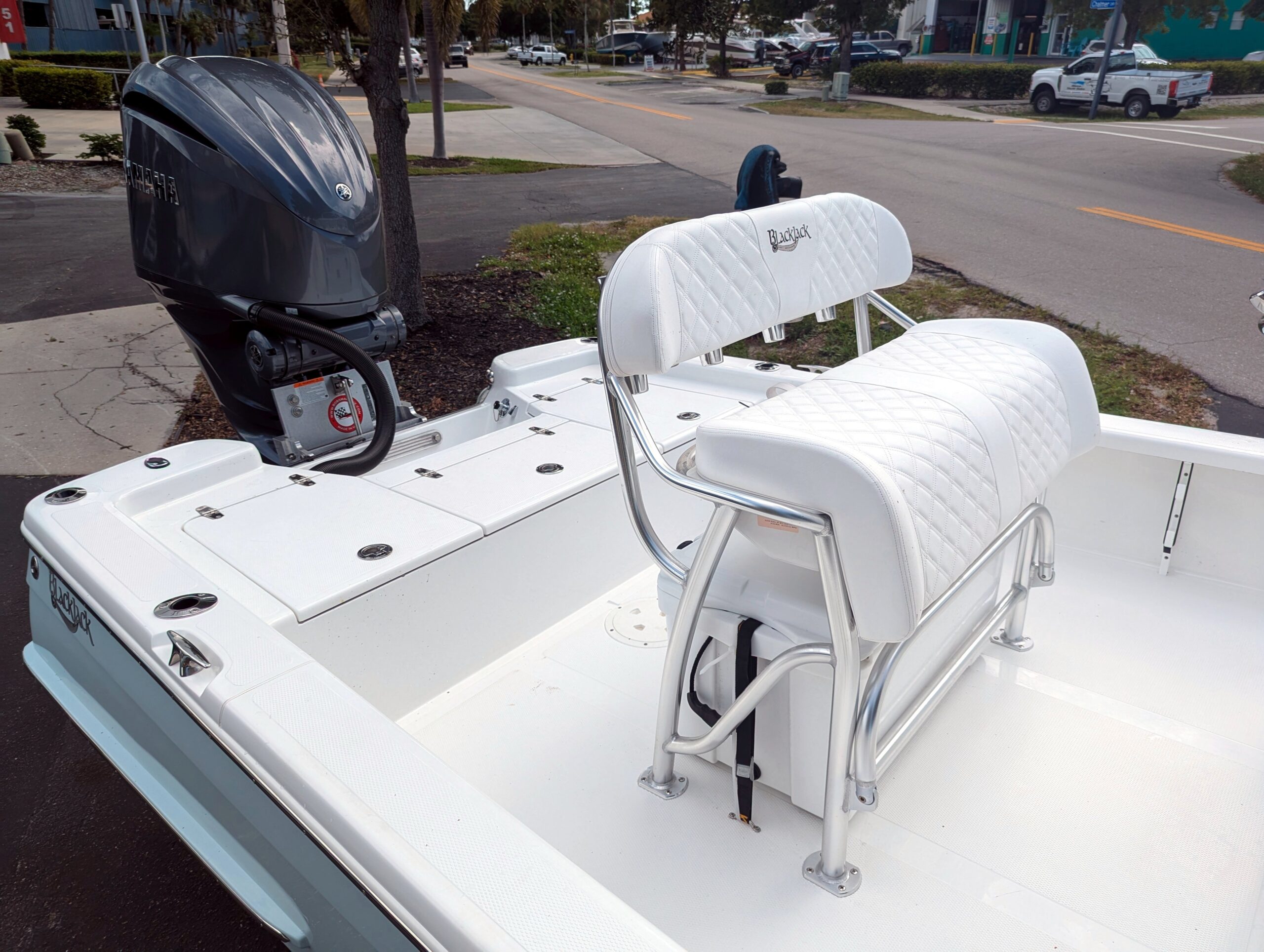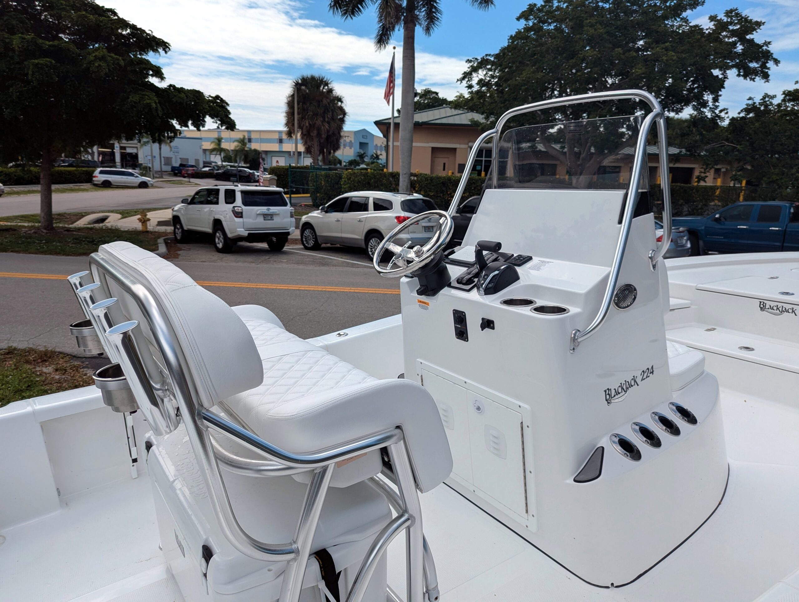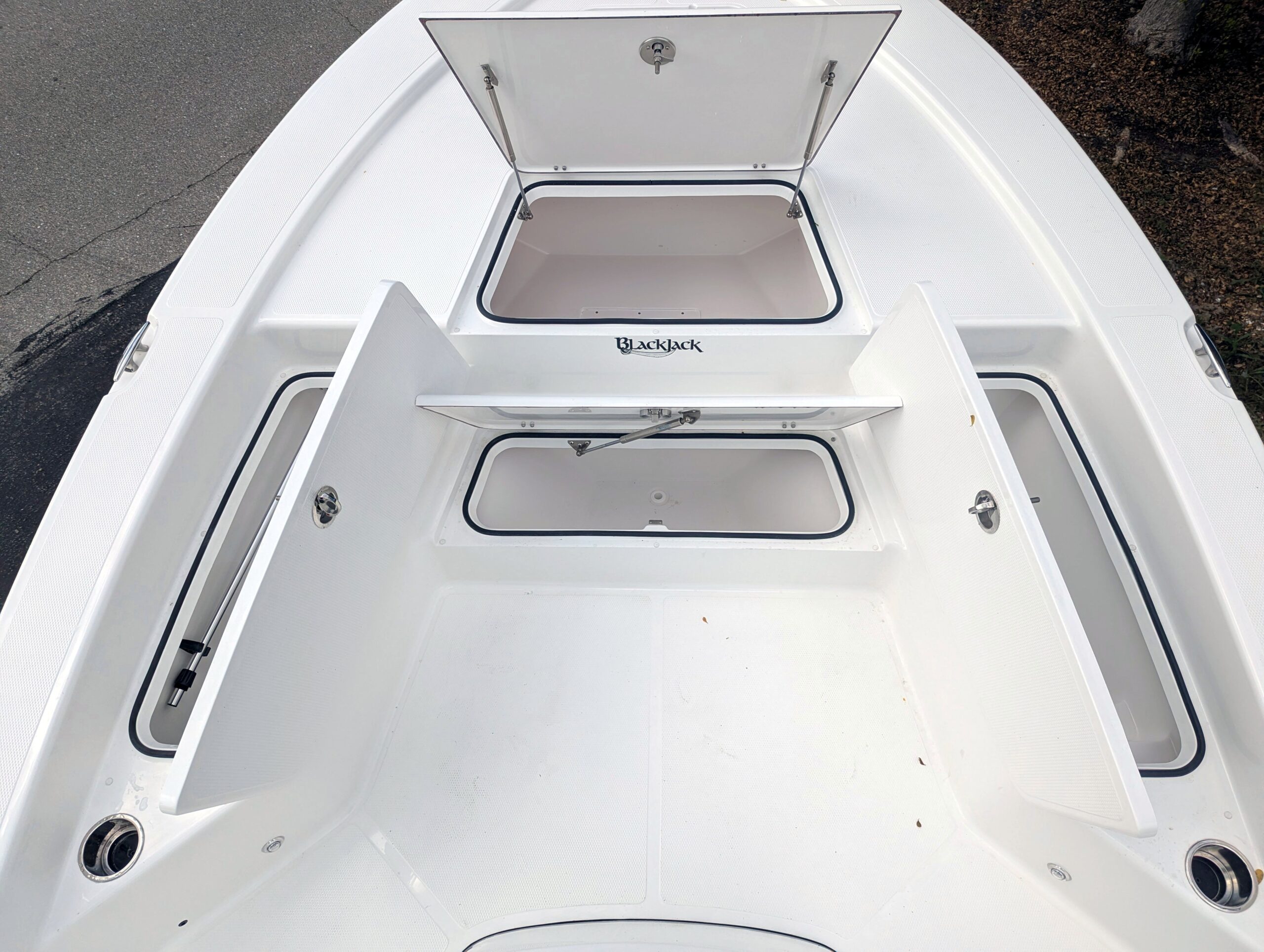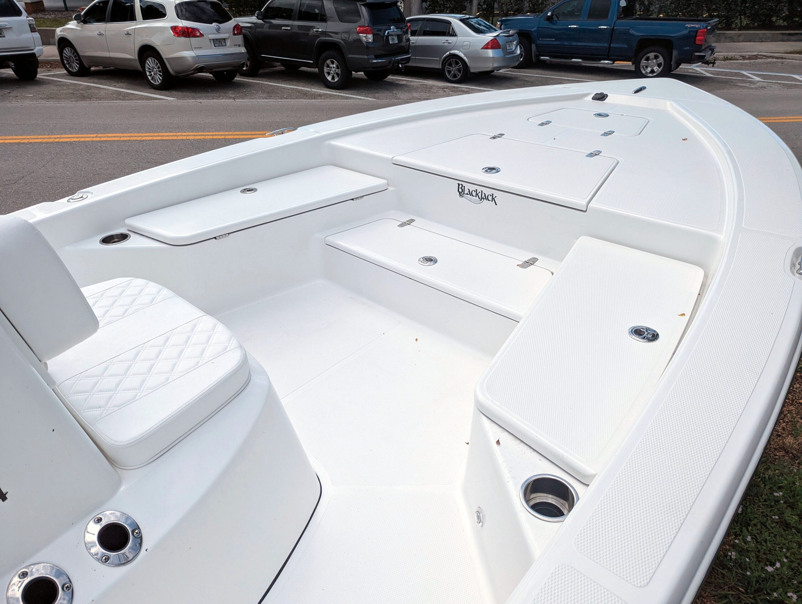 224 smooth, dry ride of the “Carolina flare” bow to its classic “tumblehome” transom, the BlackJack 224 blends tradition and technology like no other boat on the market. Her hand-laid hull and deck are heavy-duty but lightweight. Reverse-angle, spray-reduction chines deflect the water in heavy chop.