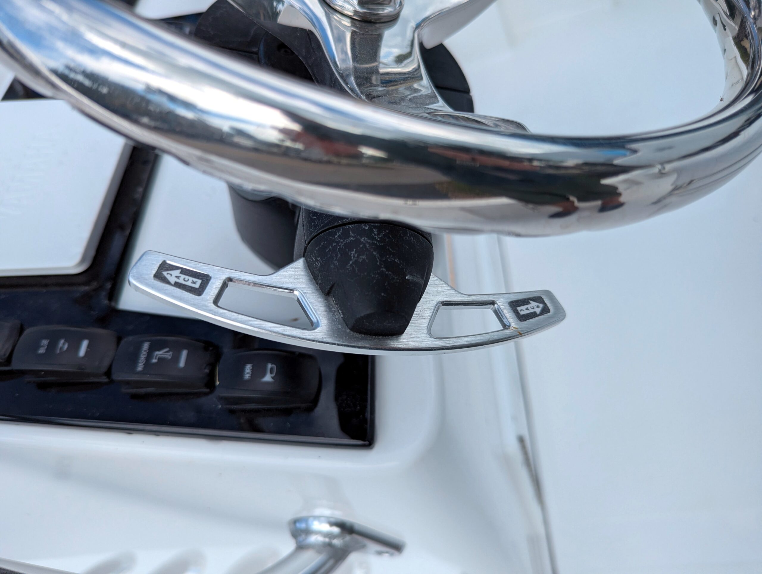 - Hydraulic tilt steering with cast stainless steel wheel with steering knob