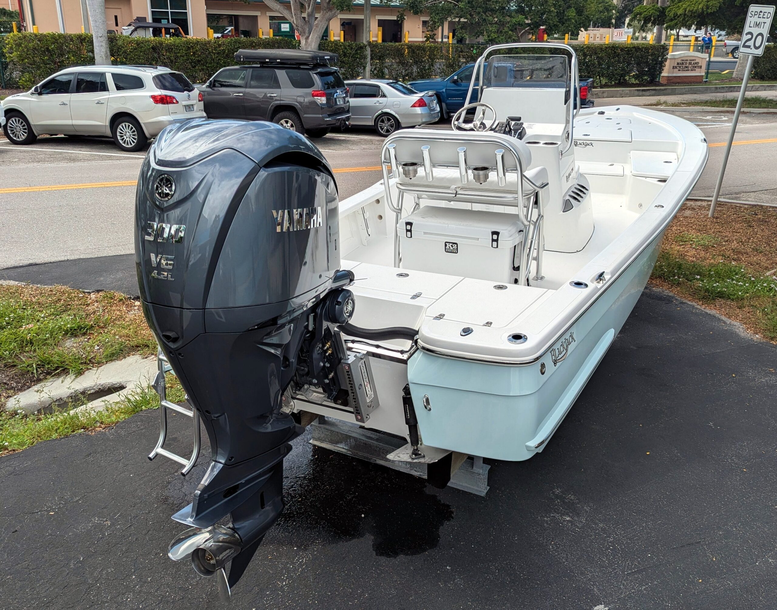 HULL: Ice Blue CONSOLE: HK UHD WHITE, HULL SIDES: Ice Blue CUSHION: White Voyage 2x2 HULL BOTTOM: WHITE INT CAP: WHITE, DECAL: Black