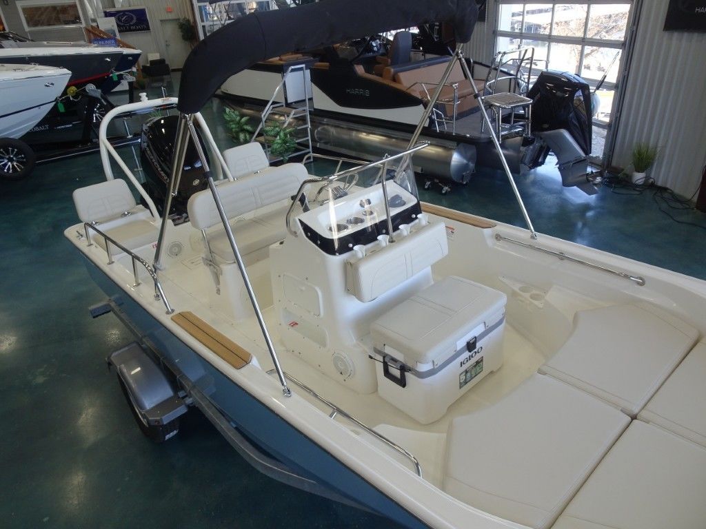 The classic, unsinkable 170 Montauk boat is a multi-purpose 17-foot inshore center console boat that can do anything. It’s clean, timeless style, open layout, and easy-to-own utilitarian design make it ideal for fishing, cruising the beach, or just relaxing with family on the weekend. Integrated Simrad® technology at the helm, a 25-gal. fuel tank, and a large forward fish box that doubles as storage gives you everything you need to enjoy the day no matter how you choose to spend it.