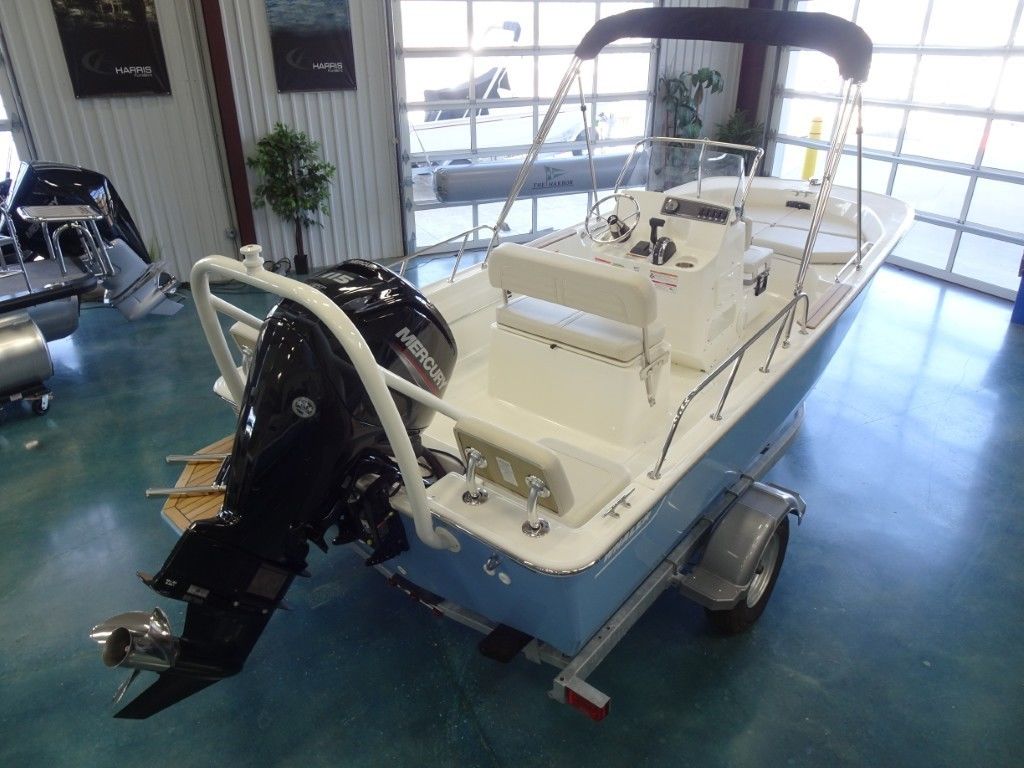 This is a new 2026 Boston Whaler 170 Montauk in Abaco Blue with White graphics, powered by a Mercury 115hp 4-Stroke, and comes with a matching aluminum trailer. It also has the following options: