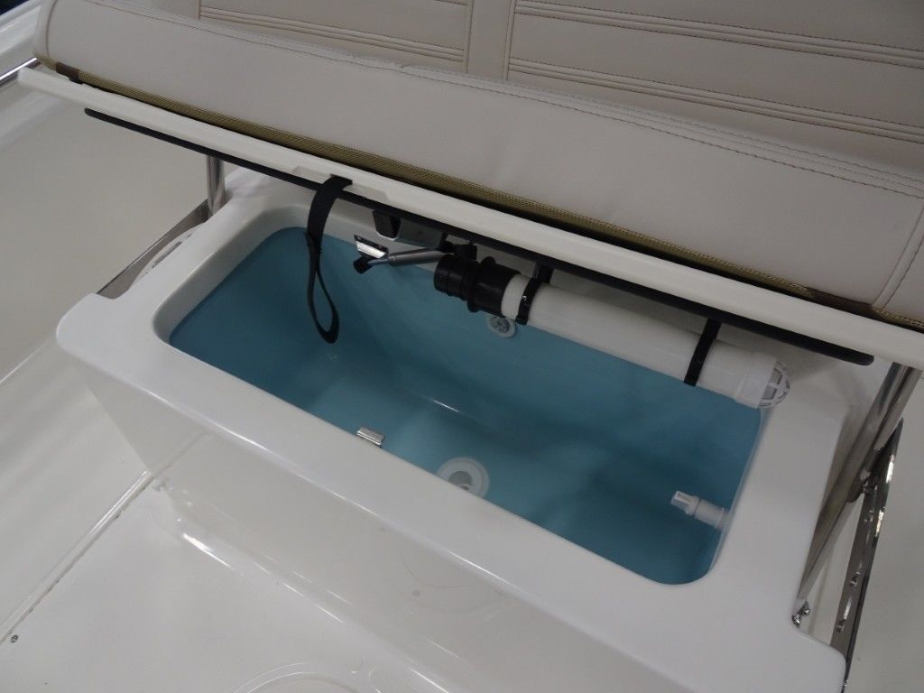 - Forward fishbox / storage with overboard drain