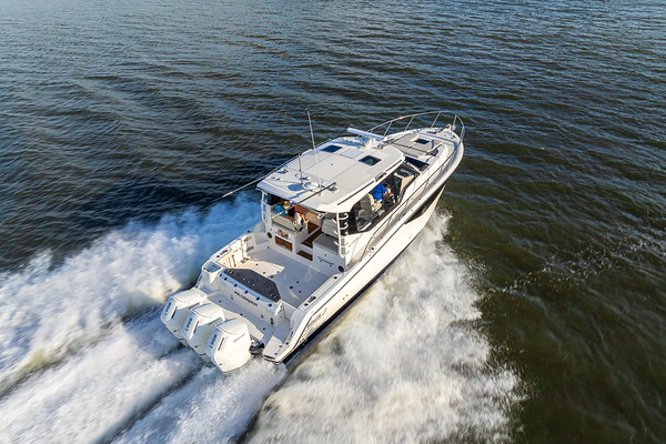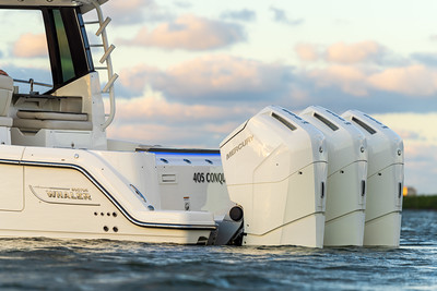 405 ConquestWhat can be said about the 405 Conquest? It’s been called “the SUV of the sea”. It’s a formidable offshore angler. It’s an entertainer with amenities beyond compare. Its luxurious cabin surpasses all expectations. It’s powered by up to 1,800 horses. This 41-foot dual-console cabin cruiser boat absolutely does not compromise when it comes to performance, comfort, and fishability. Enjoy long-distance cruises and overnight stays, chase gamefish far offshore, or host an impromptu gathering—with the 405 Conquest, you never have to choose between gracious comfort and exceptional capability..405 CONQUEST FEATURESCabin features private master stateroom plus midberth accommodations for three, an enclosed head with separate shower, a convenient galley, and moreFull-beam single-piece windshield with optional full-side glass for unobstructed visibility and a closer sense of connection with the waterQuad 300-hp Mercury Verado® engines with Joystick Piloting come standard with optional 400 or 600-hp selections that provide impressive power and controlHighly customizable transom prep area with multiple fishing and entertaining optionsUnique portside companion lounge with hidden table converts to multiple positionsLuxury touches throughout include a rain shower, innerspring mattresses, Corian countertops and premium finishesAvailable with Seakeeper gyro-stabilizing system