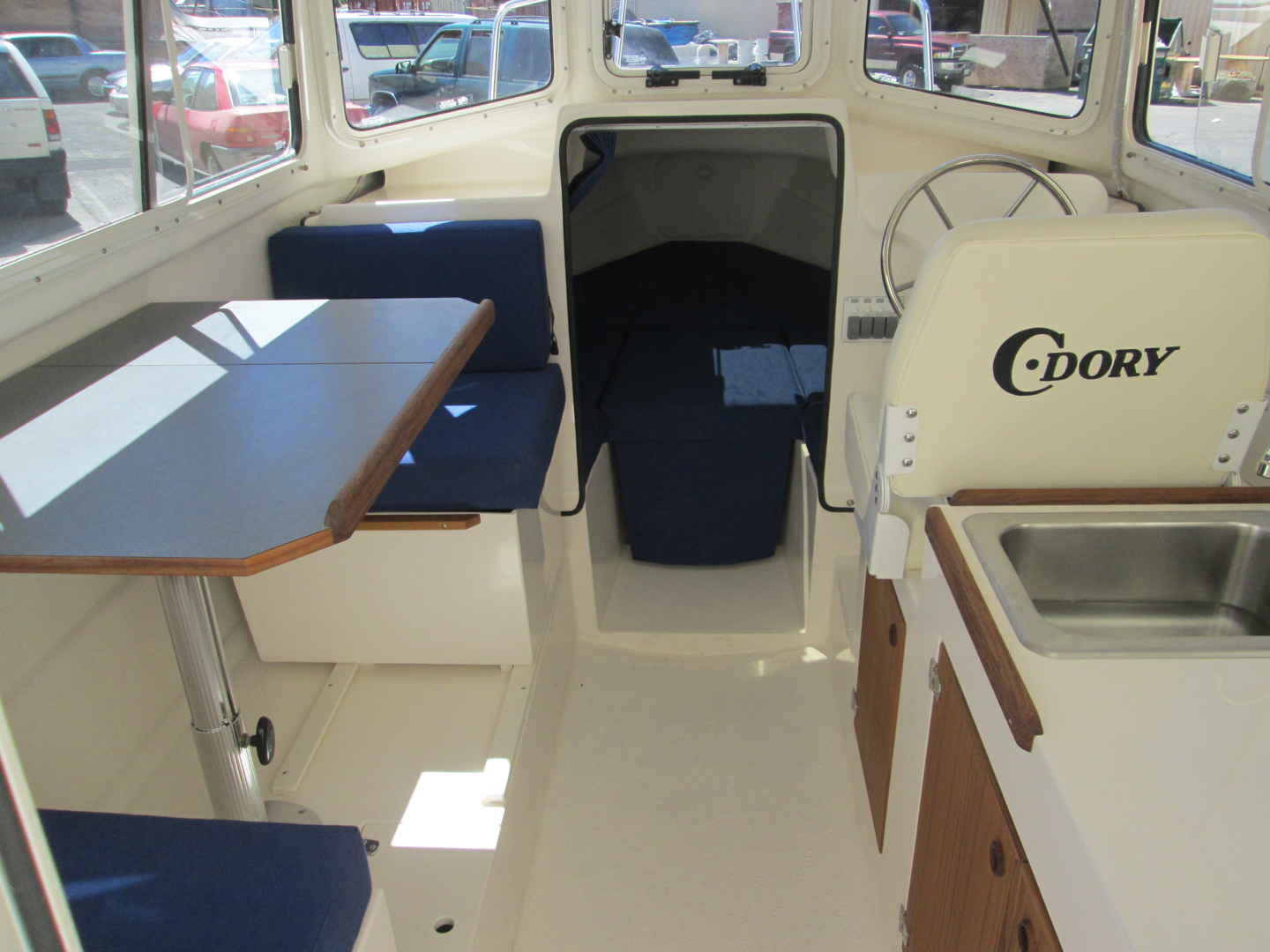 The most successful C-Dory model, the 22’ Cruiser, was first introduced in January 1987. It has enjoyed a steady production run. Many refinements based on customer input rather than on fashion trends, have been incorporated over the years. Materials used in the construction of the boat have been constantly upgraded, ensuring that the model keeps pace with the technology available today. A practical boat, the C-Dory 22’ is designed and built to be seaworthy, easily maintained and affordable to operate. Although a full-size cabin cruiser, it is relatively light and well balanced for easy towing and invites the owner to explore distant waters. Average towing weight is about 4390 lbs boat, motor, trailer, & fuel.• Average towing weight is about 4390 lbs. (boat, motor, trailer and fuel)• The cockpit and cabin fit up to 4 people comfortably• Includes sleeping area and pilot’s station• Dinette located along port side of cabin converts into 6’2” berth• Pilot station and galley located on starboard side includes:• Stainless steel sink• 18 gallon water supply with electronic on demand pump• Forward section of cabin features a 6’3” “V” berth that is separated from the main cabin by a privacy curtain and includes two reading lights, portable toilet, and Lewmar aluminum frame hatch with tinted lens.• Cabinetry composed of fiberglass and teak wood trim.• Windows with aluminum frames that are powder coated to match the color of the boat. Sliding side windows with screens and standard center opening window• All deck hardware is stainless steel and through bolted. Top deck is 3/4” thick• Deck hardware includes five through bolted SS cleats• The top deck’s non-skid is molded in diamond pattern and the cockpit sole is coated in a gelcoat and sand finish that is renewable. Optional two-tone non-skid availableMaster Marine Boat Center | To learn more about this listing, give us a CALL or TEXT at (360) 336-2176, email us at sales@mastermarine.com, or visit our website at mastermarine.com.