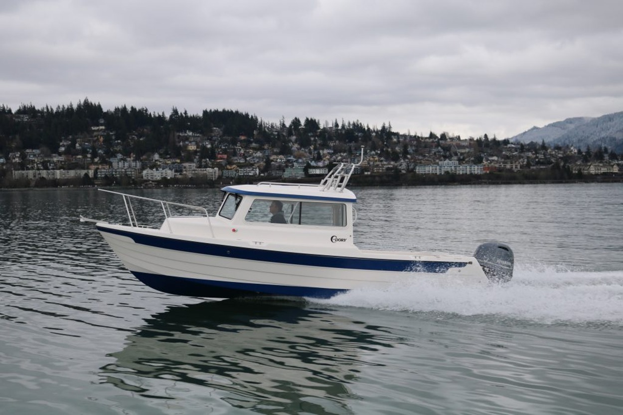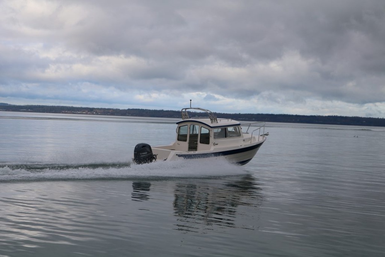 Although very similar to the classic C-Dory design, this new model features a deeper V, a little more deadrise and reverse chines to provide very smooth cruising in the open water. Maneuverability at speed is balanced and predictable, even in heavy seas. The boat holds her course with little effort. The hull’s flatness toward the stern with reverse chines greatly reduces the rolling motions, making cruising in rough water much more pleasant. And with only 8” draft and a thick bottom, she can easily be beached on sand for beach combing adventures.• Standard five year hull warranty• Average towing weight is 4945 lbs. (boat, motor, trailer and fuel)• Cockpit comfortably fits up to 4 people• Cabin comfortably fits up to 4 people• Cabin is fully lined with marine hull liner• Cabin includes sleeping area and pilots station• Cabin includes dinette located along the port side of cabin that converts into 6’4” berth• Contact us at (360) 336-2176 for a full list of features!Master Marine Boat Center | To learn more about this listing, give us a CALL or TEXT at (360) 336-2176, email us at sales@mastermarine.com, or visit our website at mastermarine.com.