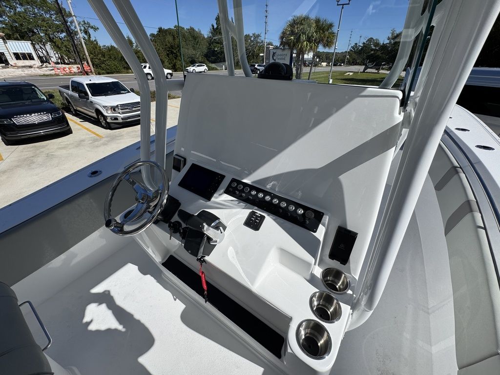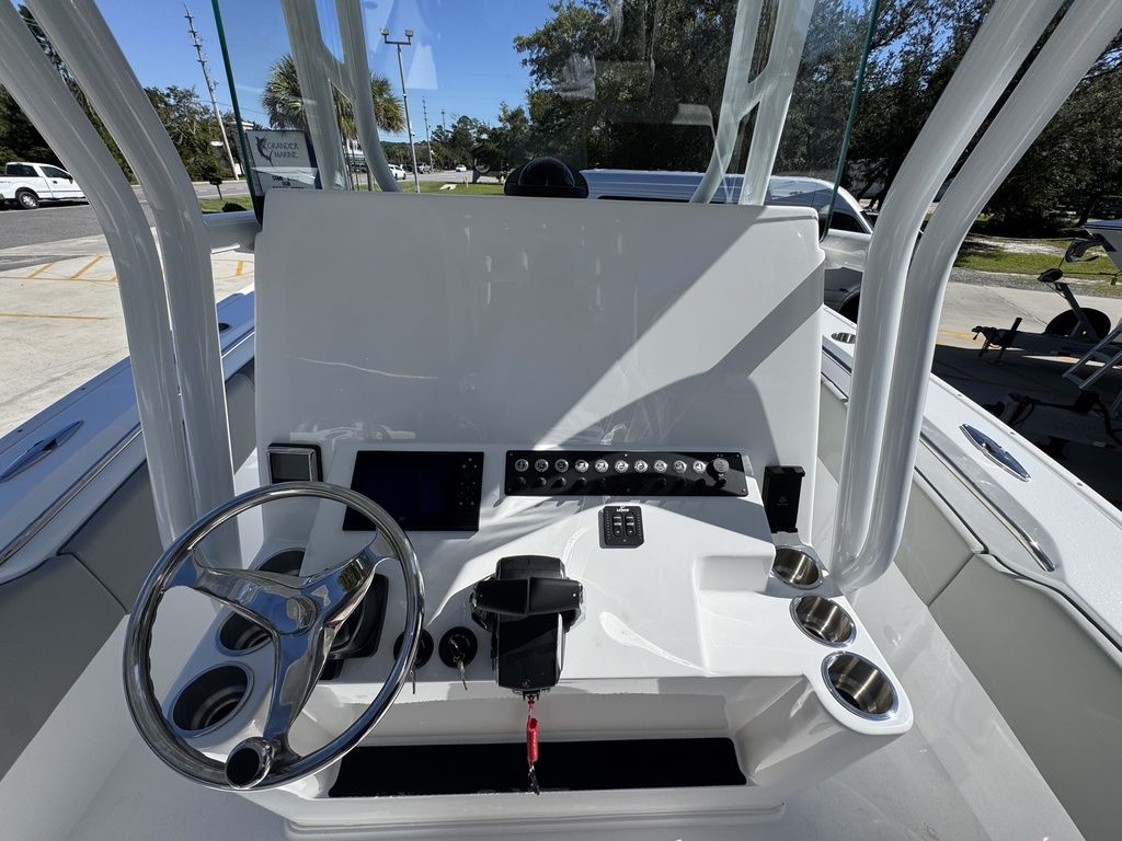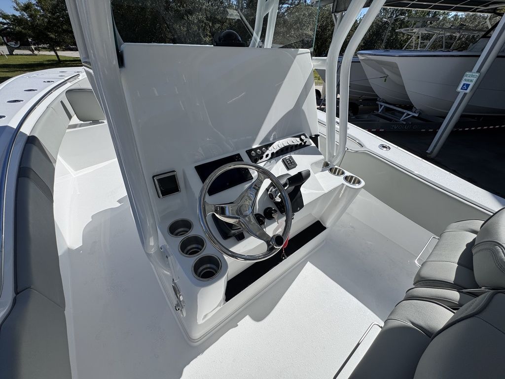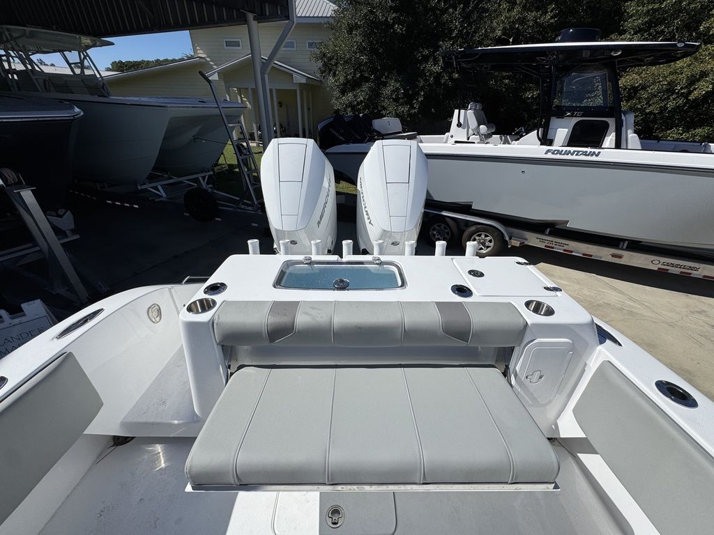 Extra EverythingGet the job done with the standard 41 rod holders, while a huge dash provides plenty of room for multiple large displays. Additional storage is discovered in the huge walk-in console. A drink cooler is offered beneath the flip up front seat that quickly transforms into a lounge seat with a flip-up footrest. A 7’ fully insulated fish box offers 700 quarts of frozen storage that is pumped overboard during cleanup.