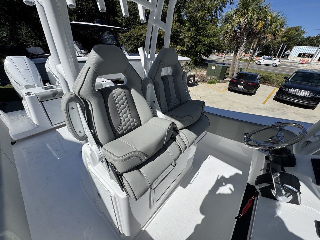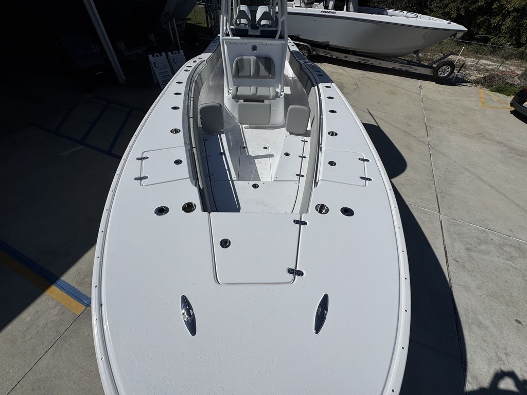 Advanced Hull DesignAt over 35’ in length our newest design delivers a ride quality and new standard in dryness that can only be achieved with today’s modern technology. An unrivaled length to beam ratio makes running 100 miles offshore a pleasure. Getting there quickly is what its built for.