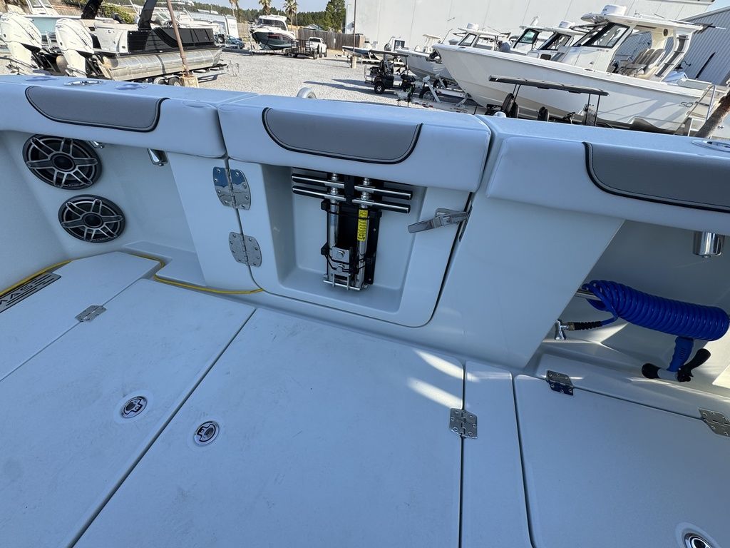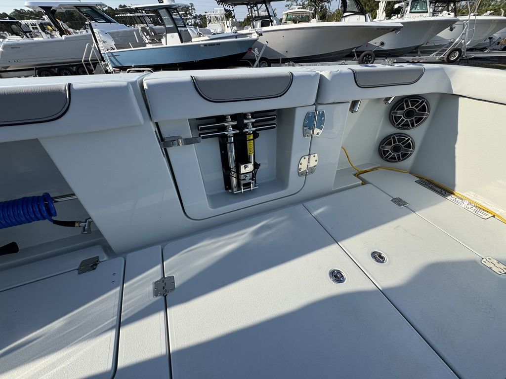 Built for serious anglers, the 44 CT features a staggering amount of storage and livewell capacity, ensuring you’re always ready to fish at your best. The transom livewells hold 60 gallons each, while the rear in-floor livewells/fish boxes provide another 60 gallons each. For longer trips or big hauls, the midship and forward in-floor fishboxes each hold 190 gallons (760 qts), giving you unmatched space for your catch. At the center console, the coffin box offers 210 gallons (840 qts) of insulated storage, and there’s even a 14-gallon cooler/pitch well and a 136-quart mezzanine cooler to keep drinks, bait, or additional fish fresh and ready.
