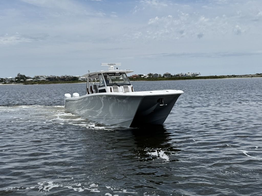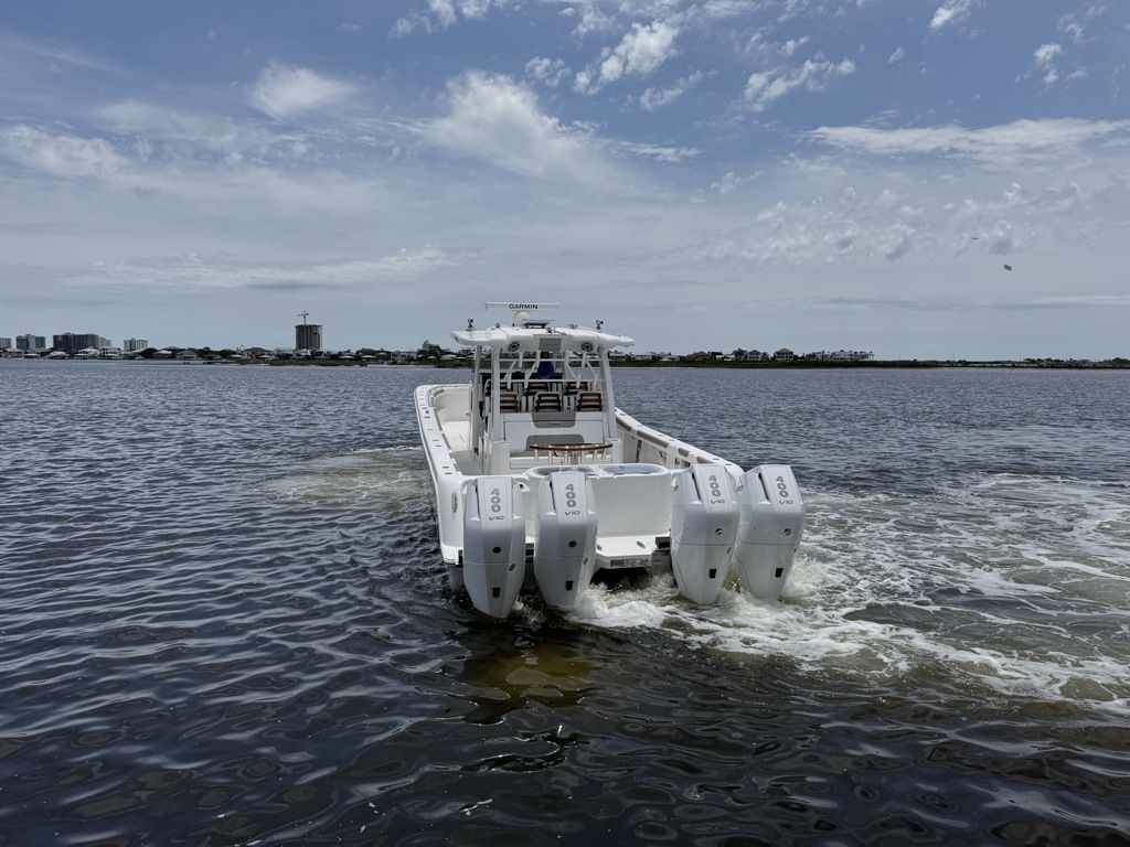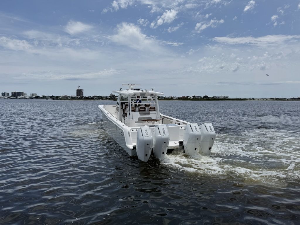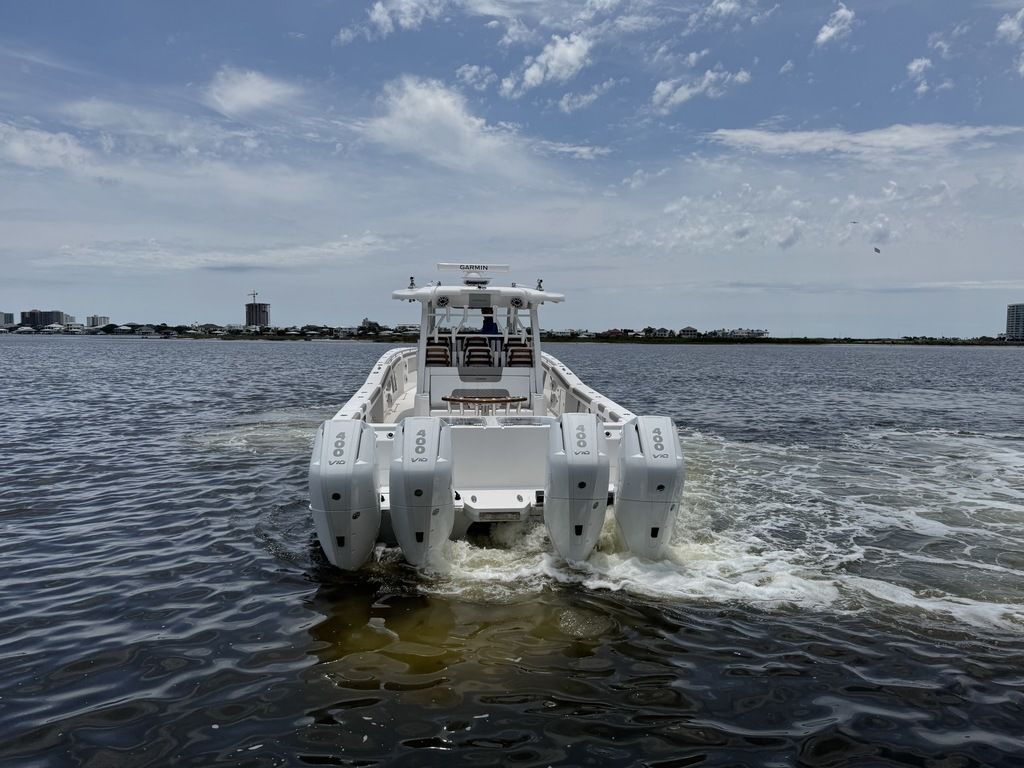 This 44-foot masterpiece is built for those who demand more from their offshore vessel. The 44 CT is engineered to exceed every expectation. Designed with semi-asymmetric double-stepped hulls and an impressive 12-foot beam, this boat combines stability, efficiency, and superior handling to dominate rough waters with ease. Add to that the 16.5°/21.8° deadrise, and you have a vessel that can cut through anything Mother Nature throws its way while keeping you dry and comfortable.