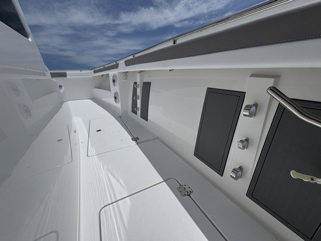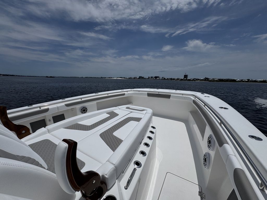 Built for serious anglers, the 44 CT features a staggering amount of storage and livewell capacity, ensuring you’re always ready to fish at your best. The transom livewells hold 60 gallons each, while the rear in-floor livewells/fish boxes provide another 60 gallons each. For longer trips or big hauls, the midship and forward in-floor fishboxes each hold 190 gallons (760 qts), giving you unmatched space for your catch. At the center console, the coffin box offers 210 gallons (840 qts) of insulated storage, and there’s even a 14-gallon cooler/pitch well and a 136-quart mezzanine cooler to keep drinks, bait, or additional fish fresh and ready.