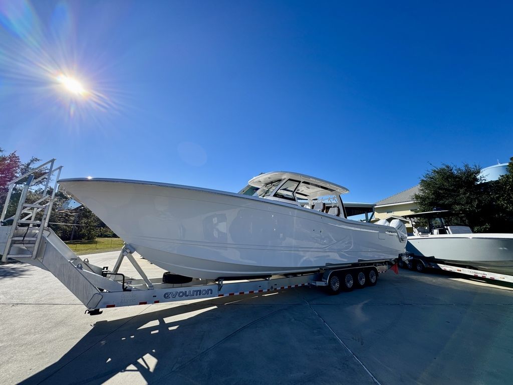 This 44-foot masterpiece is built for those who demand more from their offshore vessel. The 44 CT is engineered to exceed every expectation. Designed with semi-asymmetric double-stepped hulls and an impressive 12-foot beam, this boat combines stability, efficiency, and superior handling to dominate rough waters with ease. Add to that the 16.5°/21.8° deadrise, and you have a vessel that can cut through anything Mother Nature throws its way while keeping you dry and comfortable.
