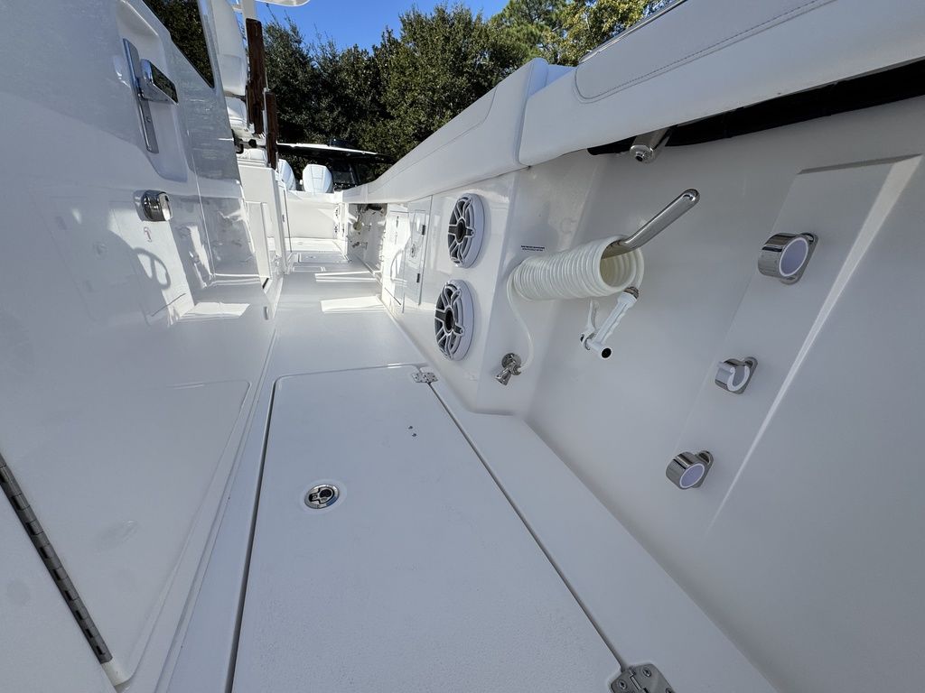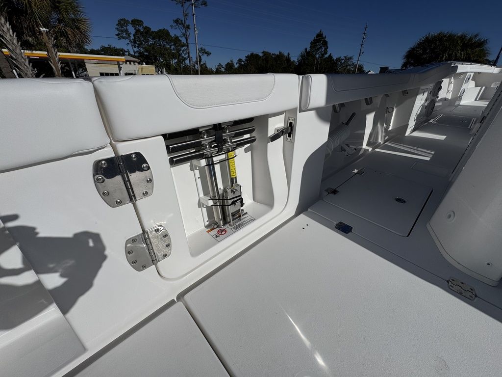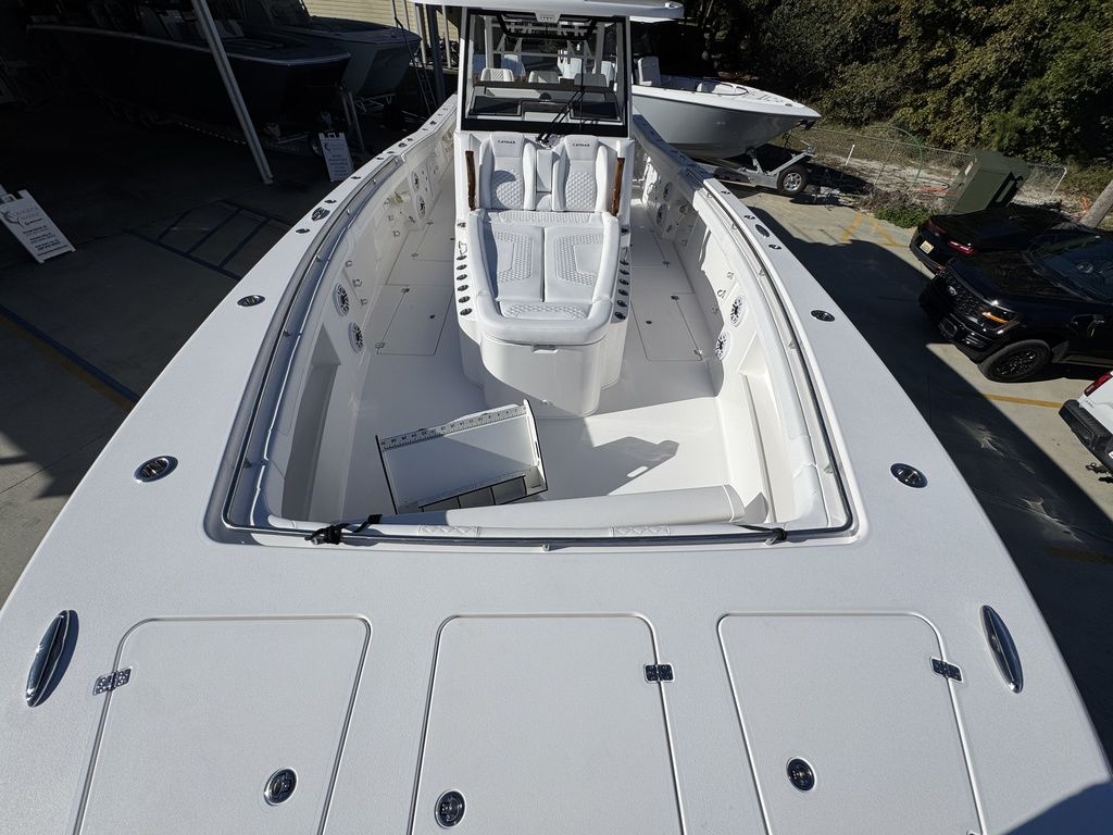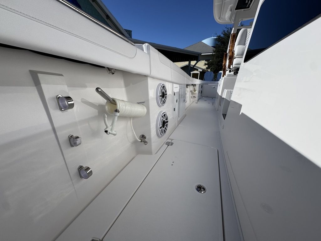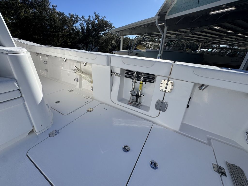 Built for serious anglers, the 44 CT features a staggering amount of storage and livewell capacity, ensuring you’re always ready to fish at your best. The transom livewells hold 60 gallons each, while the rear in-floor livewells/fish boxes provide another 60 gallons each. For longer trips or big hauls, the midship and forward in-floor fishboxes each hold 190 gallons (760 qts), giving you unmatched space for your catch. At the center console, the coffin box offers 210 gallons (840 qts) of insulated storage, and there’s even a 14-gallon cooler/pitch well and a 136-quart mezzanine cooler to keep drinks, bait, or additional fish fresh and ready.