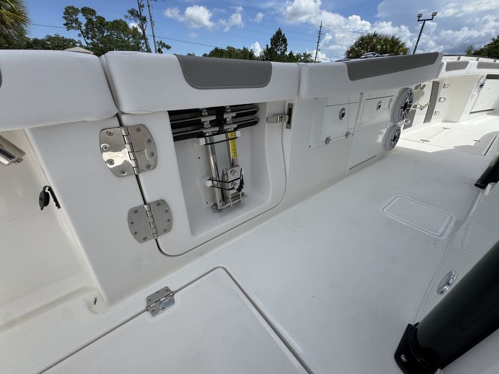 The 30 CT doesn’t just meet expectations—it shatters them. With its Ride Dynamic Ventilated Stepped (RDVS) running surface, this boat is ready to tackle whatever the sea throws its way. Imagine fishing in waters you’d never dare to venture into with any other center console. The 30 CT comes with two midship insulated storage compartments, offering a whopping 1,040 qt of storage connected to Whale® Gulper Grouper macerator pumps. Choose how you want to allocate space—be it for storage or fishboxes. A standard 70-gallon transom livewell is just the beginning; you can customize further to fit your unique angling