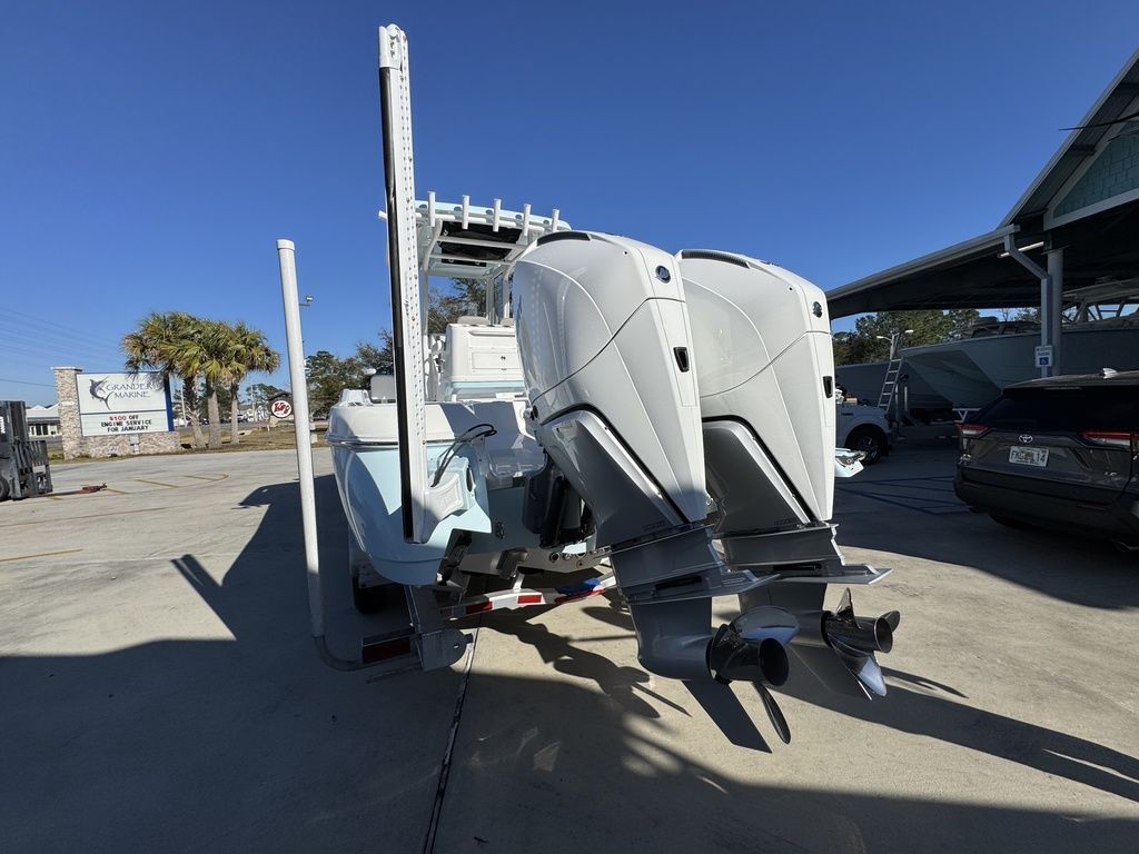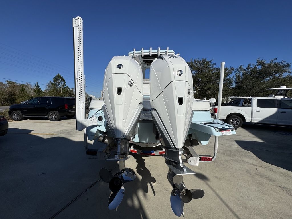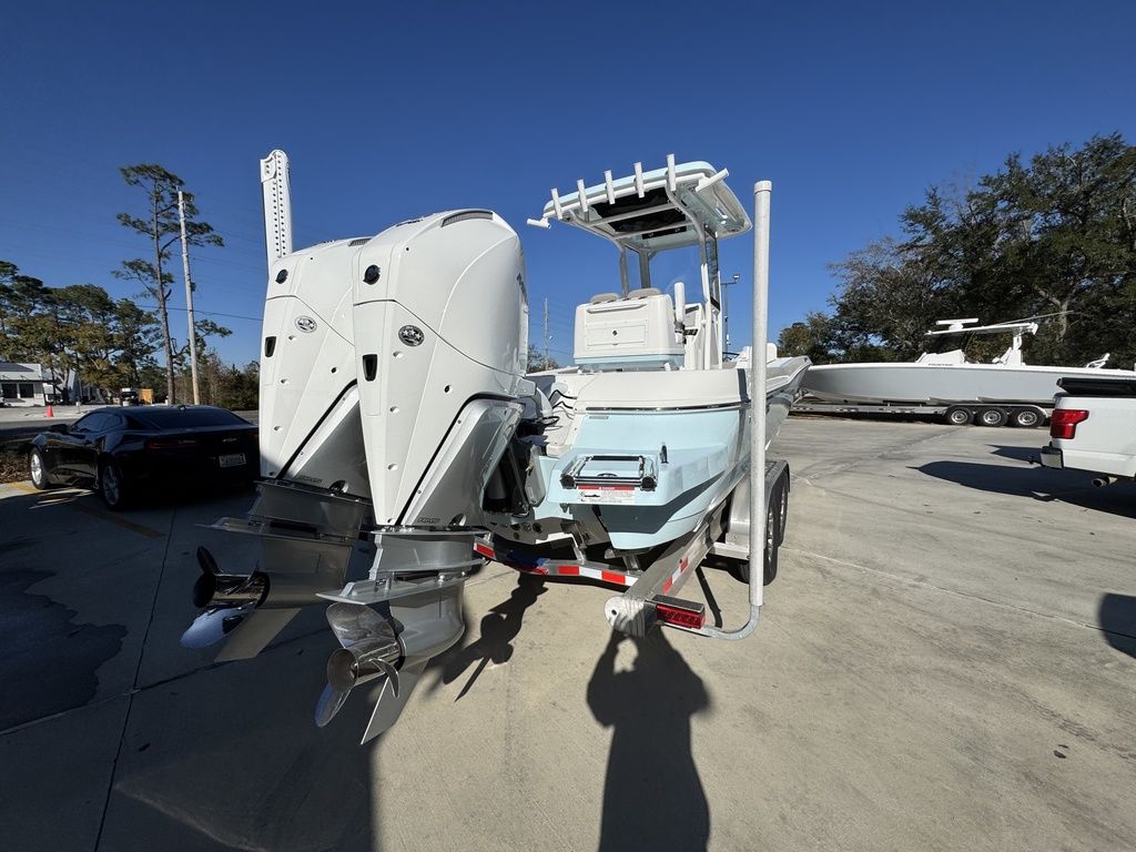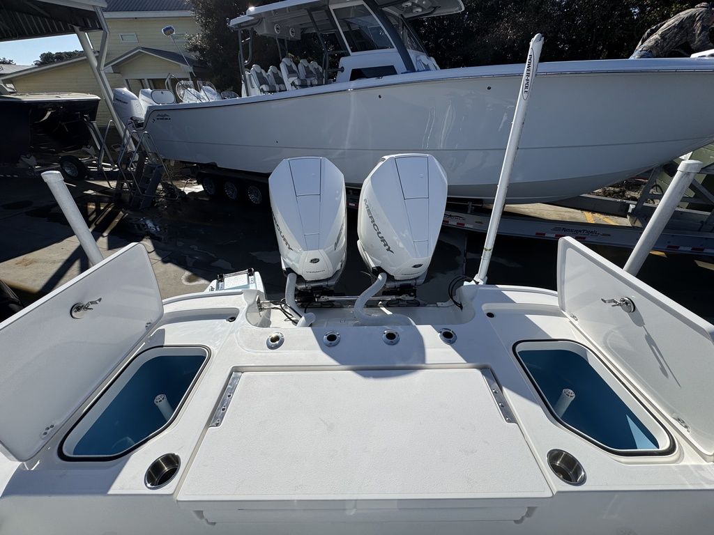 The caymas 281 hb can be rigged with yamaha, mercury, or suzuki outboards up to 600 horsepower.