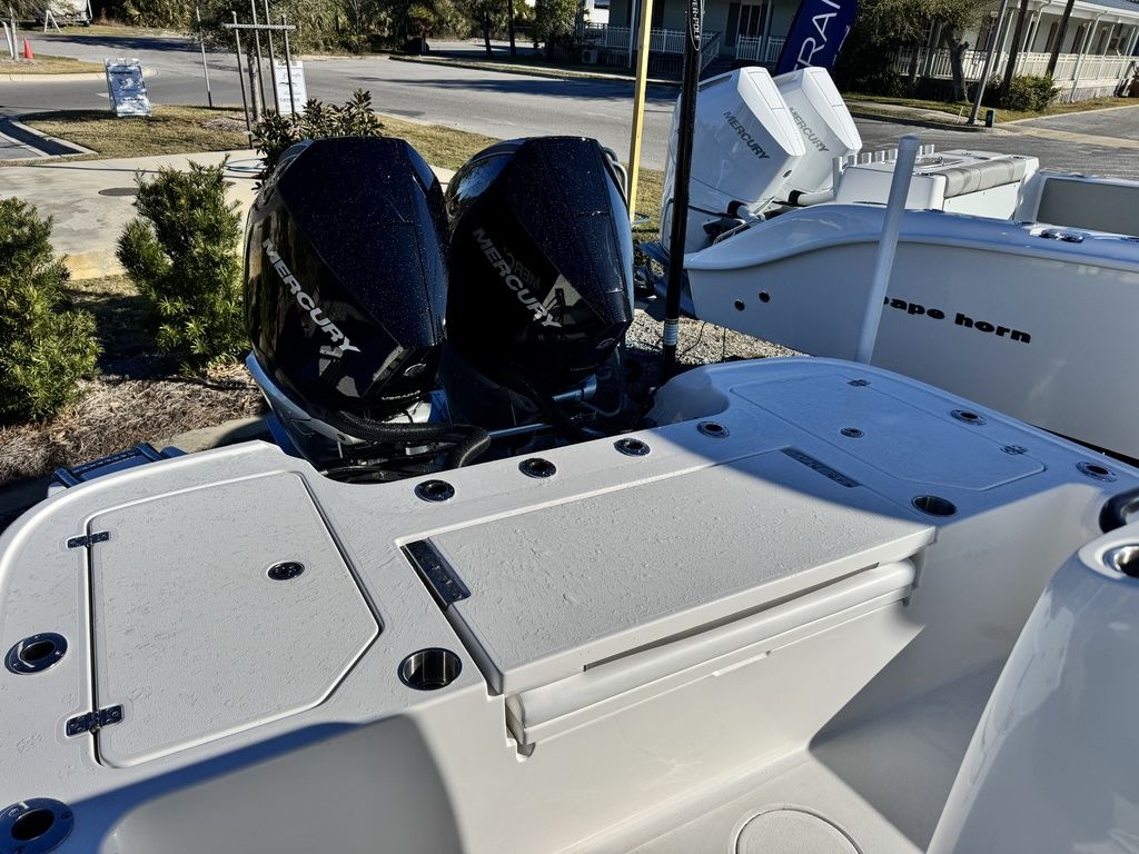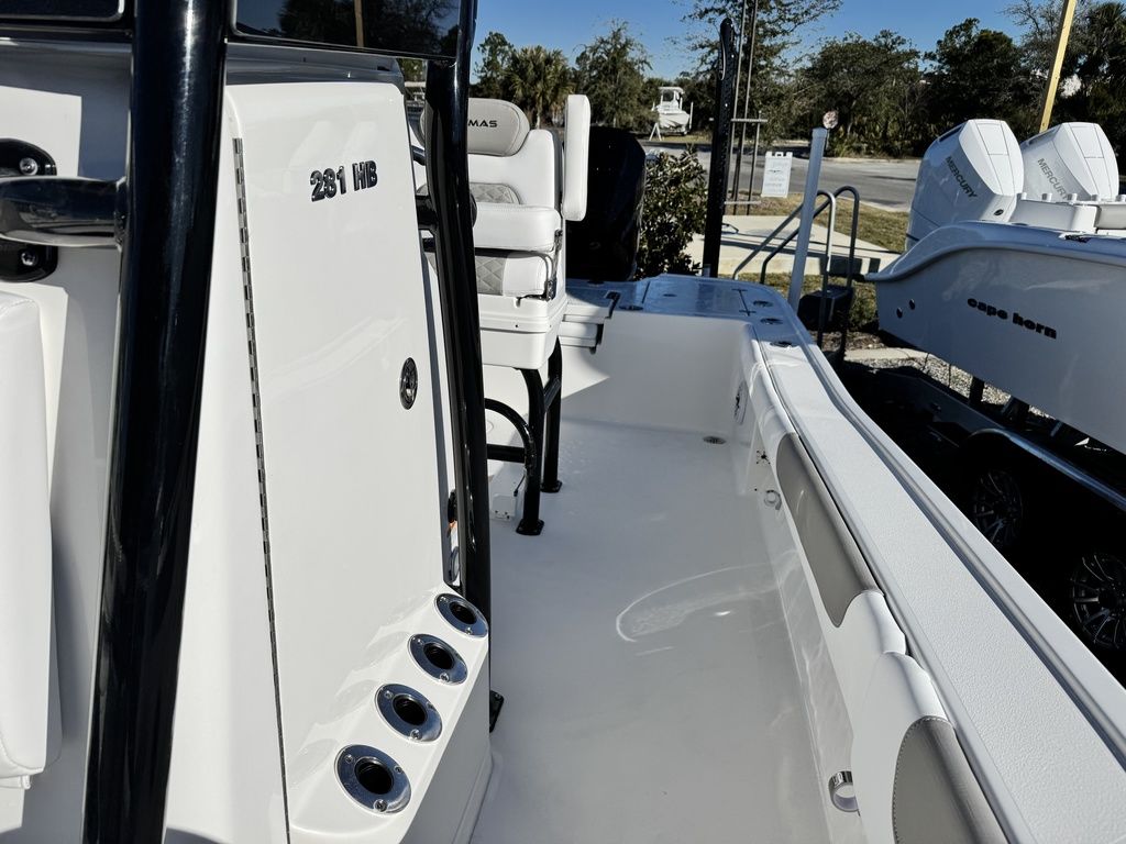 The caymas 281 hb can be rigged with yamaha, mercury, or suzuki outboards up to 600 horsepower.