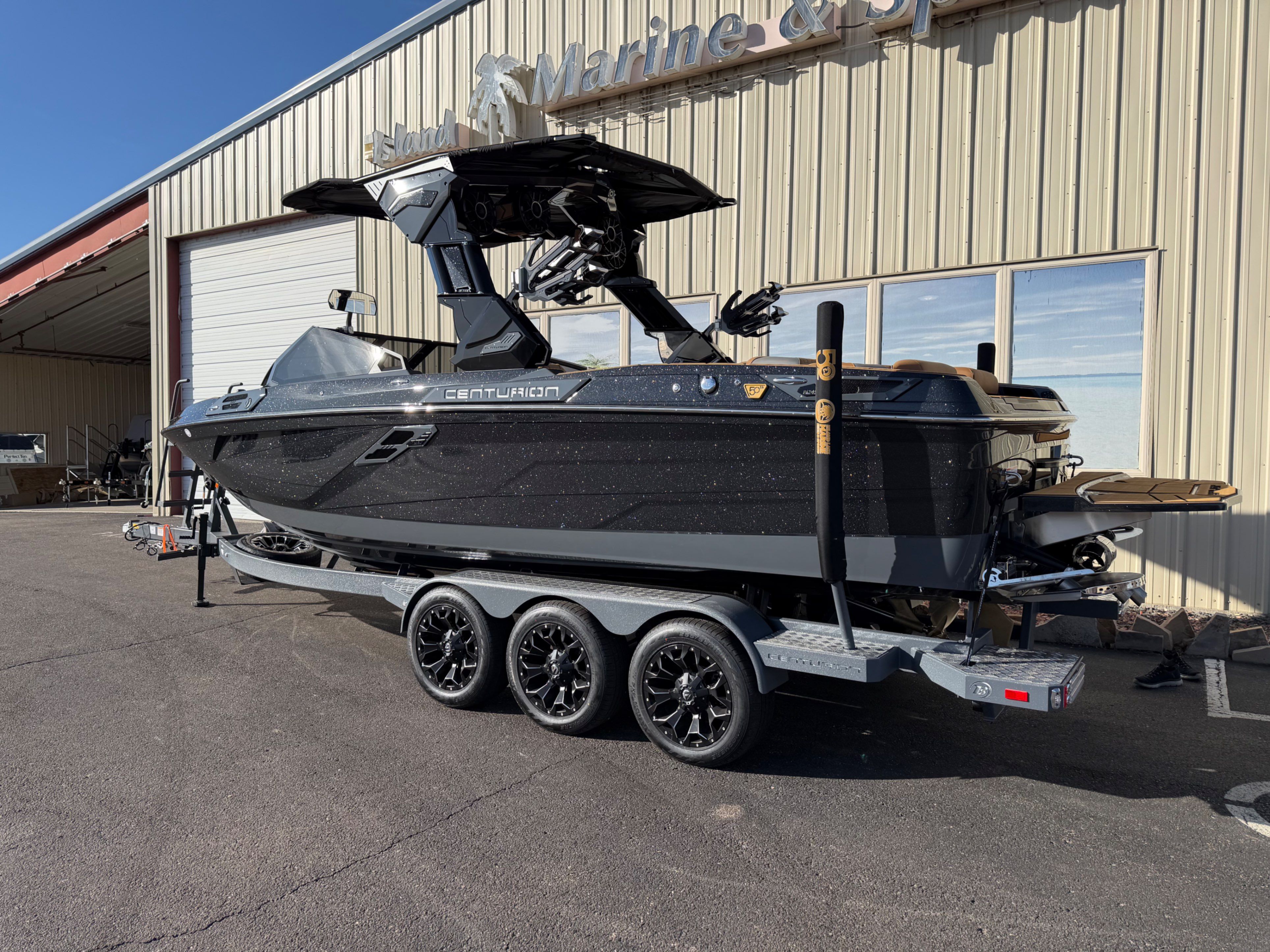 About the 2026 Centurion RI245 The 2026 Centurion RI245 is a true marvel of modern boat design, combining innovative features with performance-driven engineering. Measuring 24.5 feet in length, this towboat promises an exceptional ride quality, optimum wakeboarding, wakesurfing, and skiing facilities, and a comfortable and sophisticated experience on water. Comfort and Luxury With an impressive passenger capacity and abundant storage, the RI245 is perfect for long trips on the water. The interior is outfitted with high-grade, marine-resistant materials that offer longevity and sophistication. The seating is comfortable with options for storage, and the boat also benefits from tactical touch control, ensuring a seamless and user-friendly experience. Innovative Design More than the comfort and performance, the 2026 Centurion RI245 stands out in terms of innovation. Its opti-v hull design reduces drag, improves fuel efficiency, and generates incredible surf waves. The boat is also equipped with a quick surf system, allowing users to switch surf sides in less than three seconds. Safety Features Built and designed thinking about the safety of its passengers, the Centurion RI245 is outfitted with reliable safety features. With its sturdy construction, well-placed handrails, and the addition of a rearview camera, this boat promises safe and carefree excursions.