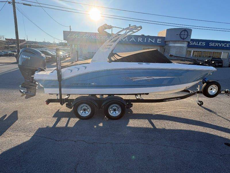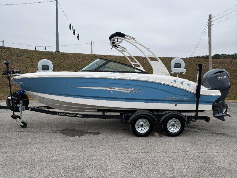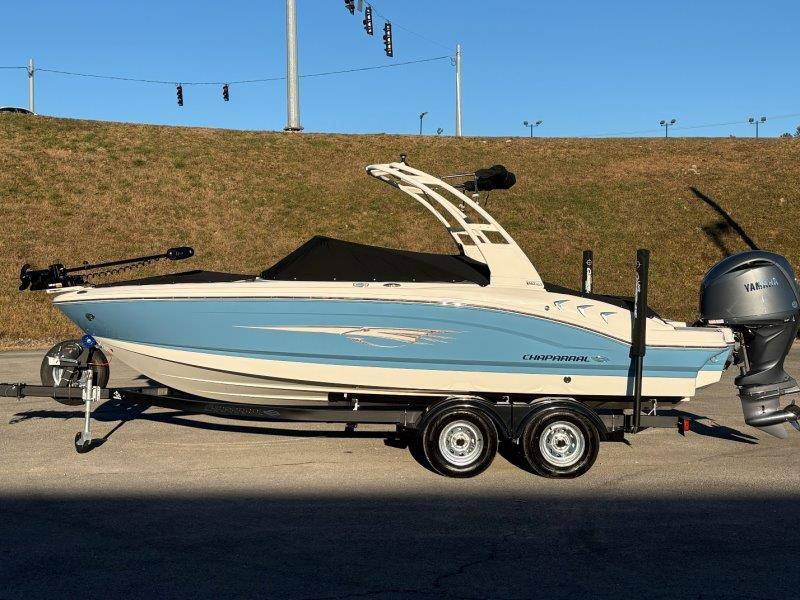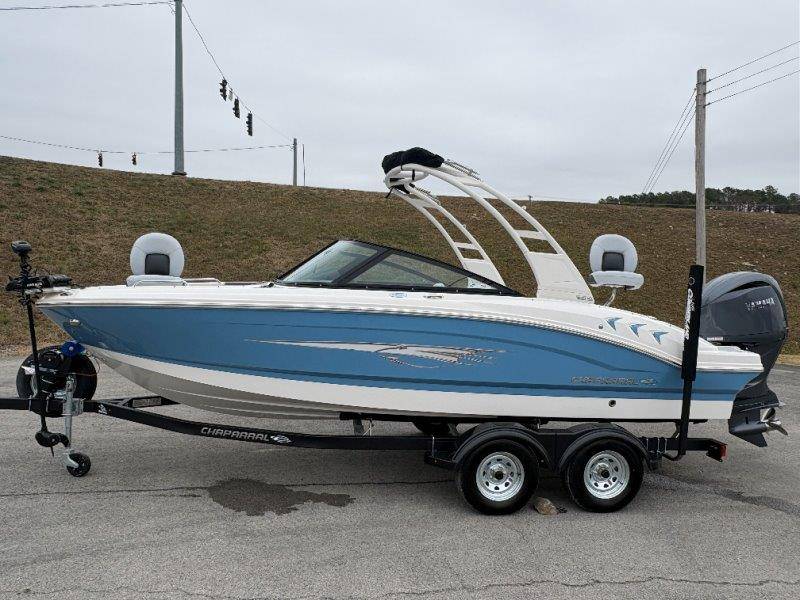2026 Chaparral 21 SSi OB Ski & Fish UNIQUE KEY FEATURES • 5-Year Premium Level Limited Component Warranty • Battery On/Off Switch • Built-In Livewell (70 Quart) Under Rear Bench Seat • Deep Freeboard • Full Compliment of Color Selections - Standard • Large Storage Compartment Under Aft Casting Deck/Sunlounge • Limited Lifetime Hull Warranty • NMMA Certified • Powder-Coated Tandem Axle Trailer with Swing-Away Tongue • Pre-wire for Trolling Motor • Premium Envision Marine Silicone Upholstery • Premium Gelcoat and Hydropel Resin • Removable Fishing Seats • SeaStar Hydraulic Tilt Steering Helm • SIMRAD NSX9 Touch Chartplotter/Fishfinder with Engine Data and Audio Controls • Stainless Steel Rubrail and Grab Handles • Storage Underneath Port and Starboard Dash • Ultra Comfort Premium Bucket Seats with Flip-up Bolsters • Water Resistant Circuit Breakers Hull Side Gelcoat - Atlas Blue Hull Bottom - White Ski and Fish Chrome Graphic Cockpit Interior - Lunar Standard Canvas - Black MTX Folding Arch Tower - White Cockpit and Bow Cover Deluxe Package Includes Digital Depth Gauge, Bimini Top with Boot or Tower Top Canvas, Ultra Comfort Pedestal Seat with Flip Up Bolster for Helm & Passenger and Deluxe Badging Seadek Swim Platform Mat - Slate Snap-In Seadek Cockpit Flooring - Slate Clarion Transom Remote Docking Lights Triple Bank Battery Charger - 12/24V 20 Amp Minn Kota Freshwater Trolling Motor 5 Year Premium Level Limited Component Warranty Standard Trailer Spare Tire Kit - Galvanized Wheel