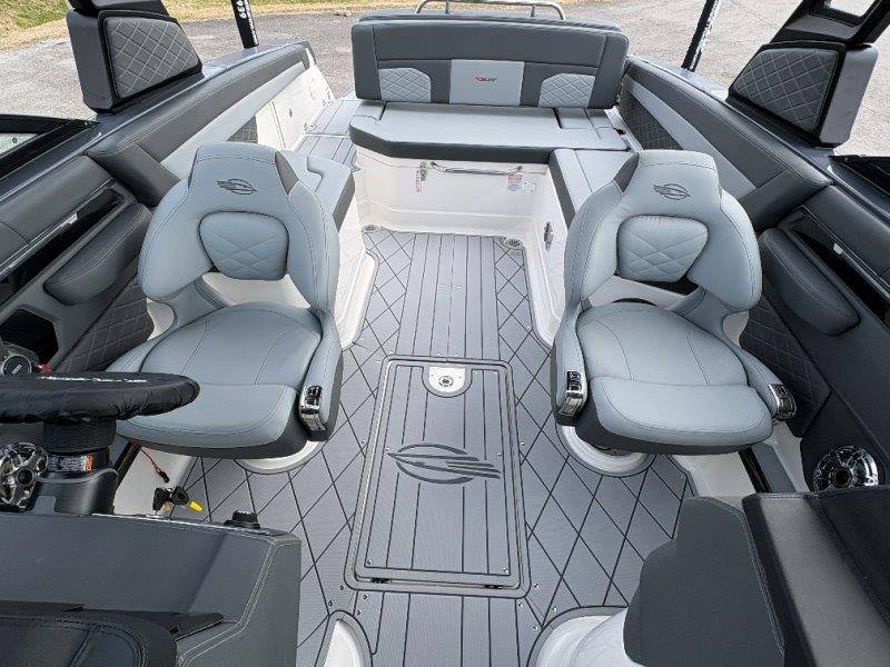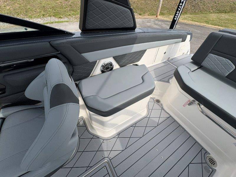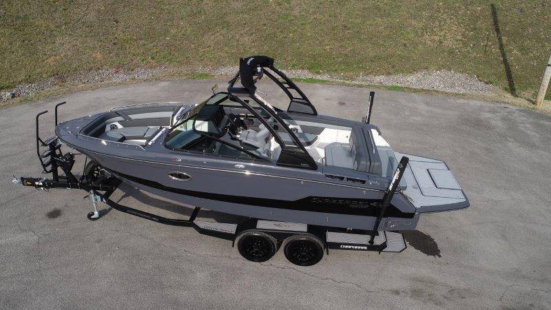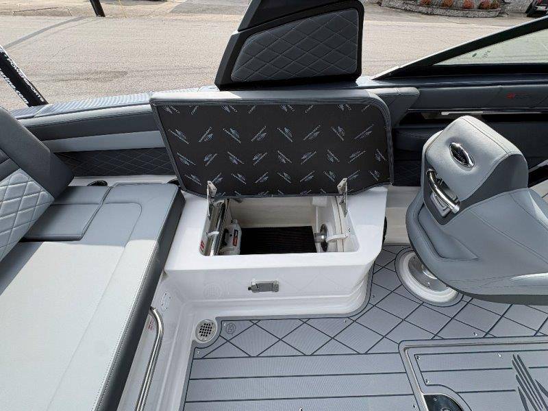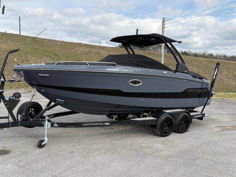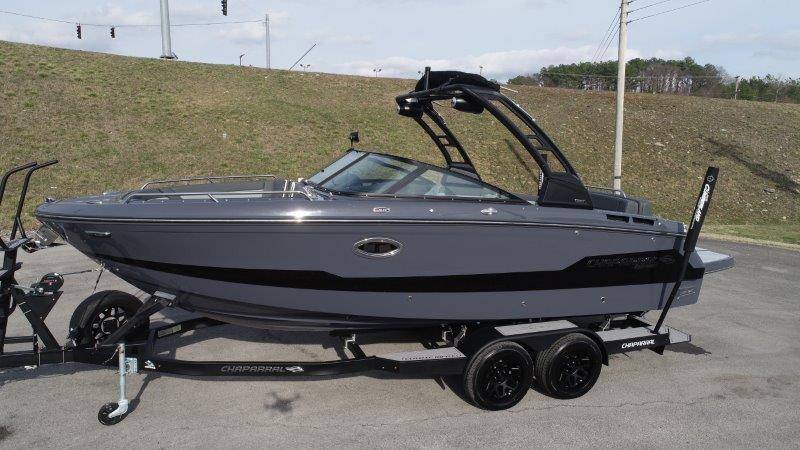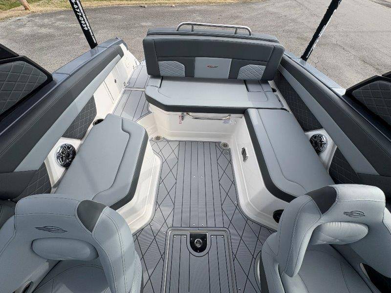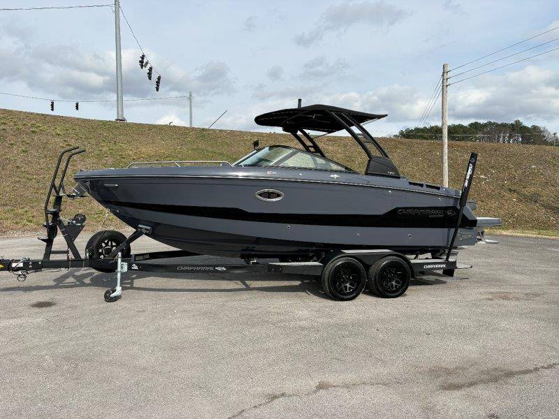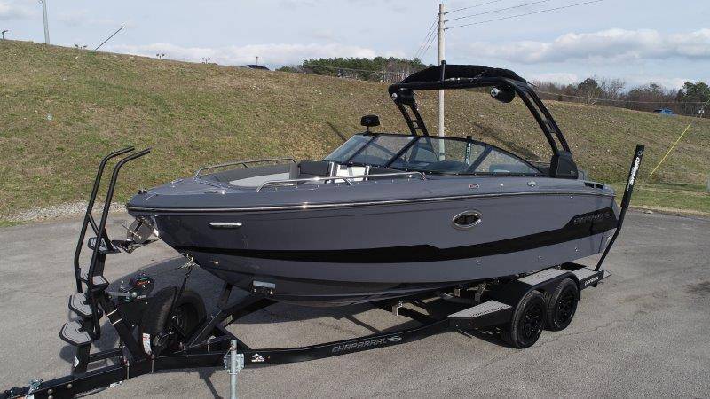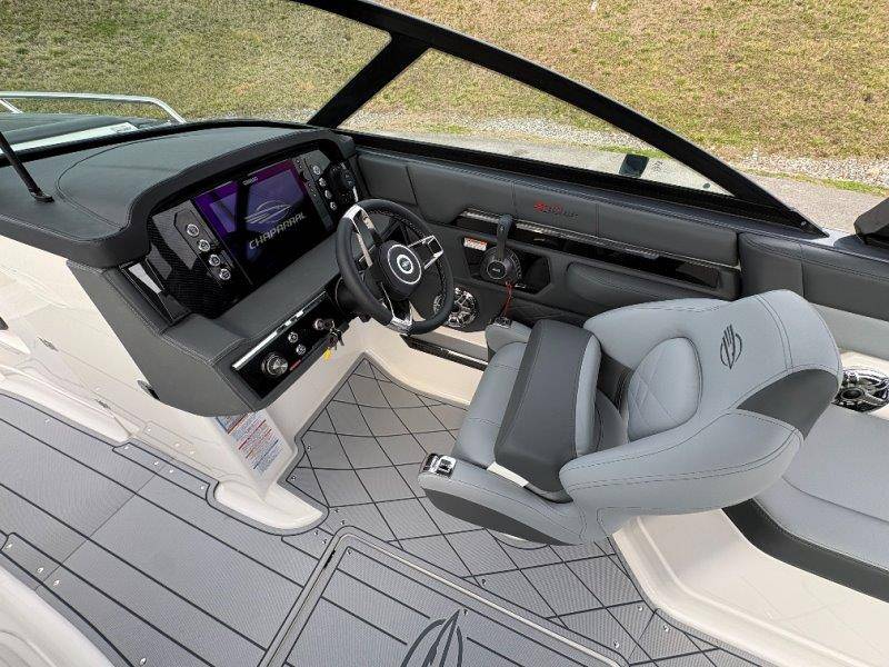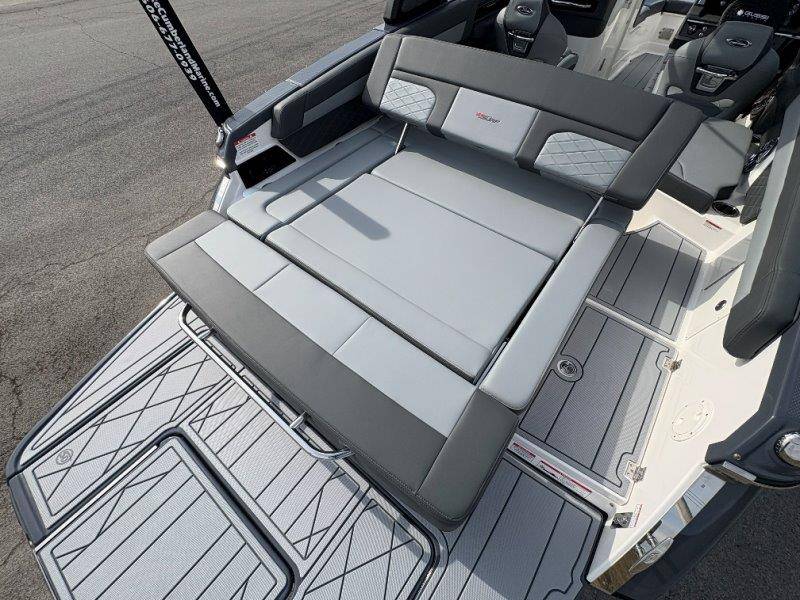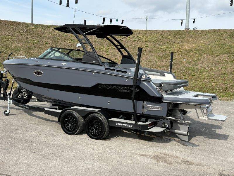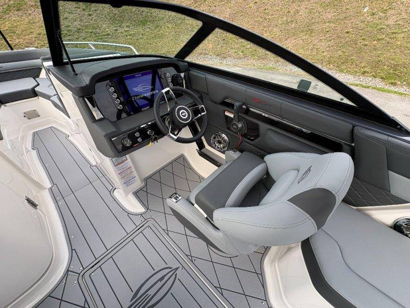 2026 Chaparral GTS 6 UNIQUE KEY FEATURES • 1080lb Capacity Ballast System • 5-Year Premium Level Limited Component Warranty • Aft Bench Seating with Reversible Backrest System converts from Double Bench to Sun Lounge • Bluetooth AM/FM Sound System with Transom Remote • Charging Stations w/ Power Plugs - Port and Starboard Helm • Dual Battery Setup With Crossover Switch • EFX II Electric Folding Arch Tower w/ Color Coordinated Canvas • Frameless Bonded Glass Walk-Through Windshield with Custom Supports • Full Fiberglass Head Compartment w/ Porta Pottie and Vanity Cabinet w/ Sink • Infinity Power Step Swim Platform • Integrated Swim Platform • Large U-Shaped Aft Seating Area with Storage Underneath • Limited Lifetime Hull Warranty • Malibu Surf Gate (TM) • NMMA Certified • Power Assisted Steering with Tilt Wheel • Premium Envision Marine Silicone Upholstery • Premium Gelcoat and Hydropel Resin • Premium Helm Seats with Flip-Up Bolster Cushions • Simrad NSS4 Multifunction Display with Surf Controls • Wake Surfing Hull Hull Side Gelcoat - Stealth Gray Hull Bottom Gelcoat - Stealth Gray Deck Gelcoat White - Stealth Gray Painted Metallic Apex Hull Graphic - Black with Black XL Hull Designator and Surf Badge Cockpit Interior - Shadow Standard Canvas - Black EFX II Electric Folding Arch Tower - Black Cockpit and Bow Cover JL Audio Sound System Upgrade Tower Speakers (2) Connectivity Package Electric Head Cockpit Table with Dedicated Storage Snap-In Seadek Cockpit Flooring - Slate Ski Tow - Black Powder Coated Ski Mirror Dual Color LED Underwater Lights (2 each) Windlass with Stainless Steel Anchor, 125' Rope and 15' Chain NMMA Grow Boating Fund 5 Year Premium Level Limited Component Warranty Lenco Pro Trim Tab System Trailer - Black Frame with Black Fenders, Aluminum Wheels, Bow Ladder and Bow V-Stop
