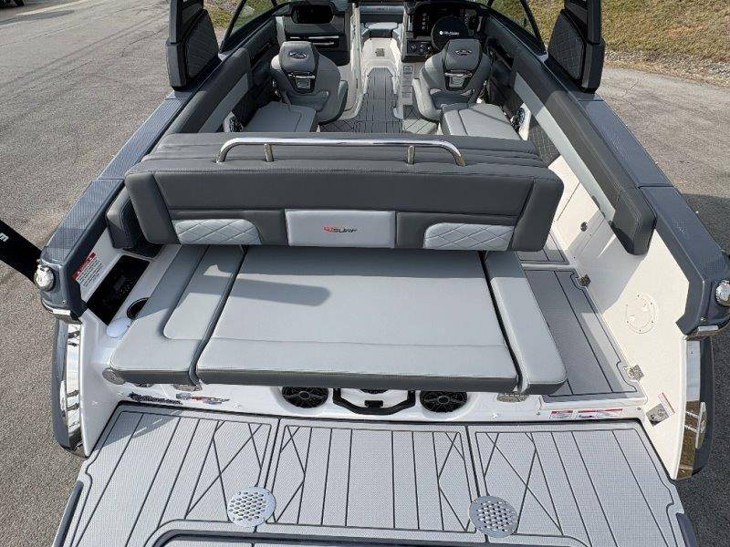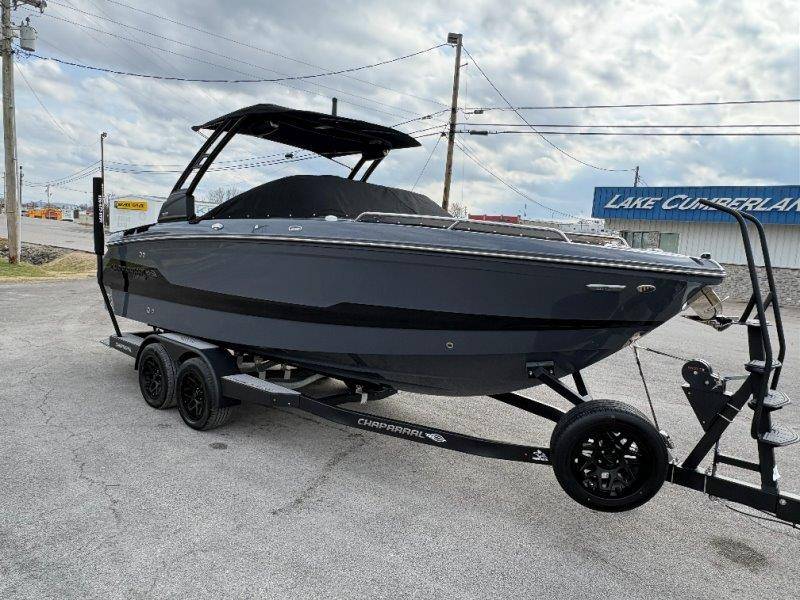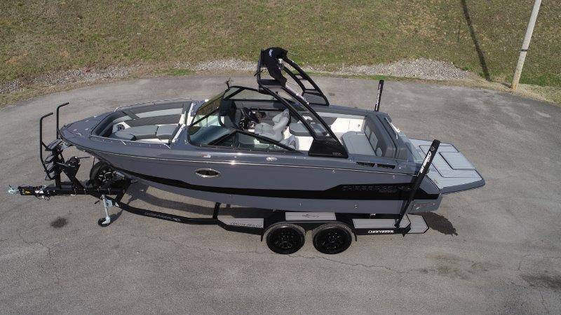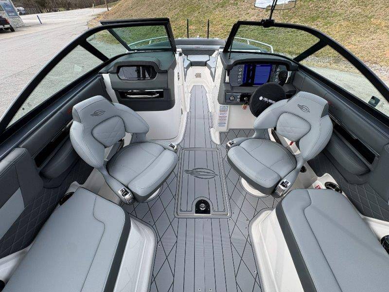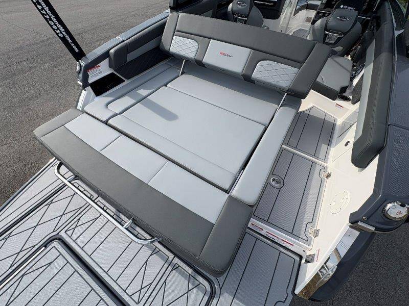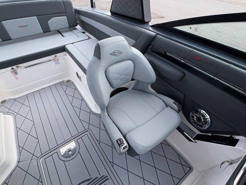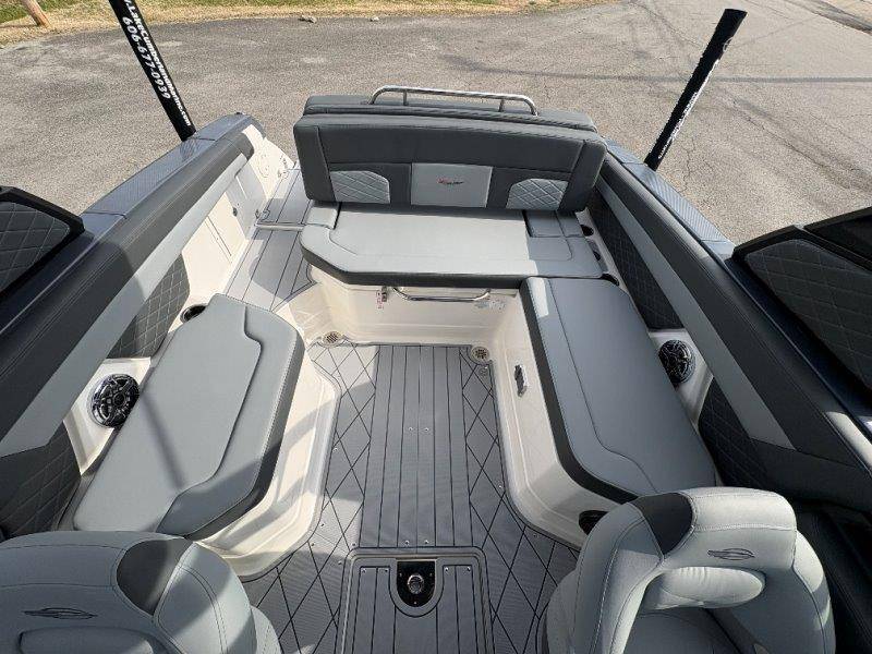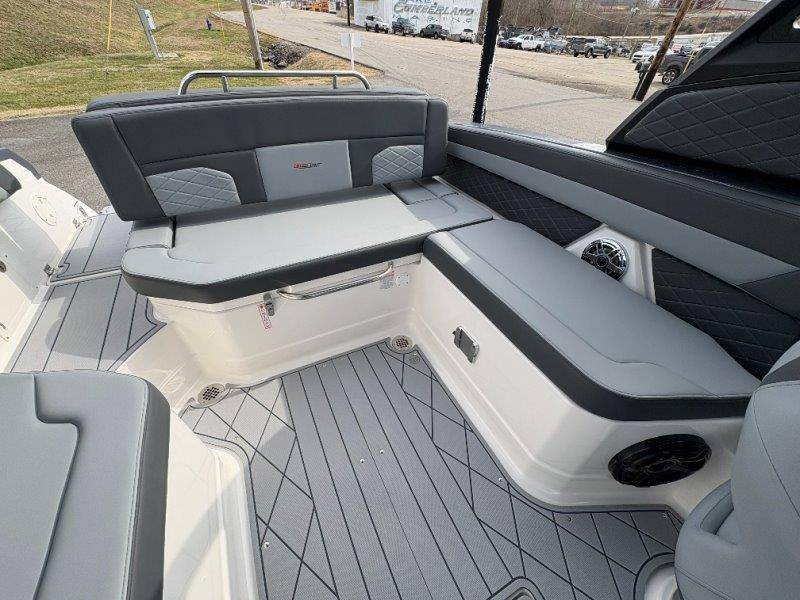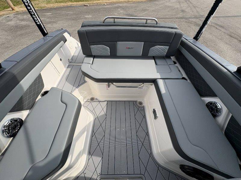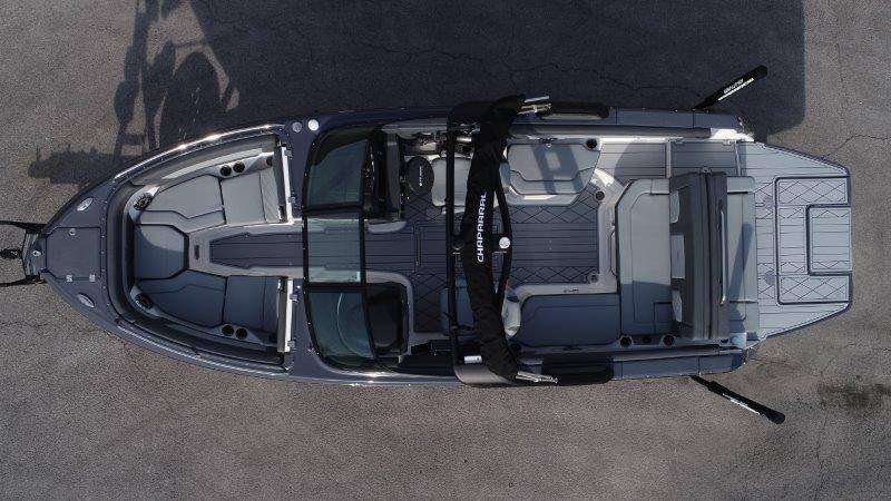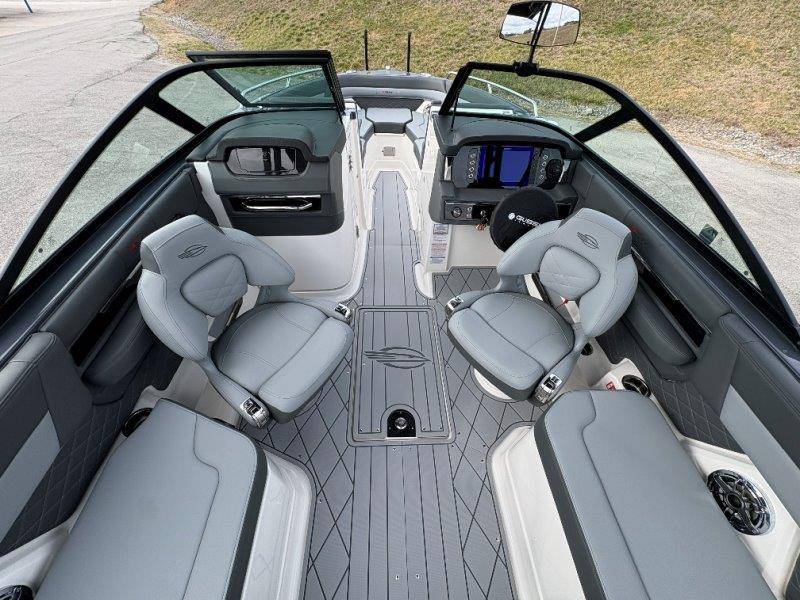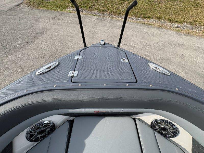 2026 Chaparral GTS 6 UNIQUE KEY FEATURES • 1080lb Capacity Ballast System • 5-Year Premium Level Limited Component Warranty • Aft Bench Seating with Reversible Backrest System converts from Double Bench to Sun Lounge • Bluetooth AM/FM Sound System with Transom Remote • Charging Stations w/ Power Plugs - Port and Starboard Helm • Dual Battery Setup With Crossover Switch • EFX II Electric Folding Arch Tower w/ Color Coordinated Canvas • Frameless Bonded Glass Walk-Through Windshield with Custom Supports • Full Fiberglass Head Compartment w/ Porta Pottie and Vanity Cabinet w/ Sink • Infinity Power Step Swim Platform • Integrated Swim Platform • Large U-Shaped Aft Seating Area with Storage Underneath • Limited Lifetime Hull Warranty • Malibu Surf Gate (TM) • NMMA Certified • Power Assisted Steering with Tilt Wheel • Premium Envision Marine Silicone Upholstery • Premium Gelcoat and Hydropel Resin • Premium Helm Seats with Flip-Up Bolster Cushions • Simrad NSS4 Multifunction Display with Surf Controls • Wake Surfing Hull Hull Side Gelcoat - Stealth Gray Hull Bottom Gelcoat - Stealth Gray Deck Gelcoat White - Stealth Gray Painted Metallic Apex Hull Graphic - Black with Black XL Hull Designator and Surf Badge Cockpit Interior - Shadow Standard Canvas - Black EFX II Electric Folding Arch Tower - Black Cockpit and Bow Cover JL Audio Sound System Upgrade Tower Speakers (2) Connectivity Package Electric Head Cockpit Table with Dedicated Storage Snap-In Seadek Cockpit Flooring - Slate Ski Tow - Black Powder Coated Ski Mirror Dual Color LED Underwater Lights (2 each) Windlass with Stainless Steel Anchor, 125' Rope and 15' Chain NMMA Grow Boating Fund 5 Year Premium Level Limited Component Warranty Lenco Pro Trim Tab System Trailer - Black Frame with Black Fenders, Aluminum Wheels, Bow Ladder and Bow V-Stop