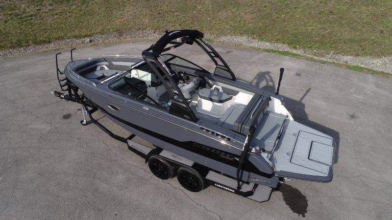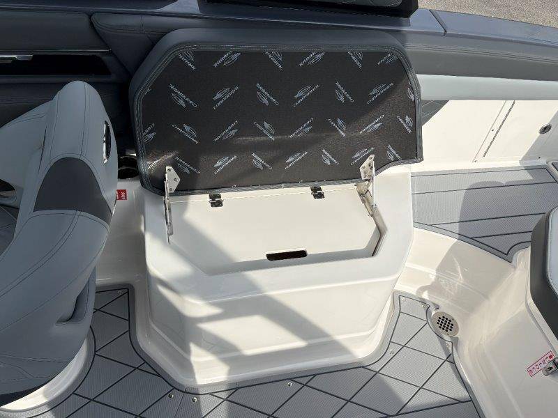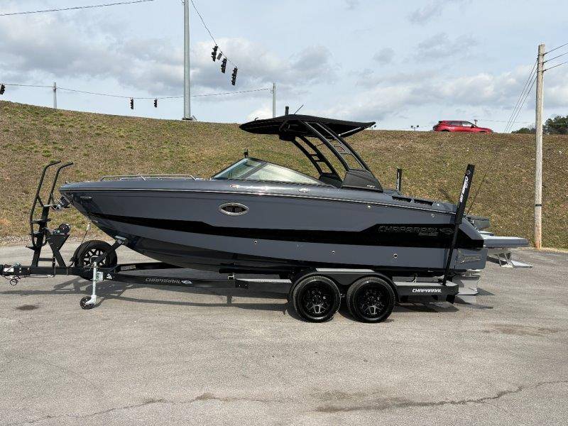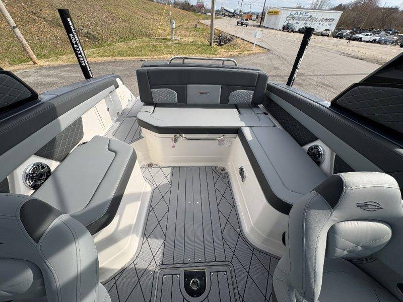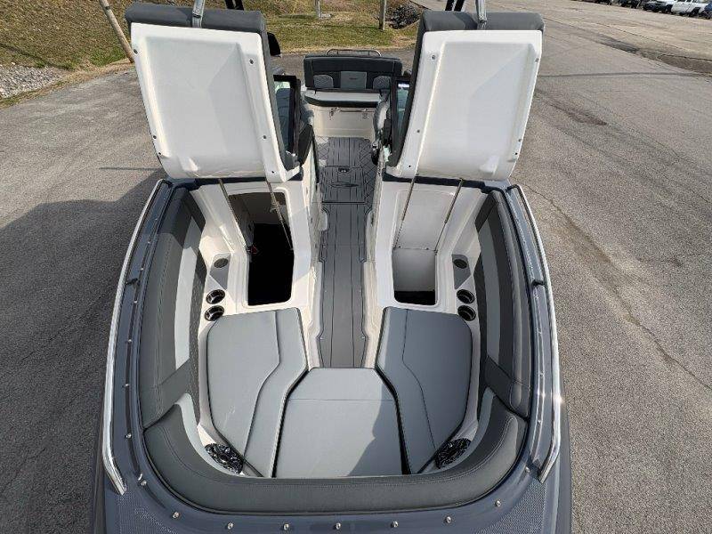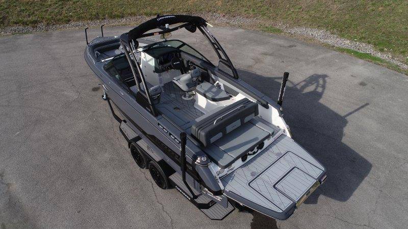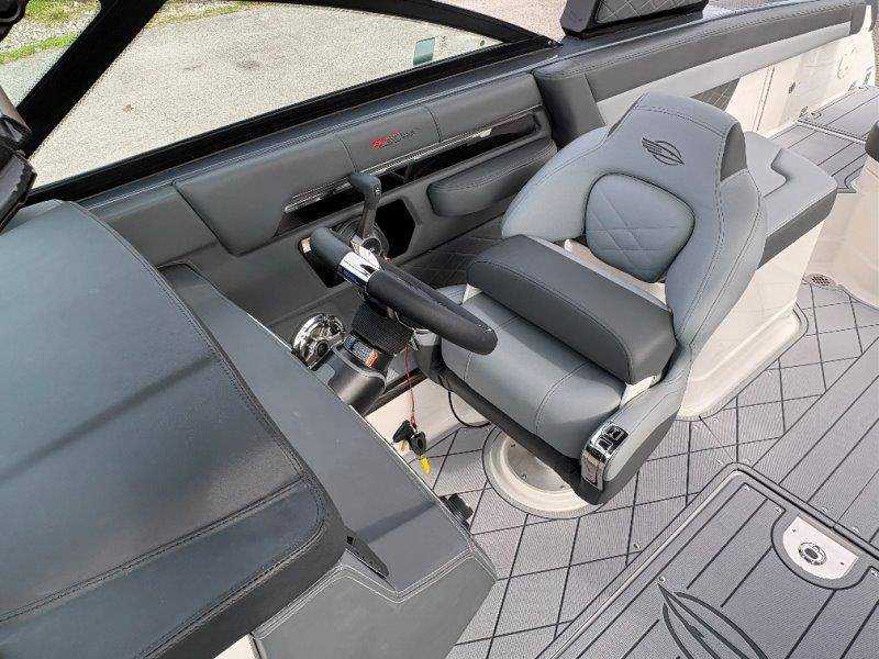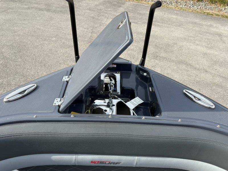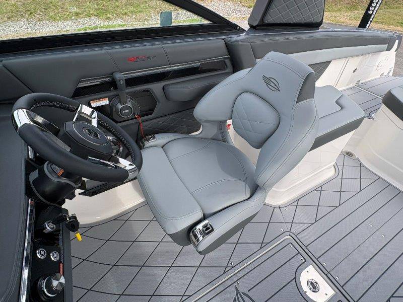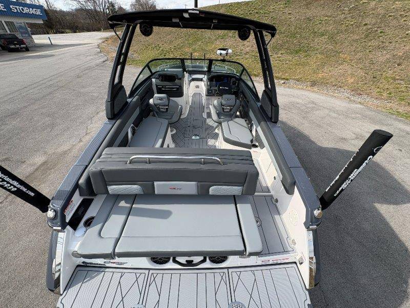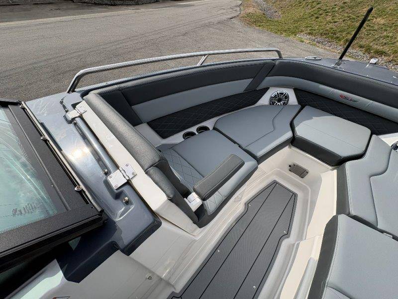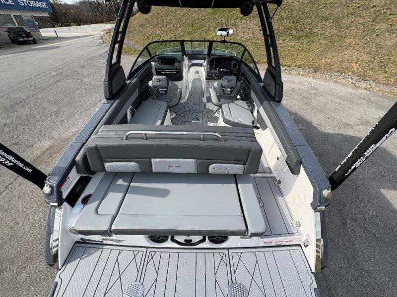 2026 Chaparral GTS 6 UNIQUE KEY FEATURES • 1080lb Capacity Ballast System • 5-Year Premium Level Limited Component Warranty • Aft Bench Seating with Reversible Backrest System converts from Double Bench to Sun Lounge • Bluetooth AM/FM Sound System with Transom Remote • Charging Stations w/ Power Plugs - Port and Starboard Helm • Dual Battery Setup With Crossover Switch • EFX II Electric Folding Arch Tower w/ Color Coordinated Canvas • Frameless Bonded Glass Walk-Through Windshield with Custom Supports • Full Fiberglass Head Compartment w/ Porta Pottie and Vanity Cabinet w/ Sink • Infinity Power Step Swim Platform • Integrated Swim Platform • Large U-Shaped Aft Seating Area with Storage Underneath • Limited Lifetime Hull Warranty • Malibu Surf Gate (TM) • NMMA Certified • Power Assisted Steering with Tilt Wheel • Premium Envision Marine Silicone Upholstery • Premium Gelcoat and Hydropel Resin • Premium Helm Seats with Flip-Up Bolster Cushions • Simrad NSS4 Multifunction Display with Surf Controls • Wake Surfing Hull Hull Side Gelcoat - Stealth Gray Hull Bottom Gelcoat - Stealth Gray Deck Gelcoat White - Stealth Gray Painted Metallic Apex Hull Graphic - Black with Black XL Hull Designator and Surf Badge Cockpit Interior - Shadow Standard Canvas - Black EFX II Electric Folding Arch Tower - Black Cockpit and Bow Cover JL Audio Sound System Upgrade Tower Speakers (2) Connectivity Package Electric Head Cockpit Table with Dedicated Storage Snap-In Seadek Cockpit Flooring - Slate Ski Tow - Black Powder Coated Ski Mirror Dual Color LED Underwater Lights (2 each) Windlass with Stainless Steel Anchor, 125' Rope and 15' Chain NMMA Grow Boating Fund 5 Year Premium Level Limited Component Warranty Lenco Pro Trim Tab System Trailer - Black Frame with Black Fenders, Aluminum Wheels, Bow Ladder and Bow V-Stop