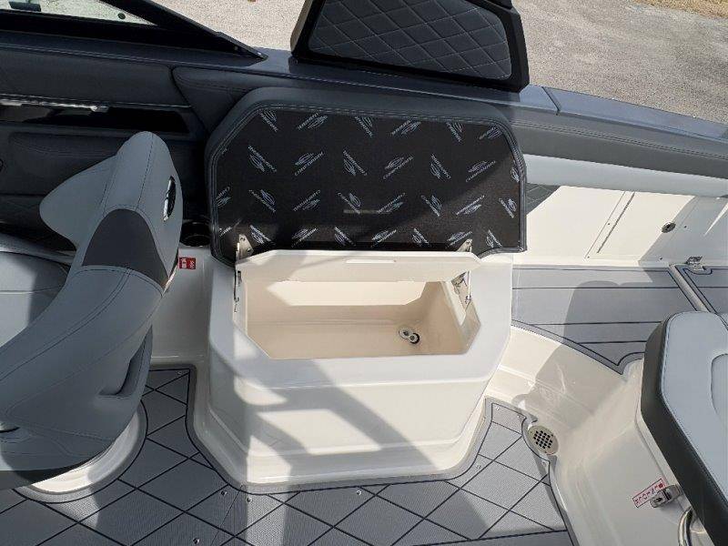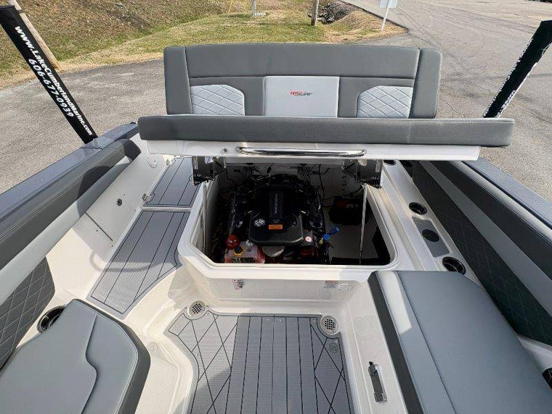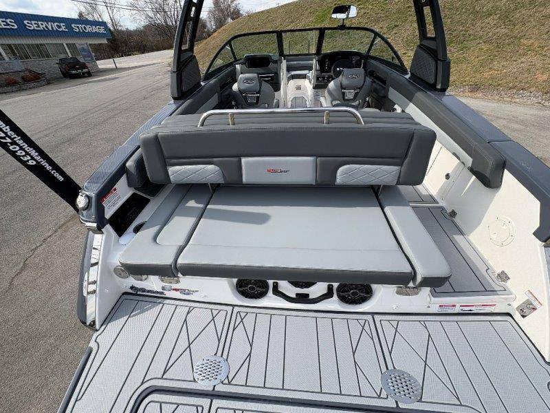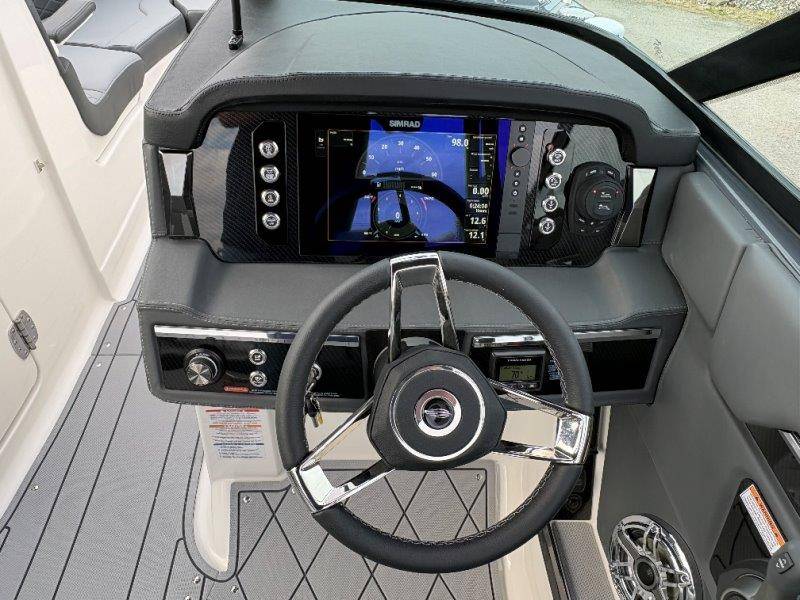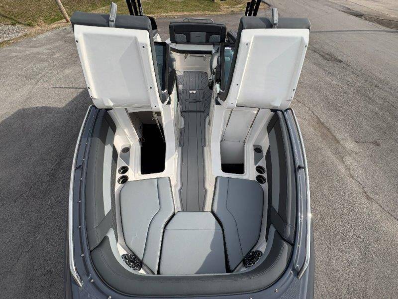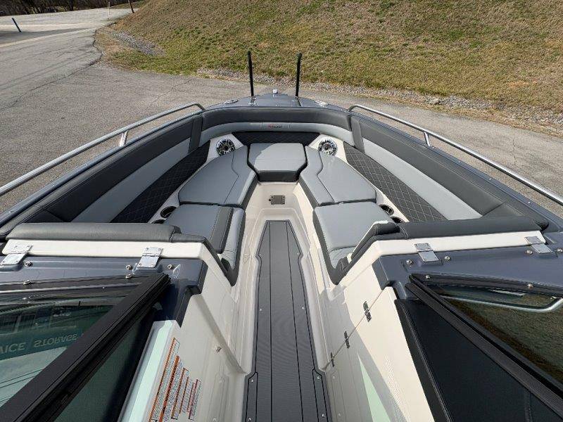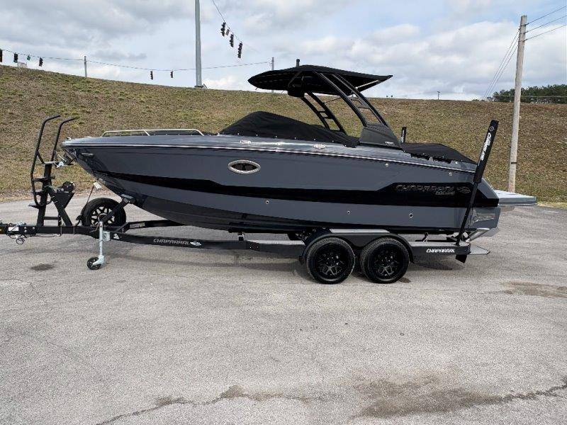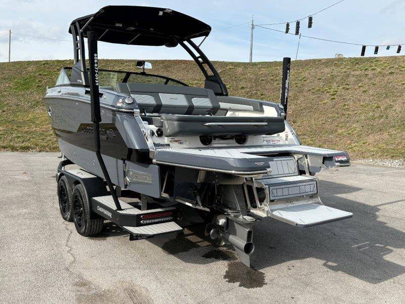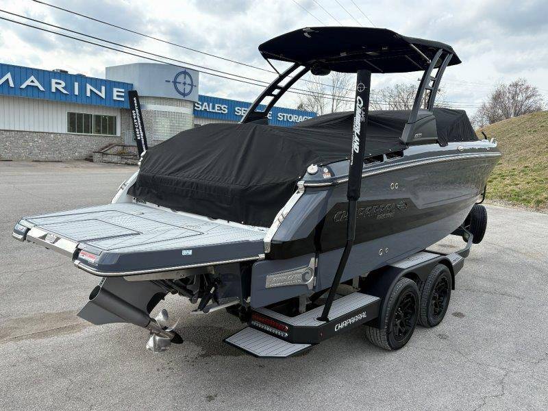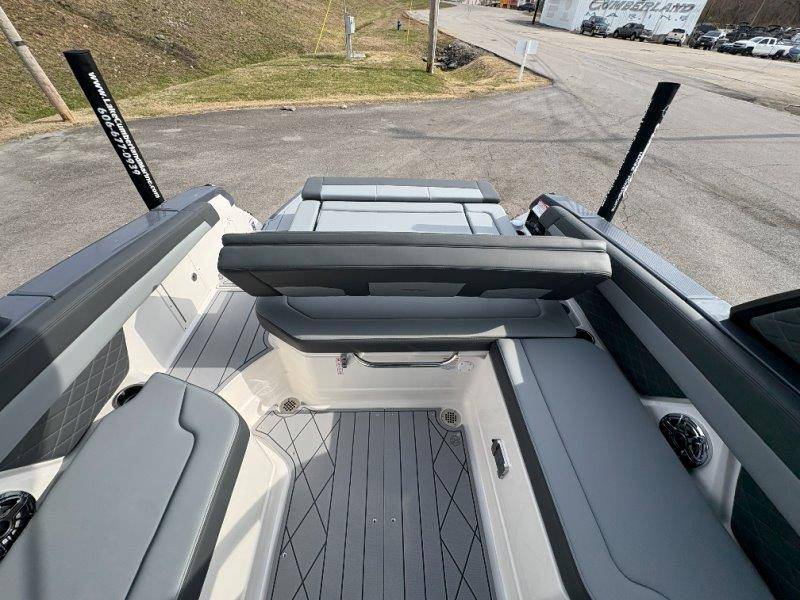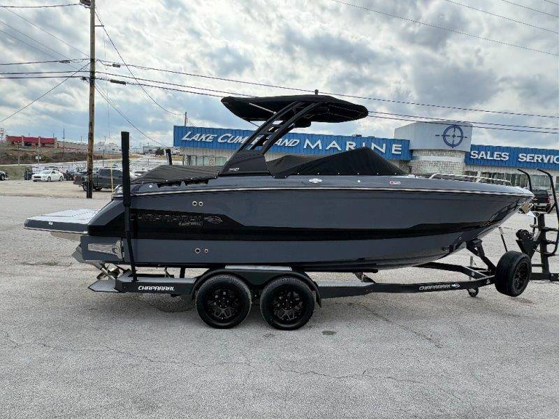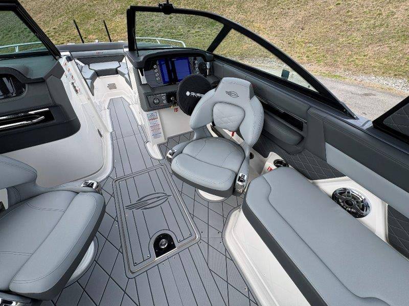 2026 Chaparral GTS 6 UNIQUE KEY FEATURES • 1080lb Capacity Ballast System • 5-Year Premium Level Limited Component Warranty • Aft Bench Seating with Reversible Backrest System converts from Double Bench to Sun Lounge • Bluetooth AM/FM Sound System with Transom Remote • Charging Stations w/ Power Plugs - Port and Starboard Helm • Dual Battery Setup With Crossover Switch • EFX II Electric Folding Arch Tower w/ Color Coordinated Canvas • Frameless Bonded Glass Walk-Through Windshield with Custom Supports • Full Fiberglass Head Compartment w/ Porta Pottie and Vanity Cabinet w/ Sink • Infinity Power Step Swim Platform • Integrated Swim Platform • Large U-Shaped Aft Seating Area with Storage Underneath • Limited Lifetime Hull Warranty • Malibu Surf Gate (TM) • NMMA Certified • Power Assisted Steering with Tilt Wheel • Premium Envision Marine Silicone Upholstery • Premium Gelcoat and Hydropel Resin • Premium Helm Seats with Flip-Up Bolster Cushions • Simrad NSS4 Multifunction Display with Surf Controls • Wake Surfing Hull Hull Side Gelcoat - Stealth Gray Hull Bottom Gelcoat - Stealth Gray Deck Gelcoat White - Stealth Gray Painted Metallic Apex Hull Graphic - Black with Black XL Hull Designator and Surf Badge Cockpit Interior - Shadow Standard Canvas - Black EFX II Electric Folding Arch Tower - Black Cockpit and Bow Cover JL Audio Sound System Upgrade Tower Speakers (2) Connectivity Package Electric Head Cockpit Table with Dedicated Storage Snap-In Seadek Cockpit Flooring - Slate Ski Tow - Black Powder Coated Ski Mirror Dual Color LED Underwater Lights (2 each) Windlass with Stainless Steel Anchor, 125' Rope and 15' Chain NMMA Grow Boating Fund 5 Year Premium Level Limited Component Warranty Lenco Pro Trim Tab System Trailer - Black Frame with Black Fenders, Aluminum Wheels, Bow Ladder and Bow V-Stop