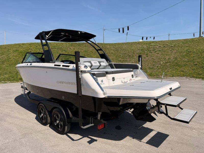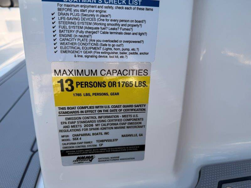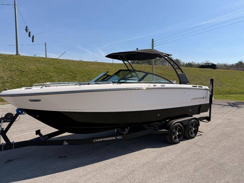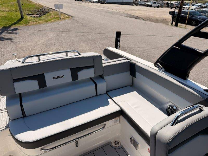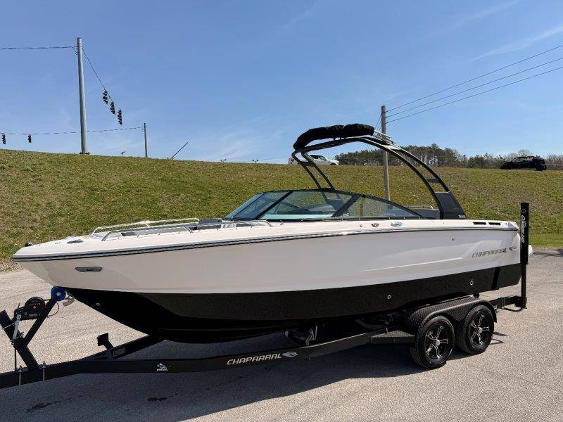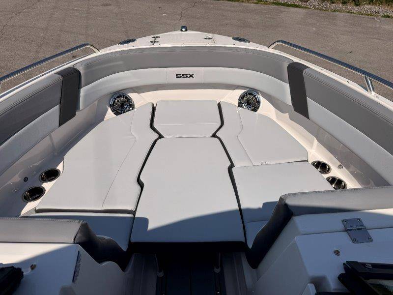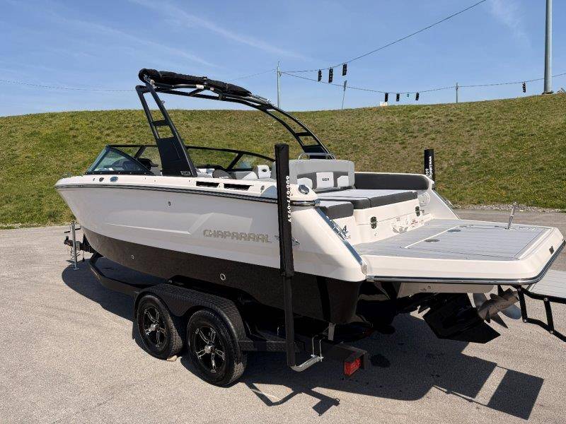 2026 Chaparral SSX 4 UNIQUE KEY FEATURES • 5-Year Premium Level Limited Component Warranty • Battery On/Off Switch • Cockpit Drainage System with Self-Bailing Cockpit • Extended V-Plane Hull with Kevlar Reinforcement • Frameless Bonded Glass Walk-Through Windshield • In-floor Ski Locker with Non-Slip Rubber Mat • Infinity E-Z Step Platform with SeaDek Swim Platform Mat • Integrated Extended Swim Platform • Limited Lifetime Hull Warranty • Loom & Panduit Wrapped Wiring w/Triple Sealed Connectors • NMMA Certified • Power Assisted Steering with Tilt Wheel • Premium Envision Marine Silicone Upholstery • Premium Gelcoat and Hydropel Resin • Reversible Passenger Seat with Flip-Up Bolster • Simrad NSX9 EVO3 Chartplotter/Multifunction Display • Stainless Steel Dash Panels and Custom Steering Wheel • Stainless Steel Transom Grabrail with Integrated Ski Tow • Vinyl Wrapped Fiberglass Helm • Water Resistant Circuit Breakers Mercury 6.2L DTS 2.20 Bravo 3 300 HP Catalyst OPTIONS Hull Side Gelcoat - White Hull Bottom Gelcoat - Black Cockpit Interior - Lunar Canvas Color - Black (If Equipped) Folding MTX Tower - Black Ski Tow - White Powder Coated 5 Year Premium Level Limited Component Warranty Trailer - Black Tandem Axle with Galvanized Wheels