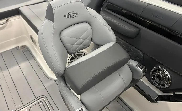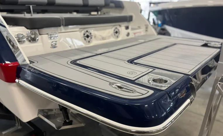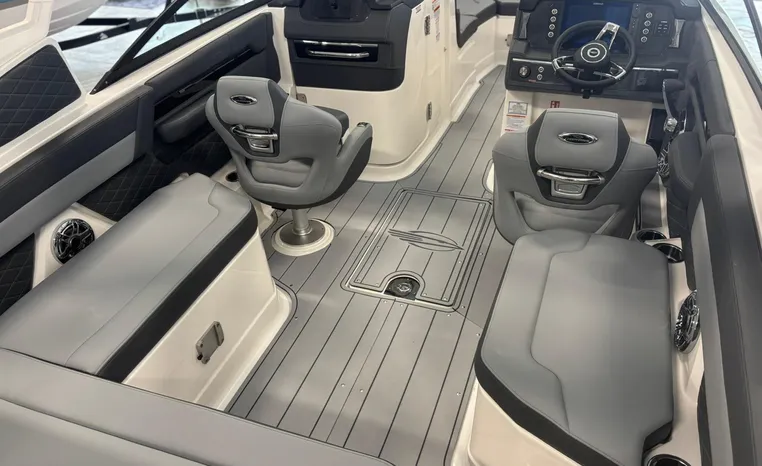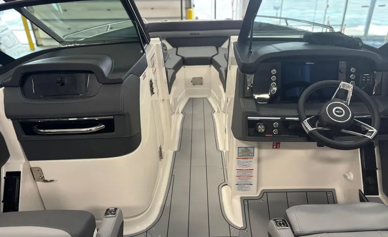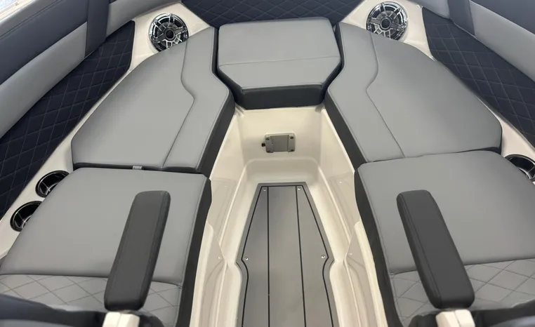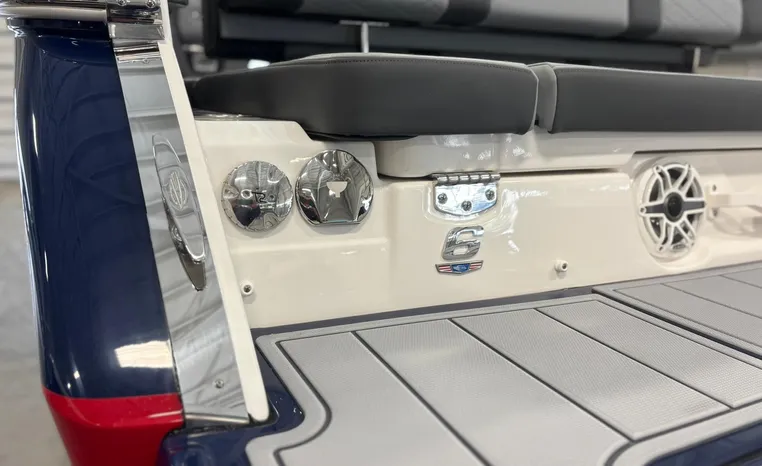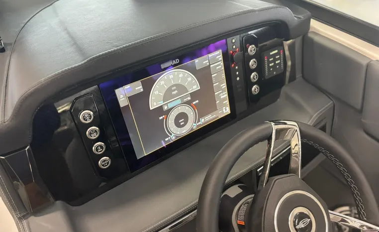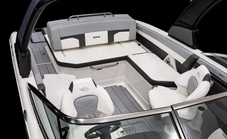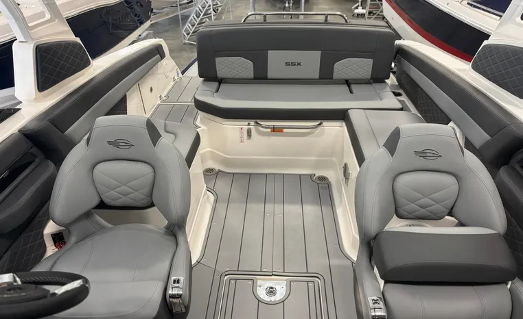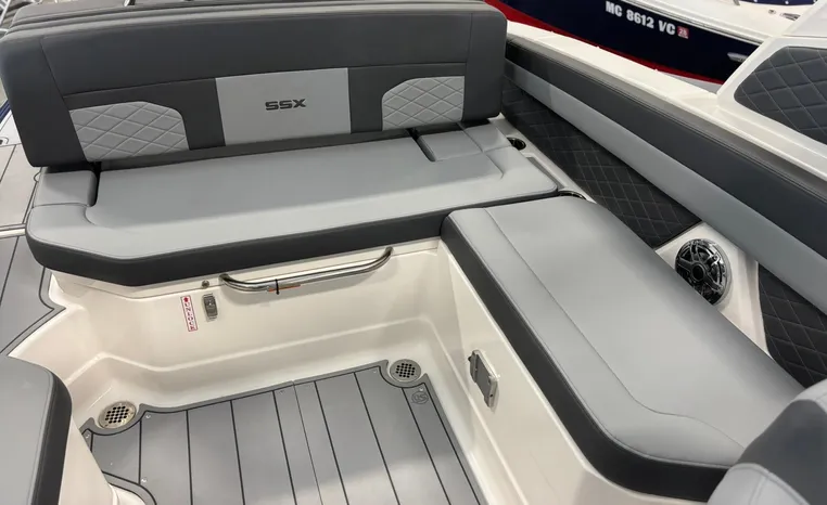 Look no further-the SSX 6 is breaking barriers and setting the standard for on-water comfort and performance. Equipped with a state-of-the-art oversized touchscreen display, the helm is designed for easy access, enhancing ergonomic navigation. The cockpit features spacious U-shaped aft seating, leading to the standard Infinity Power Step swim platform, which offers an exceptional reboarding experience. The SSX 6 is crafted with no compromises when it comes to luxury or power.