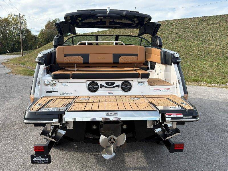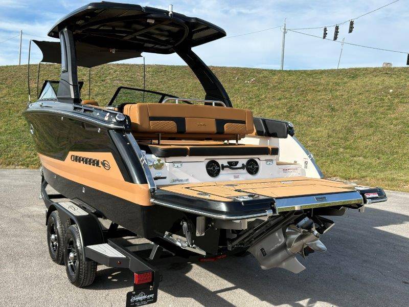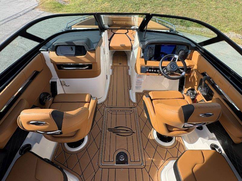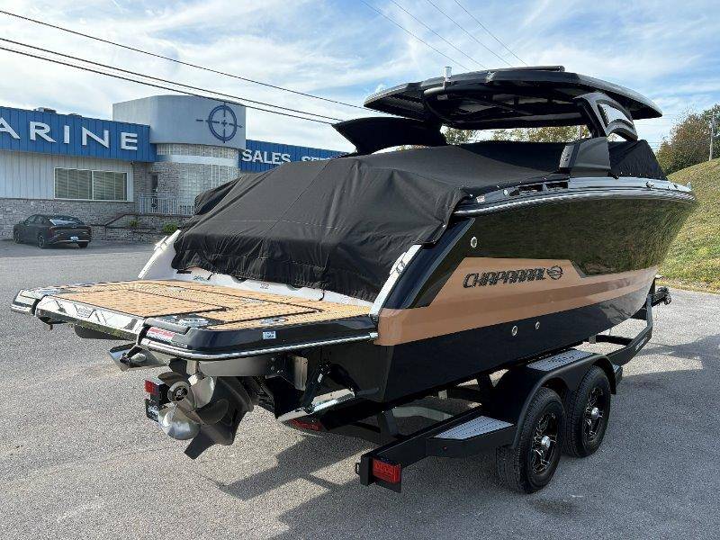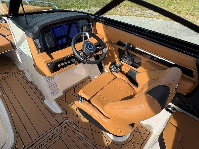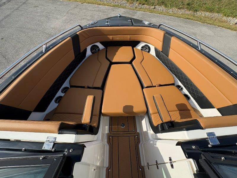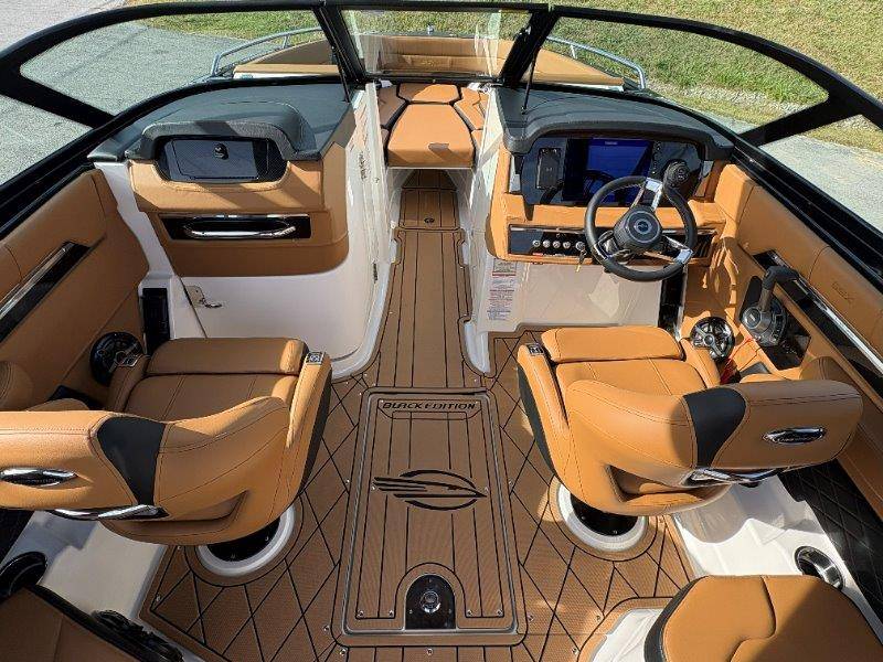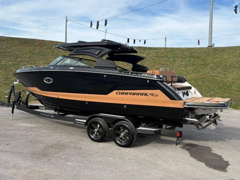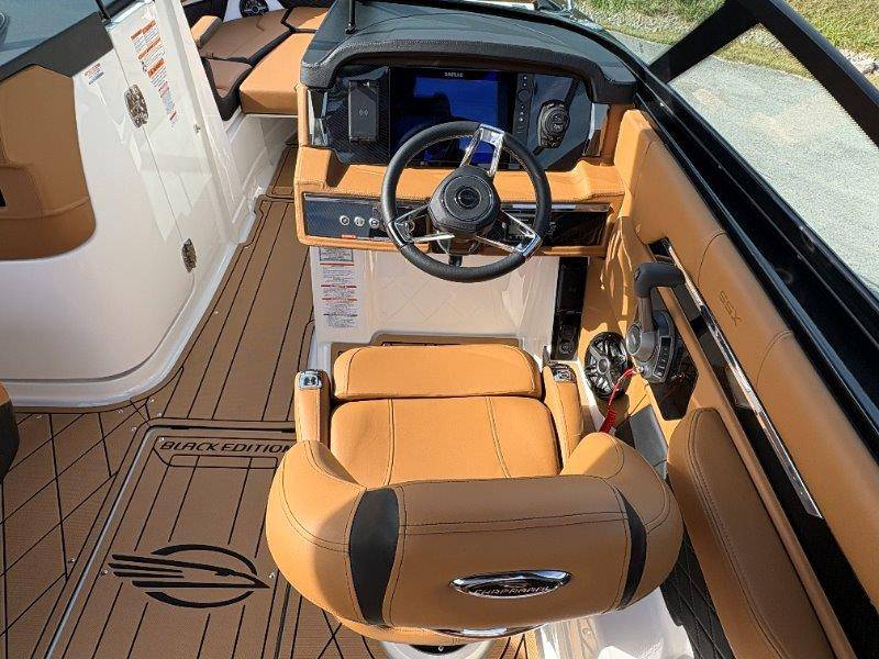 2026 Chaparral SSX 8 UNIQUE KEY FEATURES • 5-Year Premium Level Component Warranty • Automatic Bilge Pump • CDS (Cockpit Drainage System) and SBS (Self Bailing System) • Diamond Pattern Non-Skid Surfaces • Dual Battery Setup with Crossover Switch • Enclosed Head with Opening Portlight and Vanity Cabinet with Sink • Extended V-Plane Hull with Kevlar Reinforcement • Frameless Bonded Glass Walk-Through Windshield • Infinity Power StepSwim Platform • Limited Lifetime Hull Warranty • NMMA Certified • Power Assisted Steering with Tilt Wheel • Premium Bucket Seats - Port and Starboard • Premium Envision Marine Silicone Upholstery • Premium Gelcoat and Hydropel Resin • Pressure Water System with Stainless Steel Transom Shower • Removable Table with Side-Mounted Bases in Cockpit and Bow • SIMRAD NSS4 Chartplotter/Fishfinder with Engine Data and Audio Controls • U-Shaped Aft Cockpit Seating with Double-Arm Hinged Cushions • Water Resistant Speakers (8) with Blue LED Lighting OPTIONS Black Edition Hull Deck Gelcoat White - Black Painted Metallic Apex Hull Graphic - Cayenne with Black XL Hull Designator Cockpit Interior - Black Edition Standard Canvas - Black Bow Canvas Sky Shade - Black Cockpit and Bow Cover Black Edition HTX Hardtop Package with Black HTX Hardtop Tower, JL Audio System Upgrade, Underwater Lights, Black Ski Tow, Silicone Fabric Cayenne Color with Black Accent Vinyl, and Special Edition Badging Connectivity Package RGB Light Package Electric Head Bowrider Filler Cushion Snap-In Seadek Cockpit Flooring - Black Edition Dual Battery Charger Windlass with 250' Rope and 15' Chain Lenco Pro Trim Tab System 5 Year Premium Level Limited Component Warranty Trailer - Black Tandem Axle with Aluminum Wheels and Bow Ladder