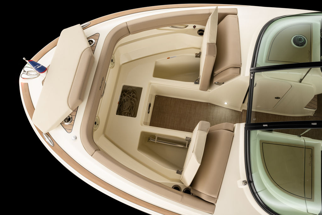 The bow features comfortable seats with folding armrests, JL Audio speakers and USB charging ports to complete this well-appointed space.