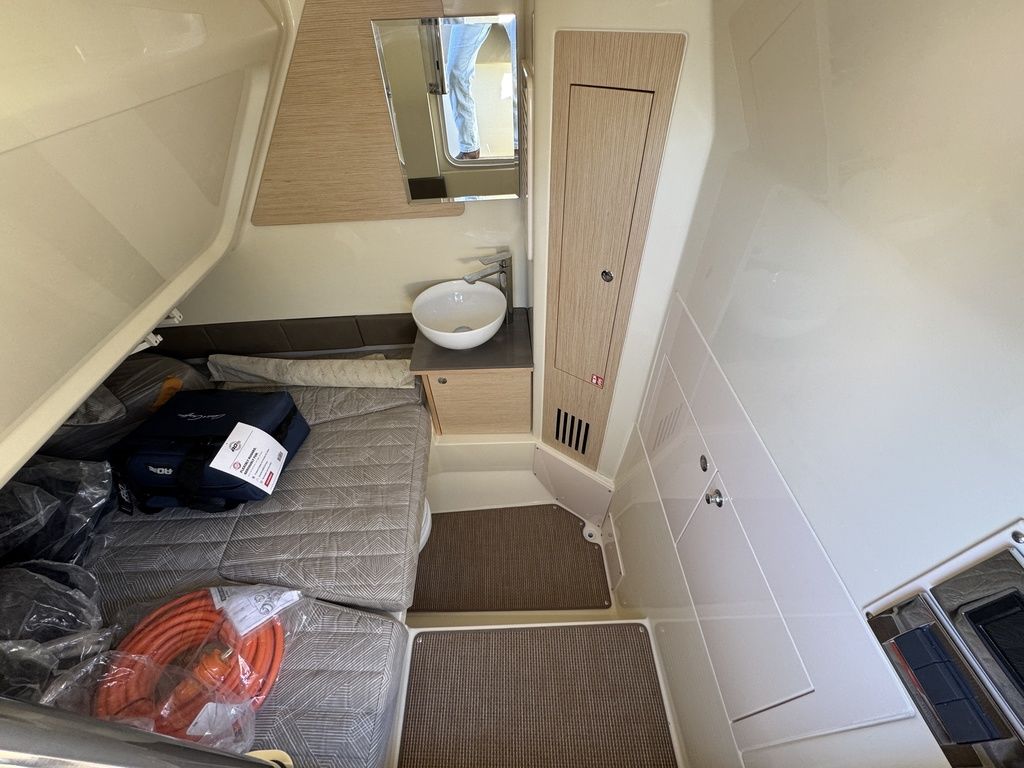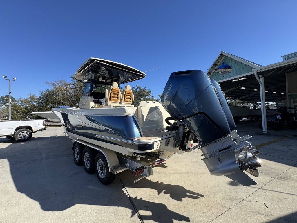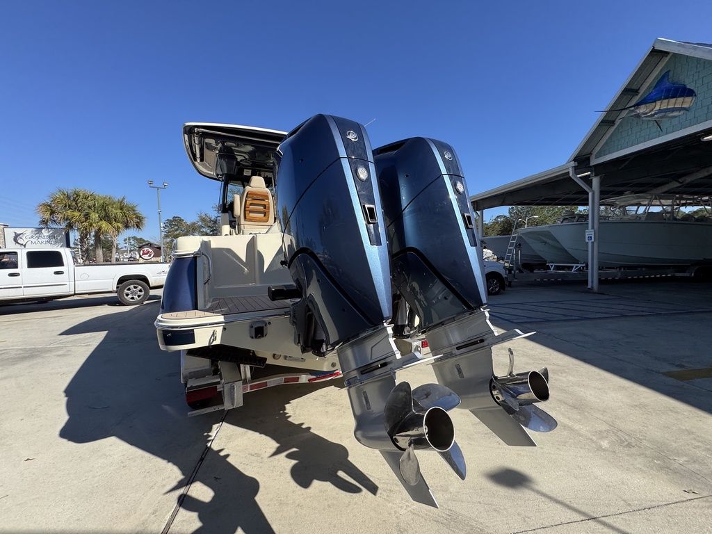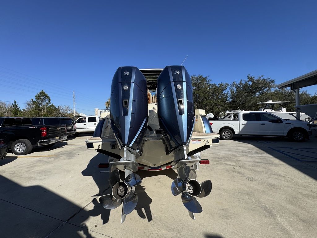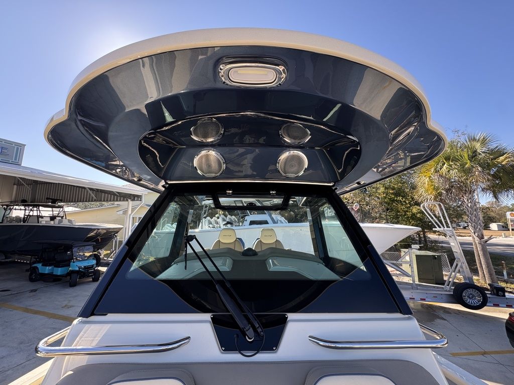 The center console layout provides easy, unobstructed movement around the deck, while the aft cockpit seats conveniently fold away to maximize space when not in use. Additional thoughtful features—like in-floor storage hatches and magnetic seat cushions in the bow—enhance onboard comfort and functionality.
